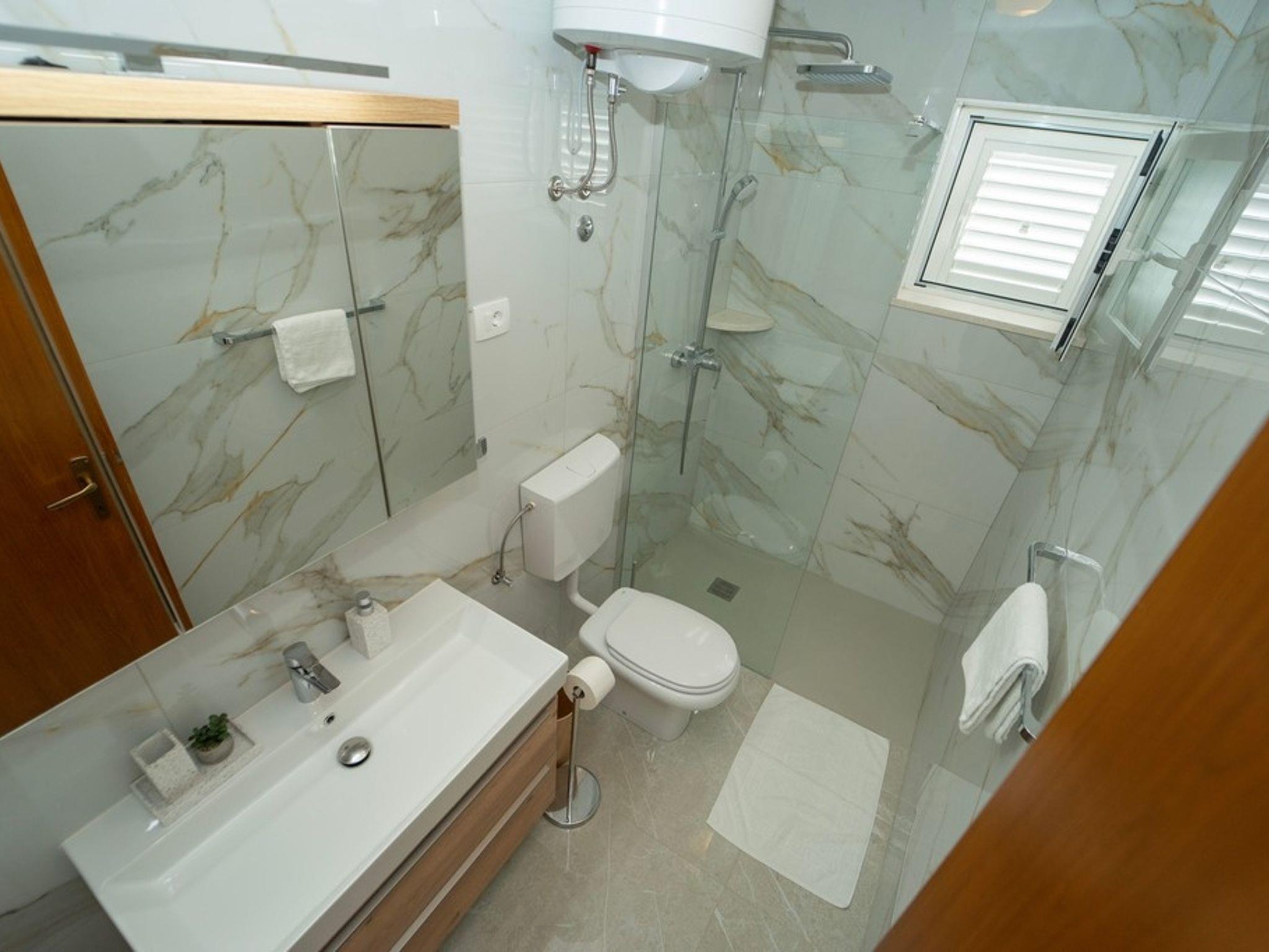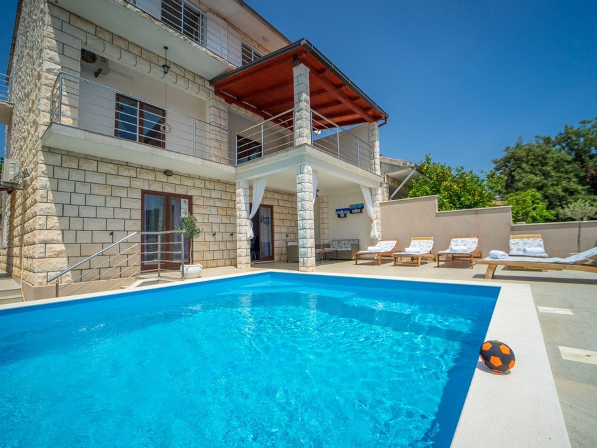 Haus bietet Platz für 12 Gäste. Die Betten sind in Schlafzimmern, die es 5 gibt, und in Wohnzimmer, innerhalb einer Gesamtfläche von 158m2, angeordnet. Die Gäste haben eine eigene Terrasse zur Verfügung, auf der sie in warmen Sommernächten genießen können. Das Haus bietet Meerblick. Für vollen Genuss und Entspannung gibt es einen privaten Grill für Gäste dieser Unterkunft. Während ihres Aufenthalts können sich Gäste im privaten Schwimmbad entspannen. Räume der gebuchten Unterkunftseinheit werden nicht in eine Ganze verbunden. IM PREIS INBEGRIFFEN: Kurtaxe, Endreinigung, Klimatisierung, Pool, Parkplatz, Garage, Internet. Die Verfügbarkeit zusätzlicher Dienstleistungen in Ihrem reservierten Termin und die Preise derselben (falls nicht aufgeführt) müssen im Voraus überprüft werden. Zusätzliche Dienstleistungen die in der Zahlungsaufforderung nicht aufgeführt sind werden direkt beim Vermieter bezahlt, angenommen der Gast nutzt auch diese.