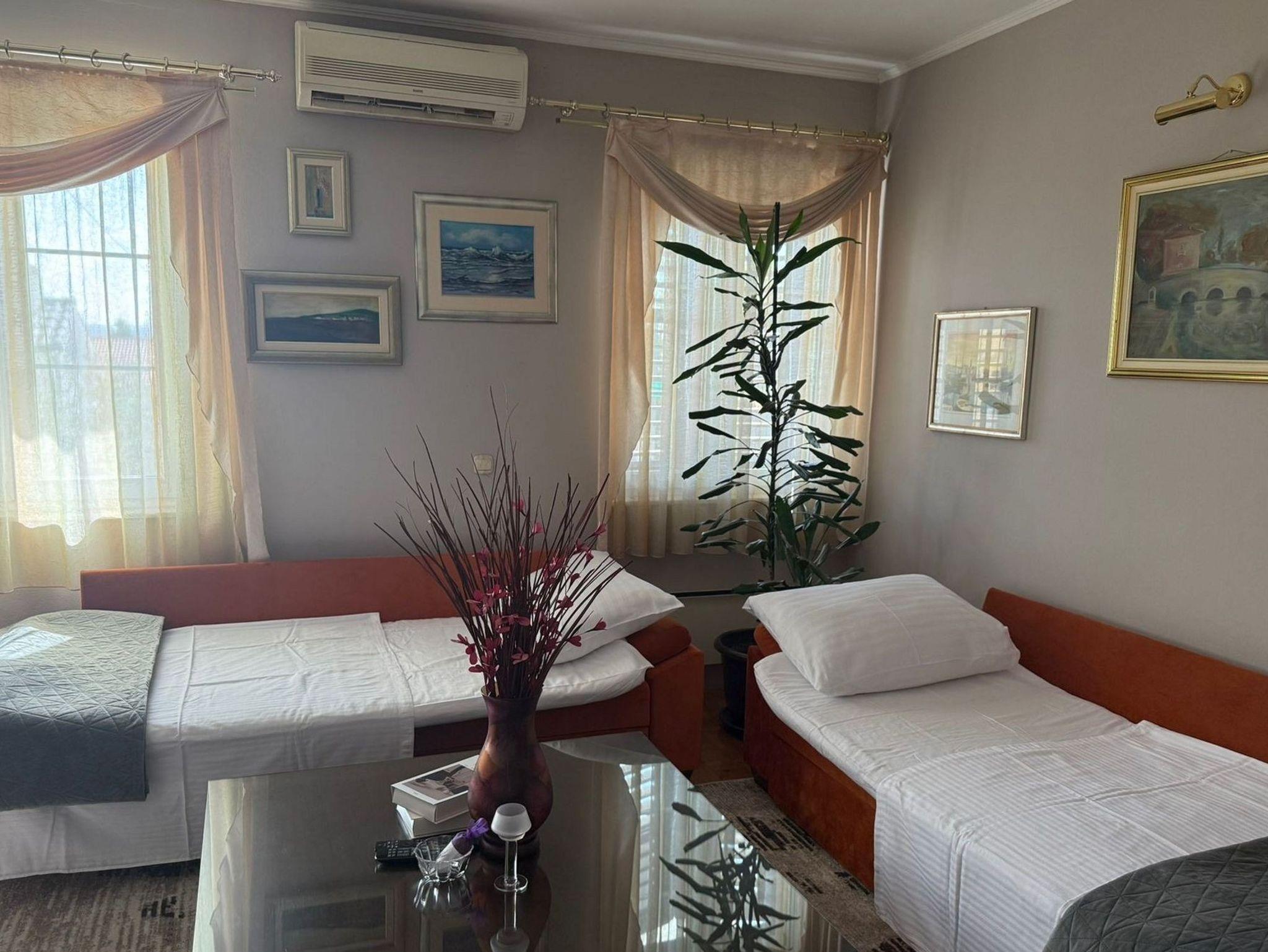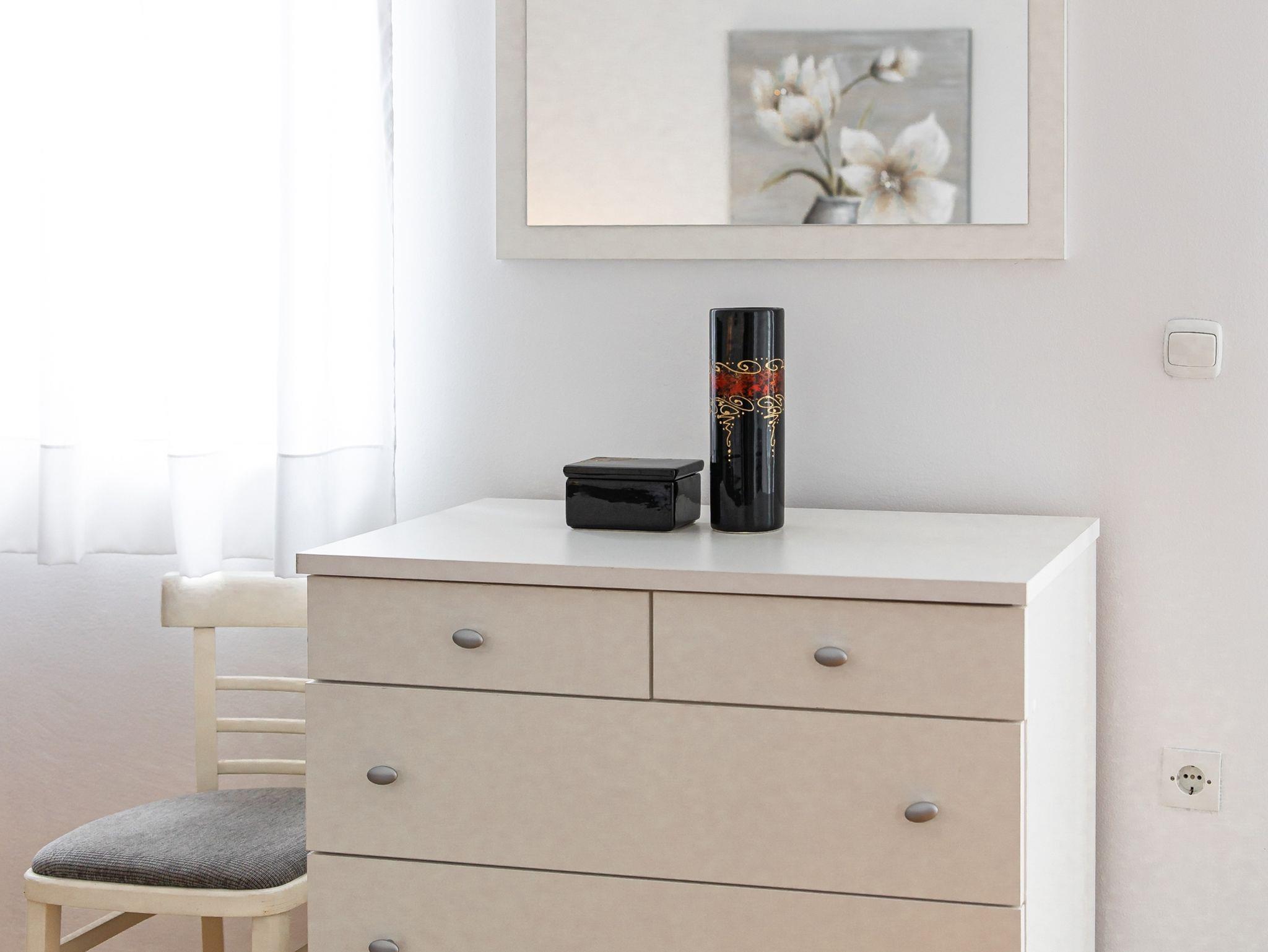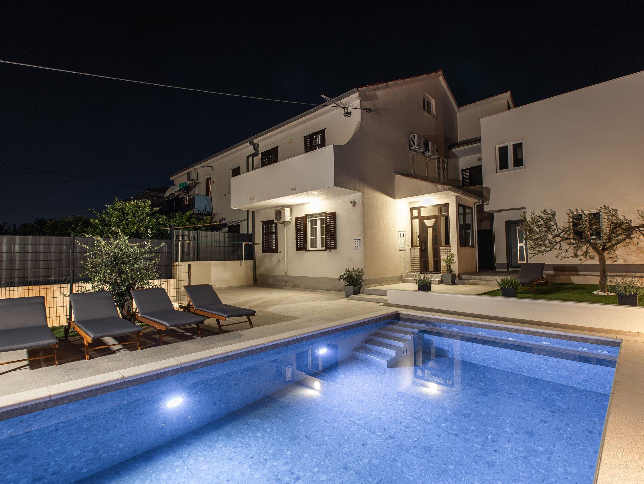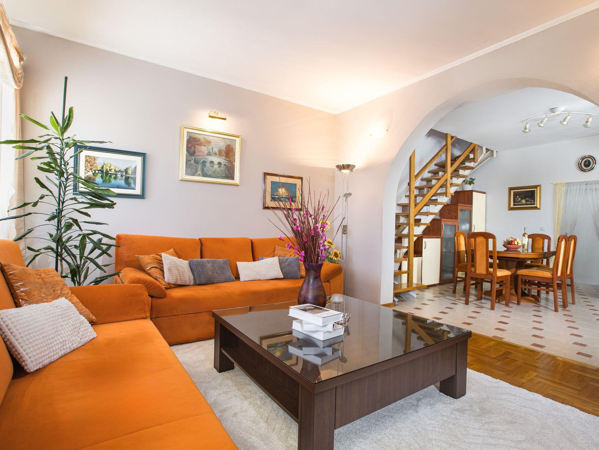 Haus bietet Platz für 8 Gäste. Die Betten sind in Schlafzimmern, die es 4 gibt, und in Wohnzimmer, innerhalb einer Gesamtfläche von 126m2, angeordnet. Die Gäste haben einen eigenen Balkon zur Verfügung, auf der sie in warmen Sommernächten genießen können. Für vollen Genuss und Entspannung gibt es einen privaten Grill für Gäste dieser Unterkunft. Während ihres Aufenthalts können Gäste das gemeinsam zur Nutzung stehende Schwimmbad benutzen. Räume der gebuchten Unterkunftseinheit werden nicht in eine Ganze verbunden. IM PREIS INBEGRIFFEN: Kurtaxe, Endreinigung, Klimatisierung, Pool, Parkplatz, Garage, Internet, Bügeleisen, Bügelbrett, Föhn. Die Verfügbarkeit zusätzlicher Dienstleistungen in Ihrem reservierten Termin und die Preise derselben (falls nicht aufgeführt) müssen im Voraus überprüft werden. Zusätzliche Dienstleistungen die in der Zahlungsaufforderung nicht aufgeführt sind werden direkt beim Vermieter bezahlt, angenommen der Gast nutzt auch diese.