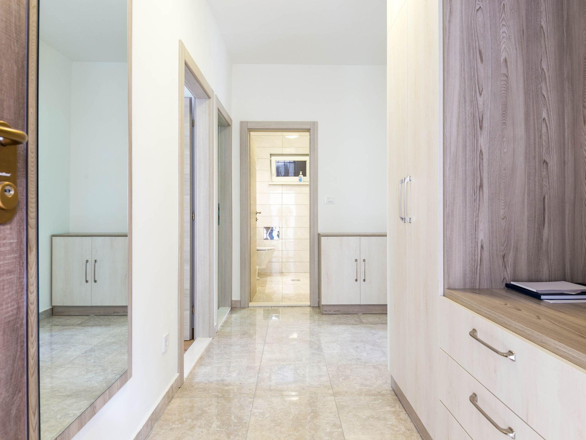 Ferienwohnung bietet Platz für 4 Gäste. Die Betten sind in Schlafzimmern, die es 2 gibt, innerhalb einer Gesamtfläche von 66m2, angeordnet. Die Gäste haben eine eigene Terrasse zur Verfügung, auf der sie in warmen Sommernächten genießen können. IM PREIS INBEGRIFFEN: Kurtaxe, Endreinigung, Parkplatz, Garage, Internet, Bügeleisen, Bügelbrett, Föhn. VERBINDLICHE ZUSÄTZLICHE KOSTEN: Aufzahlung für Kurzaufenthalte (prozentualer Zuschlag pro Nächtigungsanzahl: 30% - 1, 20% - 2, 10% - 3). UNVERBINDLICHE ZUSÄTZLICHE KOSTEN: Klimatisierung (5,00 € pro Nacht). Die Verfügbarkeit zusätzlicher Dienstleistungen in Ihrem reservierten Termin und die Preise derselben (falls nicht aufgeführt) müssen im Voraus überprüft werden. Zusätzliche Dienstleistungen die in der Zahlungsaufforderung nicht aufgeführt sind werden direkt beim Vermieter bezahlt, angenommen der Gast nutzt auch diese. Ermäßigung auf den Grundpreis: Gratistag 14=13 (bei einem Aufenthalt von 14 Tagen oder mehr erhalten Sie einen Gratistag für den Aufenthalt bis 31.12.26).