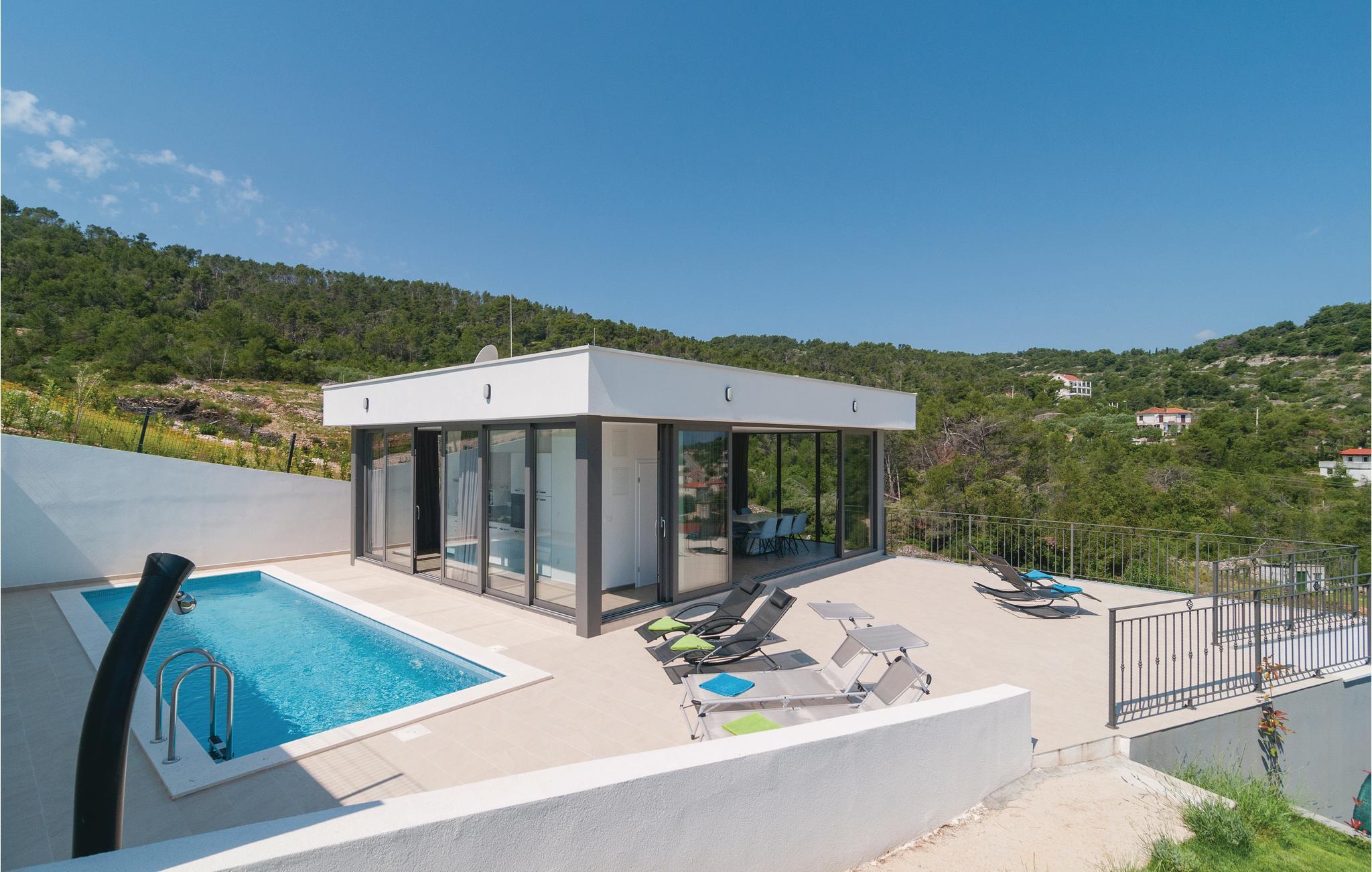 I det smukke, naturlige miljø på øen Solta ligger dette moderne og stilfuldt indrettede feriehus - ideelt for dem, der ønsker absolut privatliv.