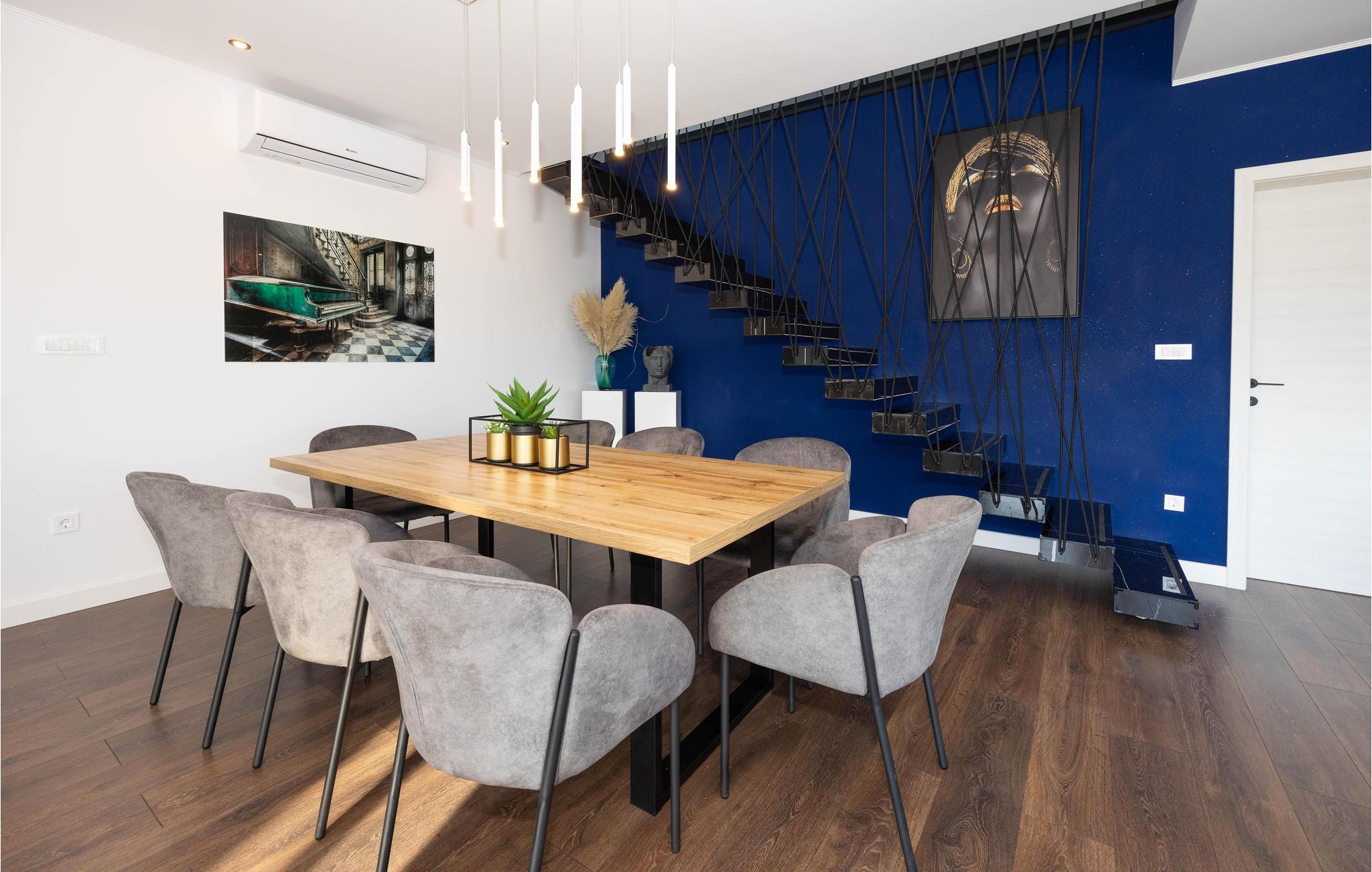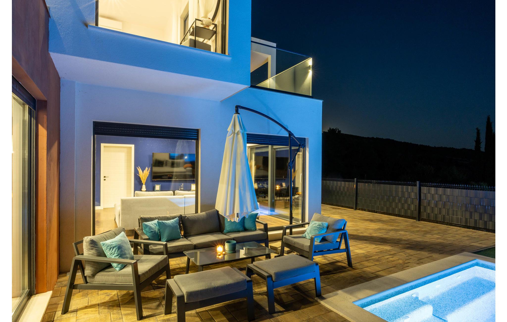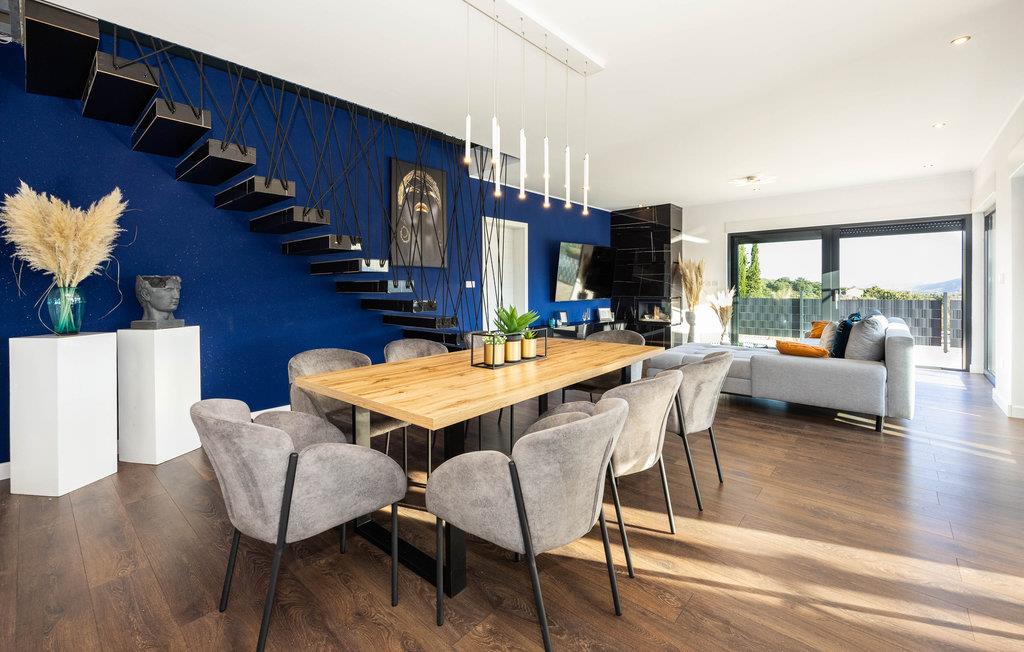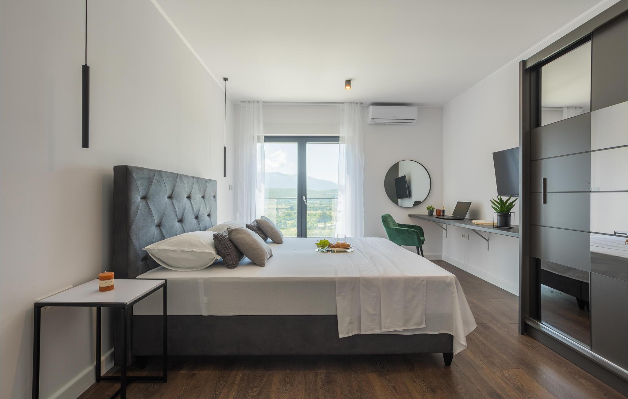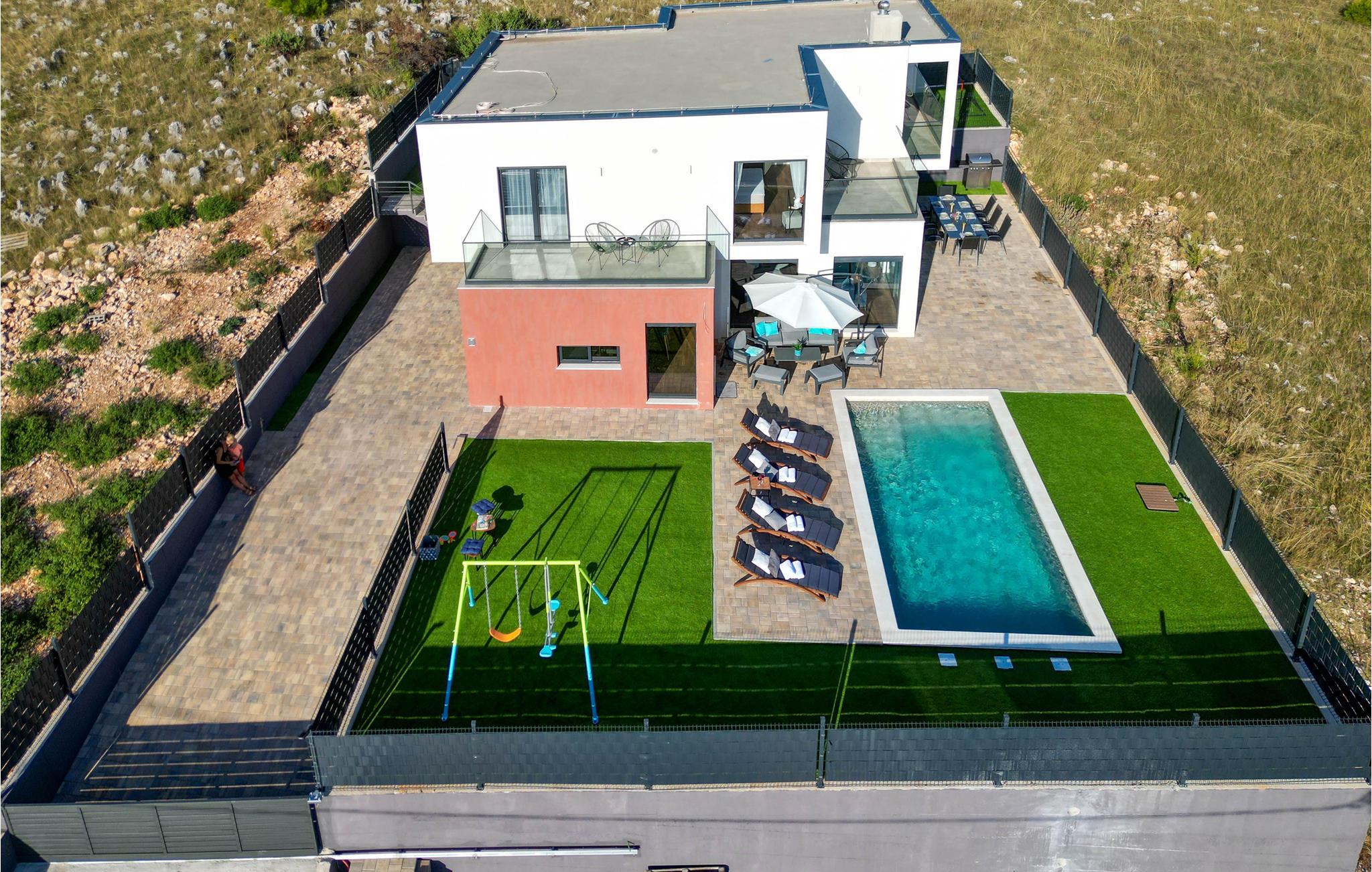 Det idylliske og rolige hus har en fantastisk panoramisk beliggenhed. Her kan I virkelig slappe af og nyde freden og roen og den smukke udsigt over landskabet. Gulv til loft panoramavinduer giver jer mulighed for fuldt ud at nyde udsigten i huset, poolbord og fitnessudstyr sørger for, at I bliver godt underholdt på ferien.