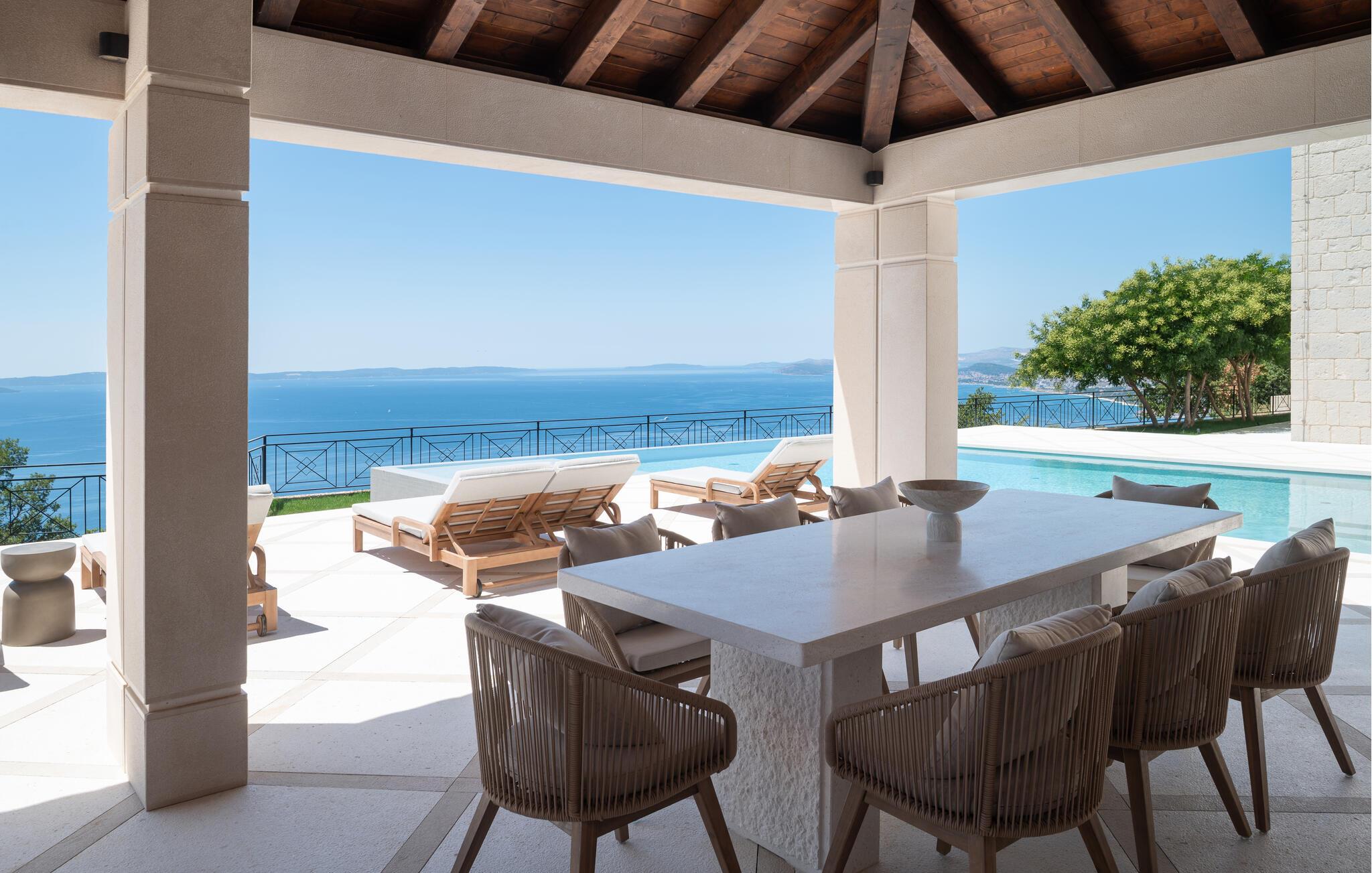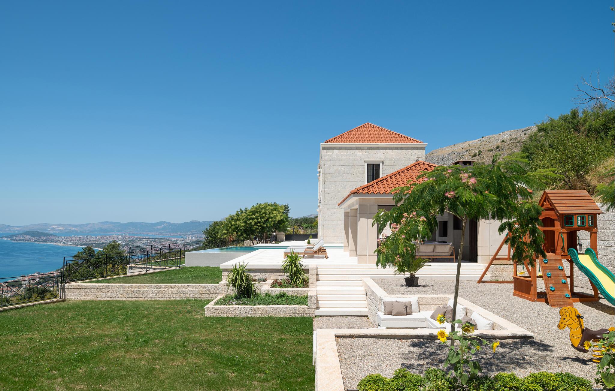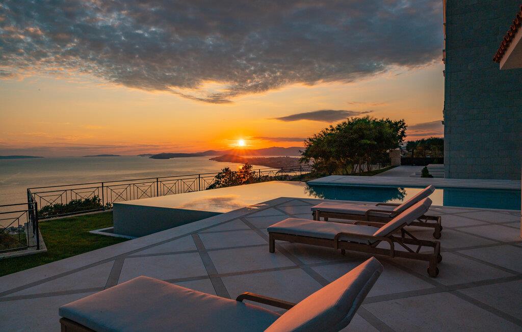 Forkæl jer selv med en luksuriøs ferie i dette sensationelle feriehus med pool, spa-område og betagende havudsigt. Dette stilfulde og møblerede feriehus af høj kvalitet tilbyder masser af plads til at nyde dets mange ekstraudstyr, selv med en større familie eller nære venner. Nyd den behagelige atmosfære med hyggelige måltider og madlavningsaftener sammen, slap af i spabadet eller saunaen, og saml jer til hyggelige filmaftener i den komfortable stue med pejs. I det elegante udendørsområde kan I nyde den fortryllende havudsigt, mens I svømmer i den storslåede infinity-pool, slapper af på en liggestol og nyder lækre måltider, mens de yngre gæster morer sig på karrusellen, trampolinen og mange andre spændende legemuligheder. Oplev uforglemmelige solnedgange med et glas vin og en snak på terrassen i de lune sommeraftener. Gå en tur gennem Splits gamle bydel, besøg Diocletians Palads, og prøv lækre fiskeretter i traditionelle konobas (taverner). Tag en bådtur til øerne Brac, Hvar eller Šolta og svøm i turkisblå bugter. Besøg den historiske by Trogir, ro kajak og beundr vandfaldene i Krka Nationalpark.