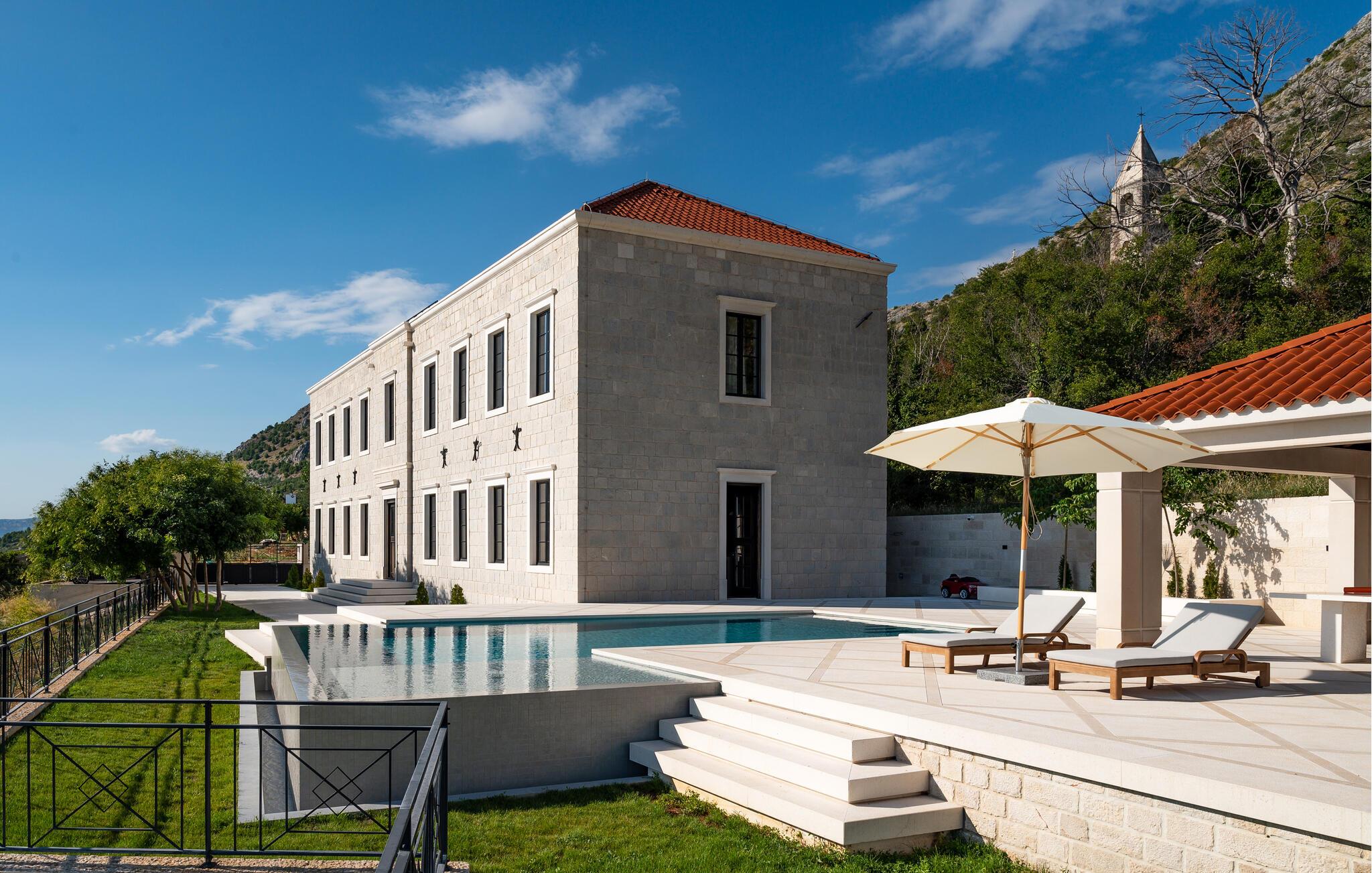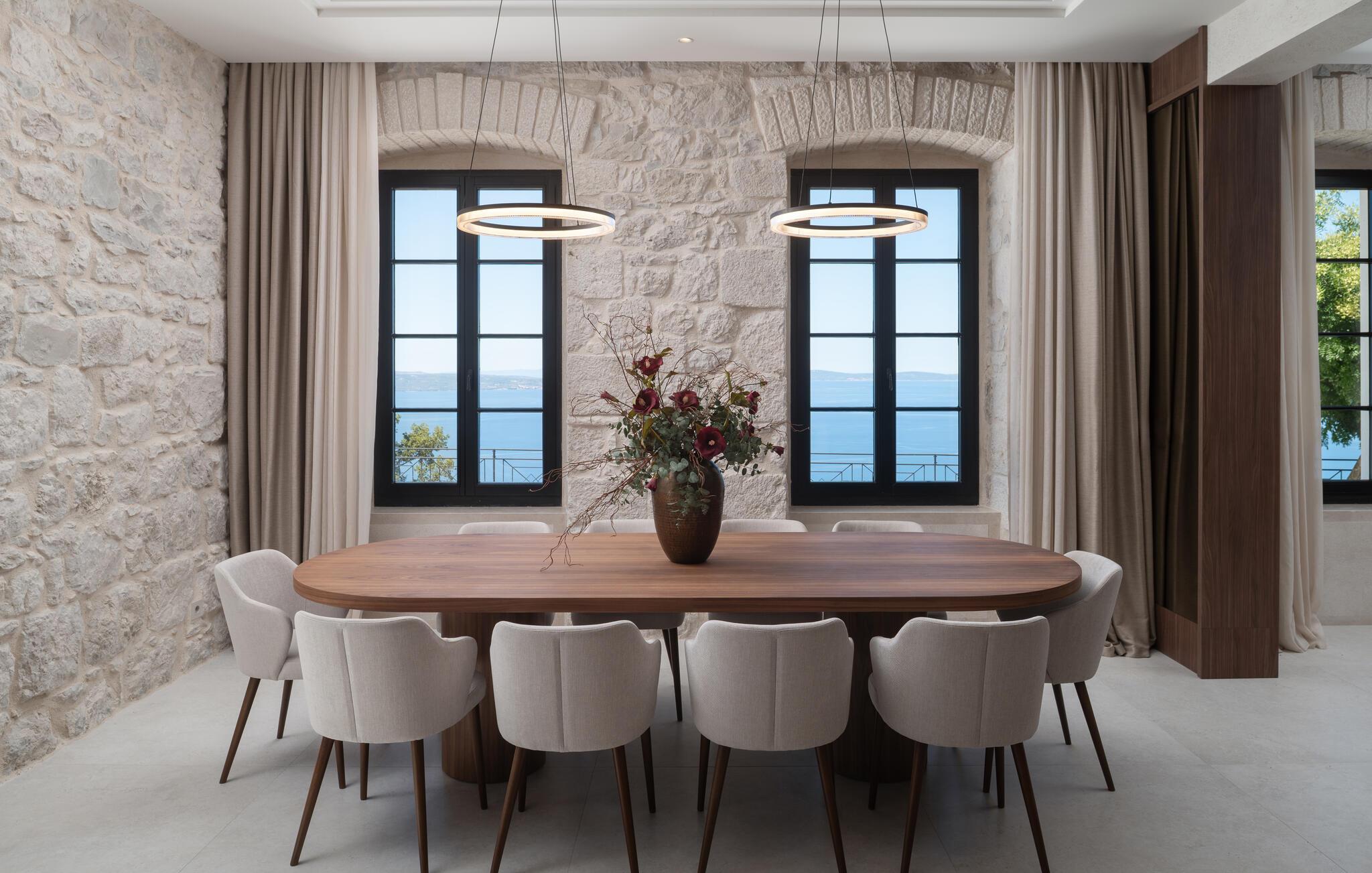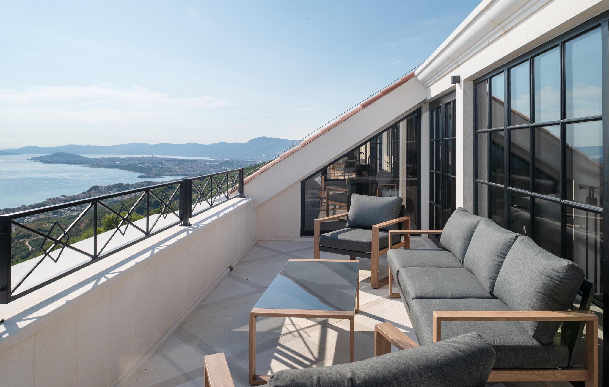 Forkæl jer selv med en luksuriøs ferie i dette sensationelle feriehus med pool, spa-område og betagende havudsigt. Dette stilfulde og møblerede feriehus af høj kvalitet tilbyder masser af plads til at nyde dets mange ekstraudstyr, selv med en større familie eller nære venner. Nyd den behagelige atmosfære med hyggelige måltider og madlavningsaftener sammen, slap af i spabadet eller saunaen, og saml jer til hyggelige filmaftener i den komfortable stue med pejs. I det elegante udendørsområde kan I nyde den fortryllende havudsigt, mens I svømmer i den storslåede infinity-pool, slapper af på en liggestol og nyder lækre måltider, mens de yngre gæster morer sig på karrusellen, trampolinen og mange andre spændende legemuligheder. Oplev uforglemmelige solnedgange med et glas vin og en snak på terrassen i de lune sommeraftener. Gå en tur gennem Splits gamle bydel, besøg Diocletians Palads, og prøv lækre fiskeretter i traditionelle konobas (taverner). Tag en bådtur til øerne Brac, Hvar eller Šolta og svøm i turkisblå bugter. Besøg den historiske by Trogir, ro kajak og beundr vandfaldene i Krka Nationalpark.