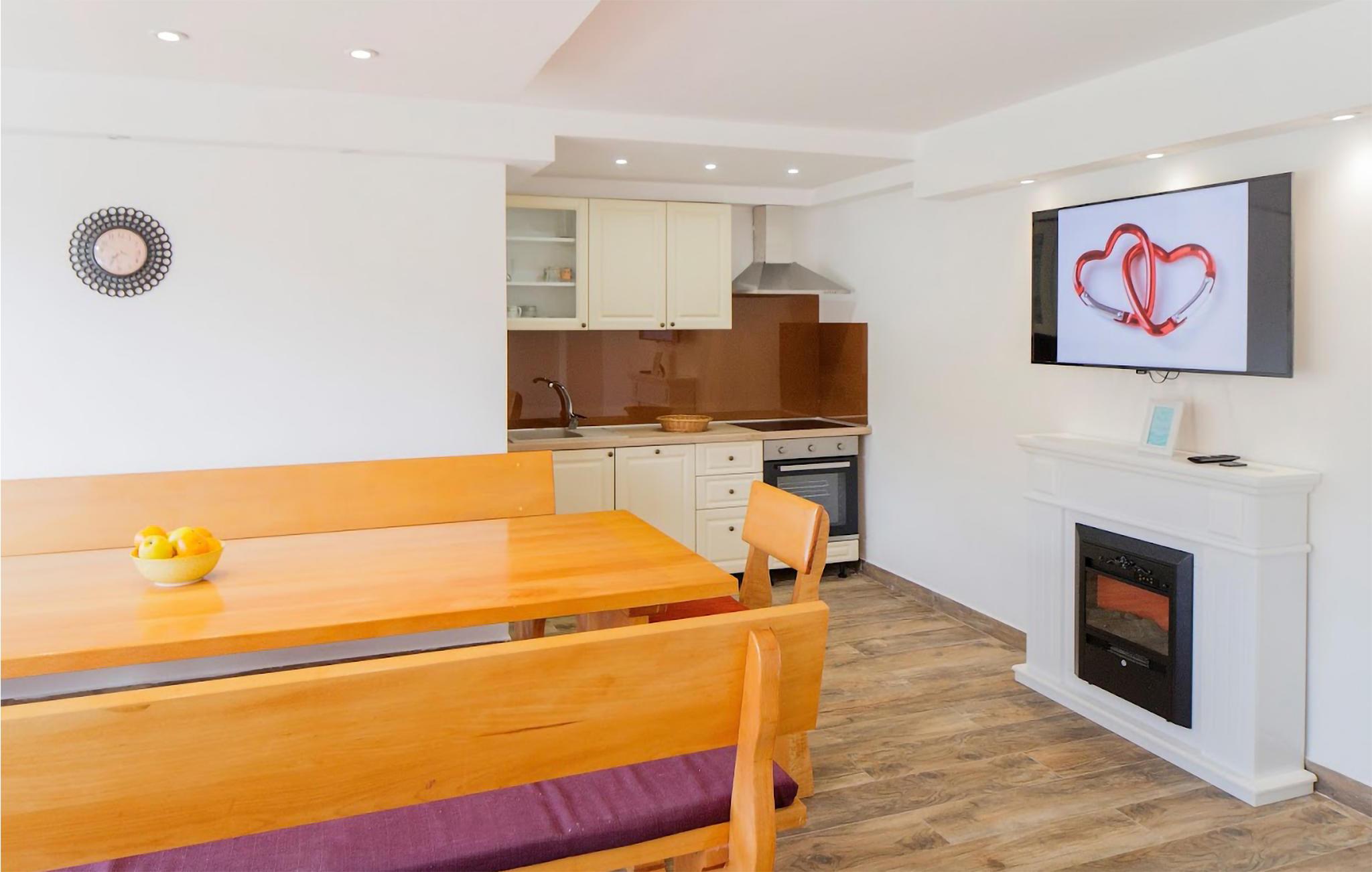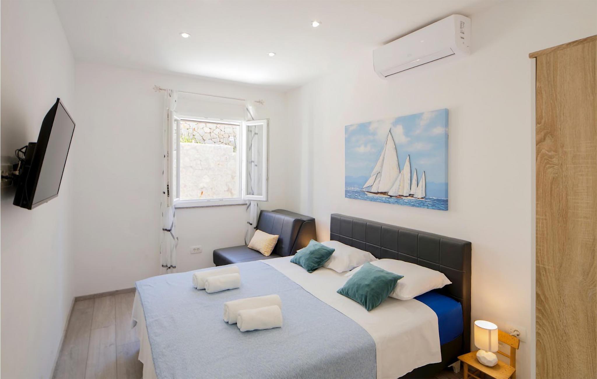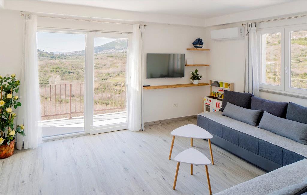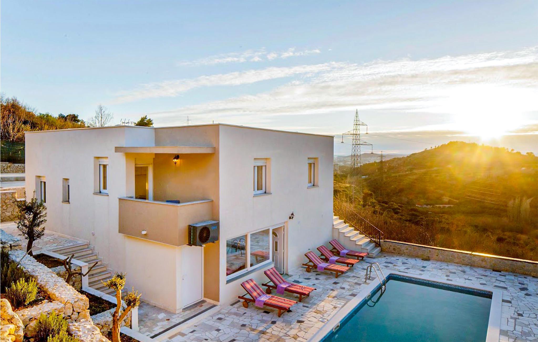 Med en ideel beliggenhed i nærheden af den attraktive kystby Split, kan I se frem til en ferie i særklasse i dette moderne designede hus. Udendørsarealet imponerer med den store terrasse og poolen, hvor I finder masser af plads til afslapning, og ikke mindst den uhindrede udsigt over det omkringliggende kuperede landskab. Grillen med bænke foran inviterer til at spise sammen i den friske luft, mens poolen, der er oplyst om aftenen, skaber den rette atmosfære dagen igennem.