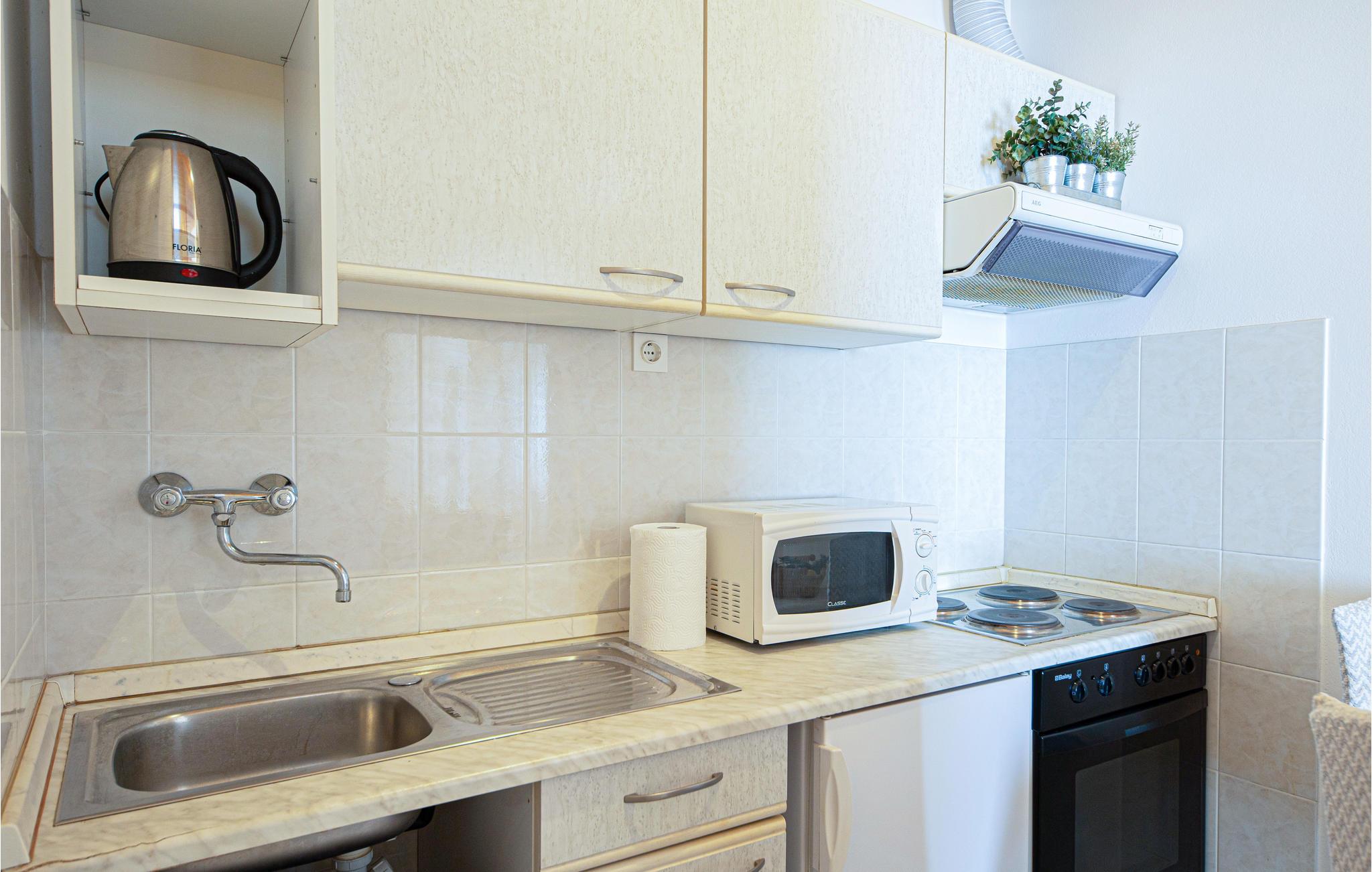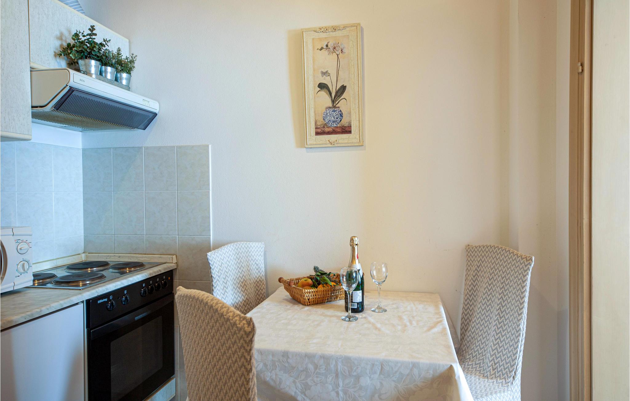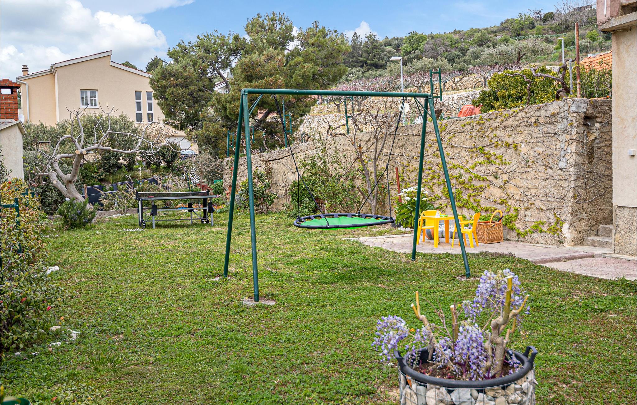 Denne hyggelige ferielejlighed er det ideelle udgangspunkt for jeres aktiviteter og udflugter i området. Lejlighedens enkle komfort byder på alt, hvad I skal bruge for at slappe af og lægger op til at nyde dagens måltider og havudsigten på terrassen eller til at have det sjovt og lege i haven. Spil bordtennis sammen, se børnene gynge og lege, eller ligge i solen.