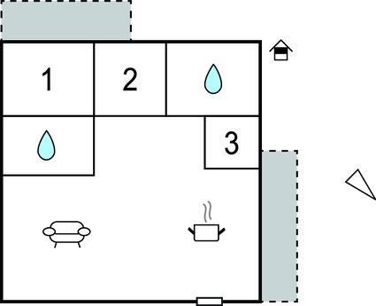 Opholdsstue/køkken 10m2 - 2 Sovepladser. (Sofa, madras eller lignende).