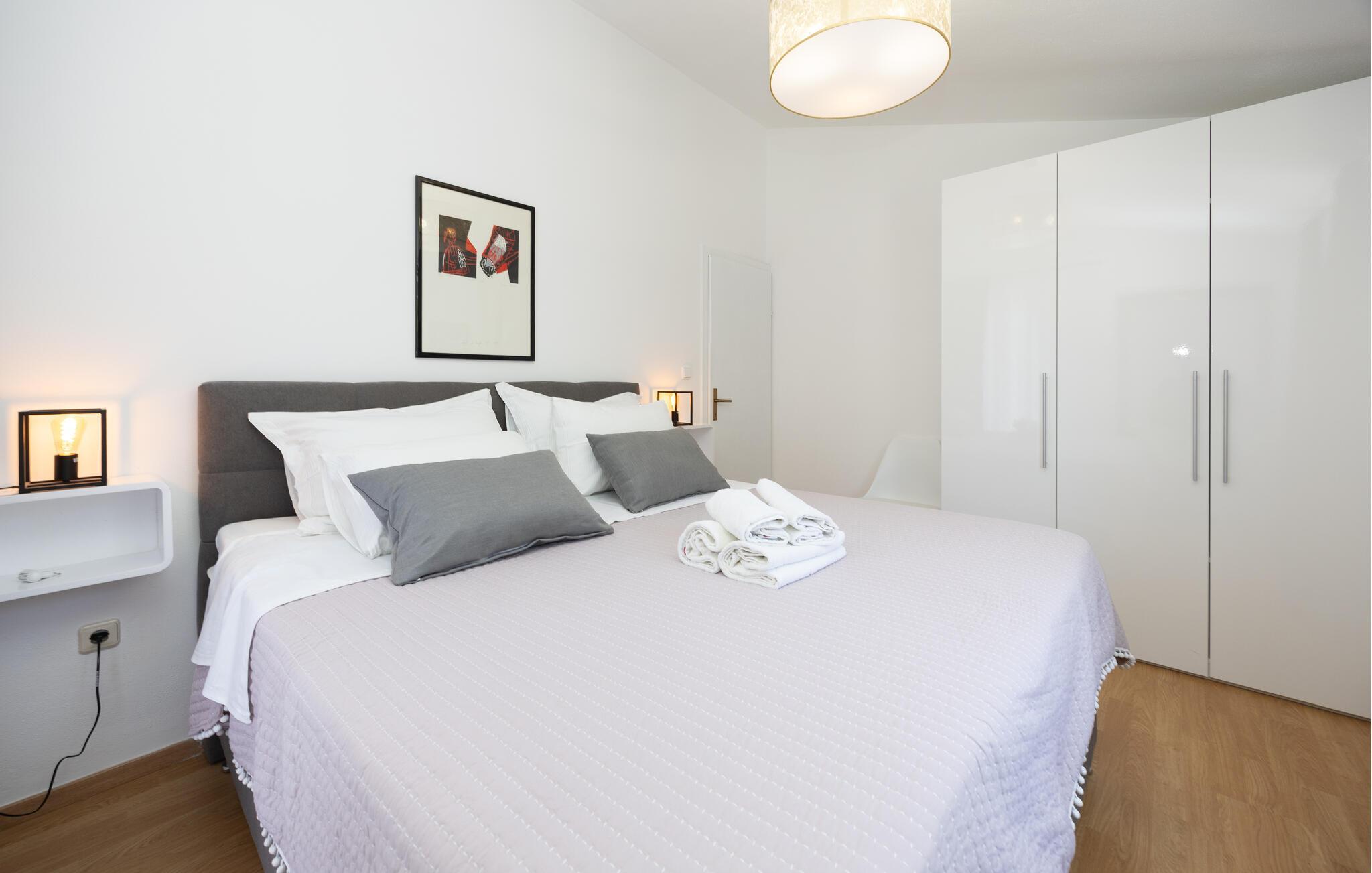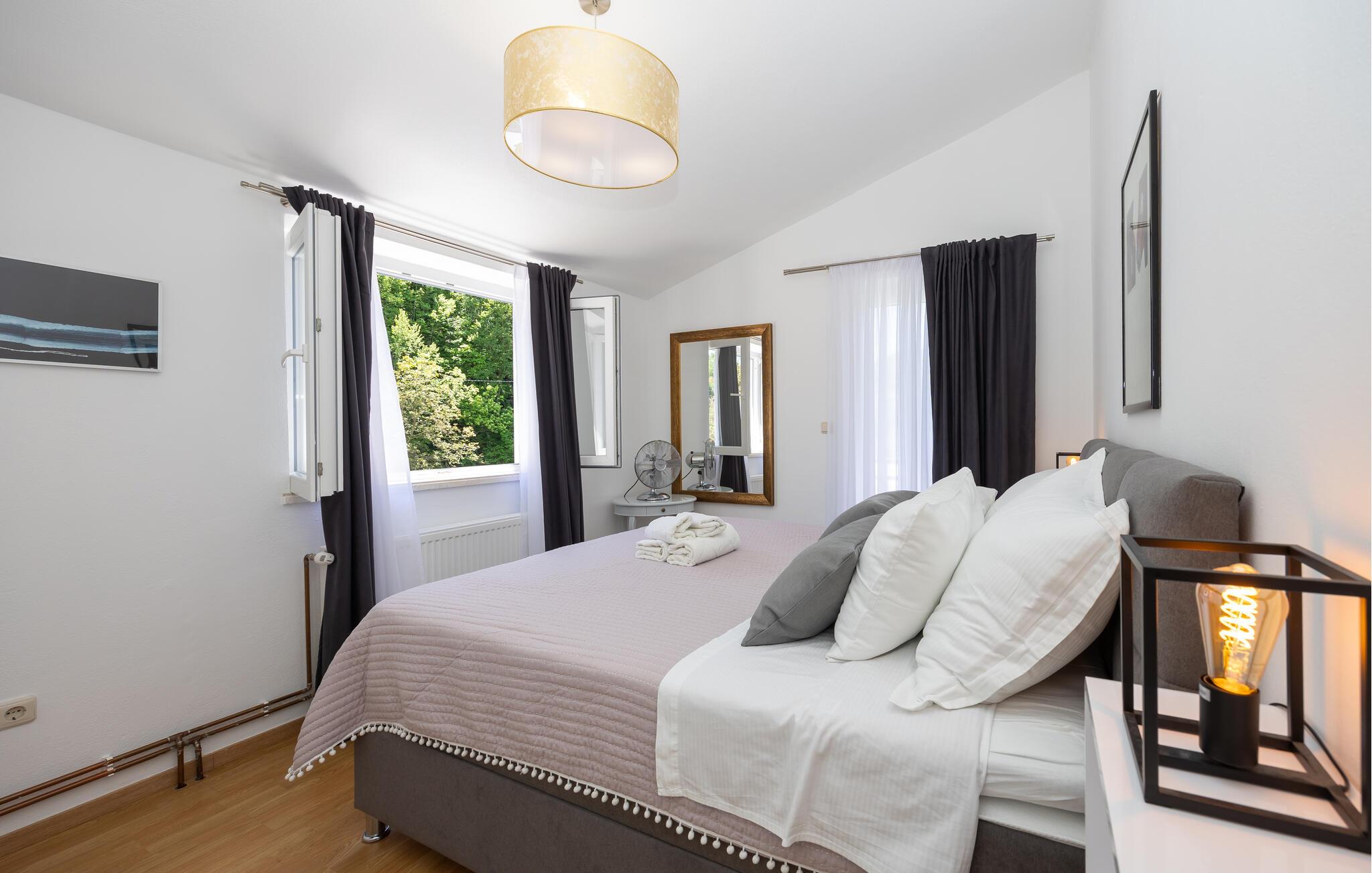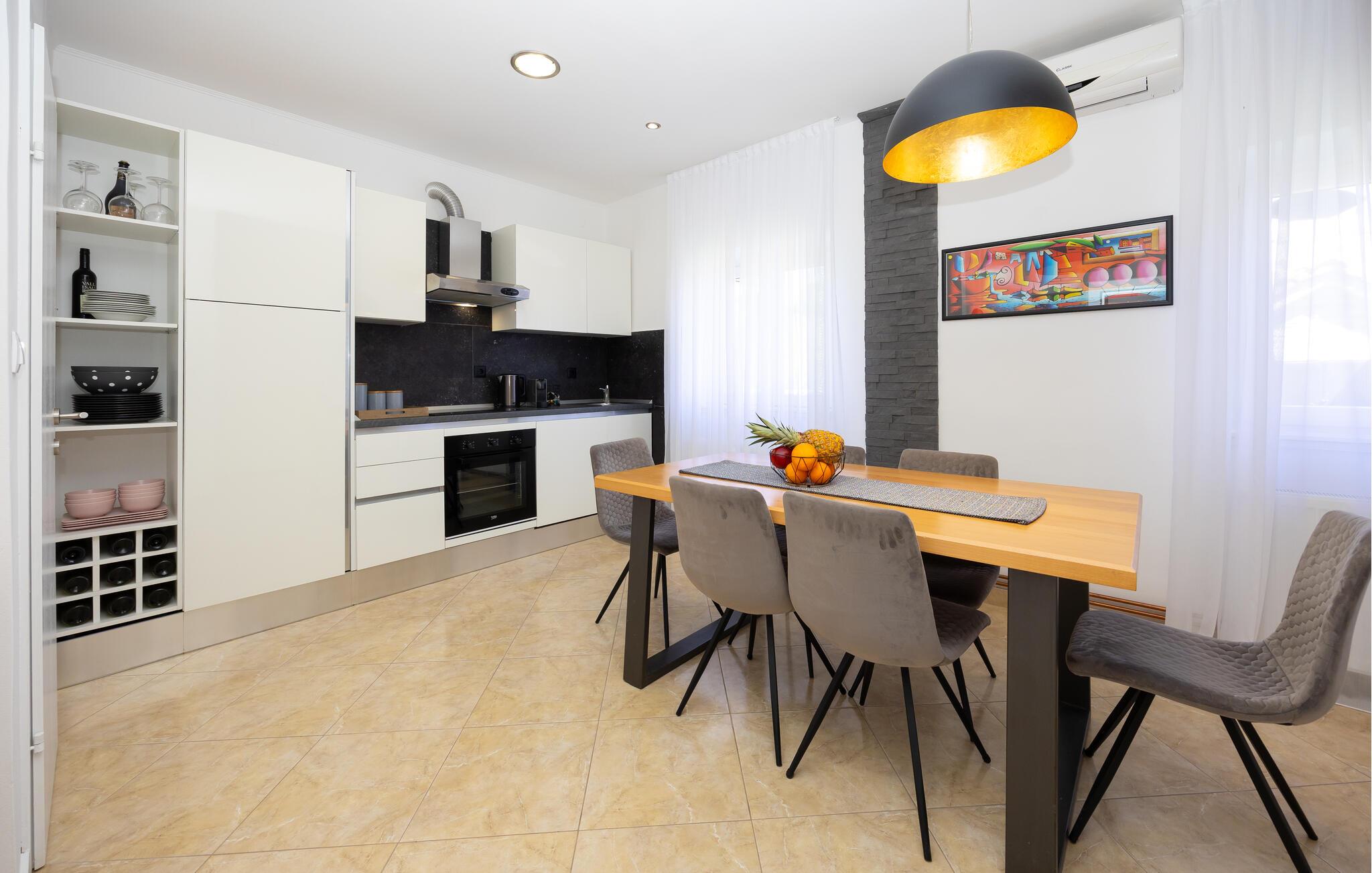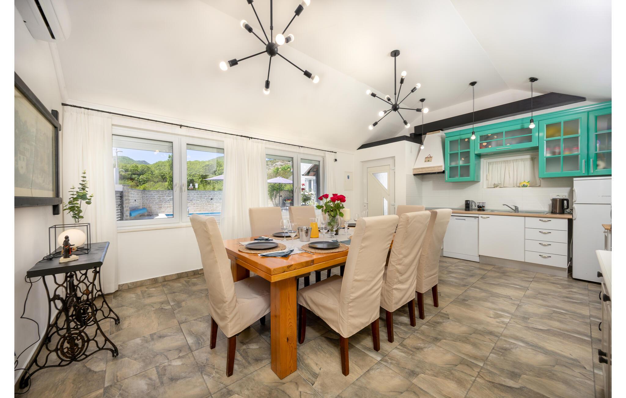 Pak kufferterne og glæd jer til afslapning med jeres nærmeste i dette familievenlige feriehus. Hold hyggelige madlavningsaftener i det fuldt udstyrede køkken, og nyd jeres kulinariske kreationer i den stilfuldt oplyste spisestue. Tilbring tid sammen med brætspil, eller slap af på den behagelige sofa foran fjernsynet efter en begivenhedsrig dag.
