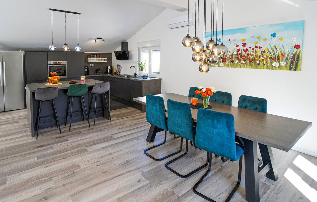 I dette hus, der ligger omgivet af kuperede landskab, finder I jeres afslapning fra den travle hverdag. En lys stue med et stort spisebord, en komfortabel sofagruppe og en bardisk lægger op til at tilbringe hyggelige timer med familien. Slap af, mens I lytter til musik, spiller spil eller laver mad sammen. Fremstil lækre måltider sammen i det moderne køkken.