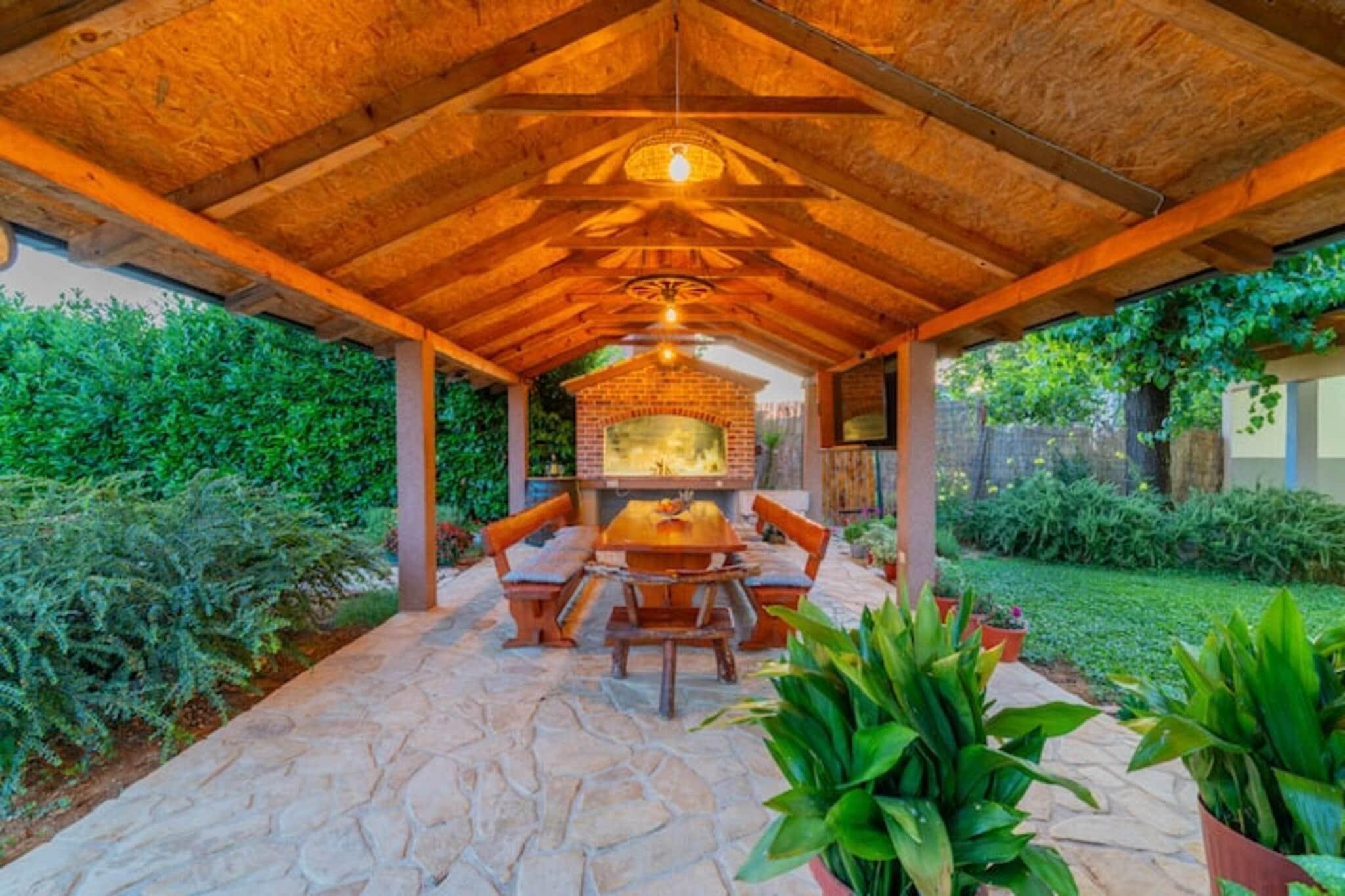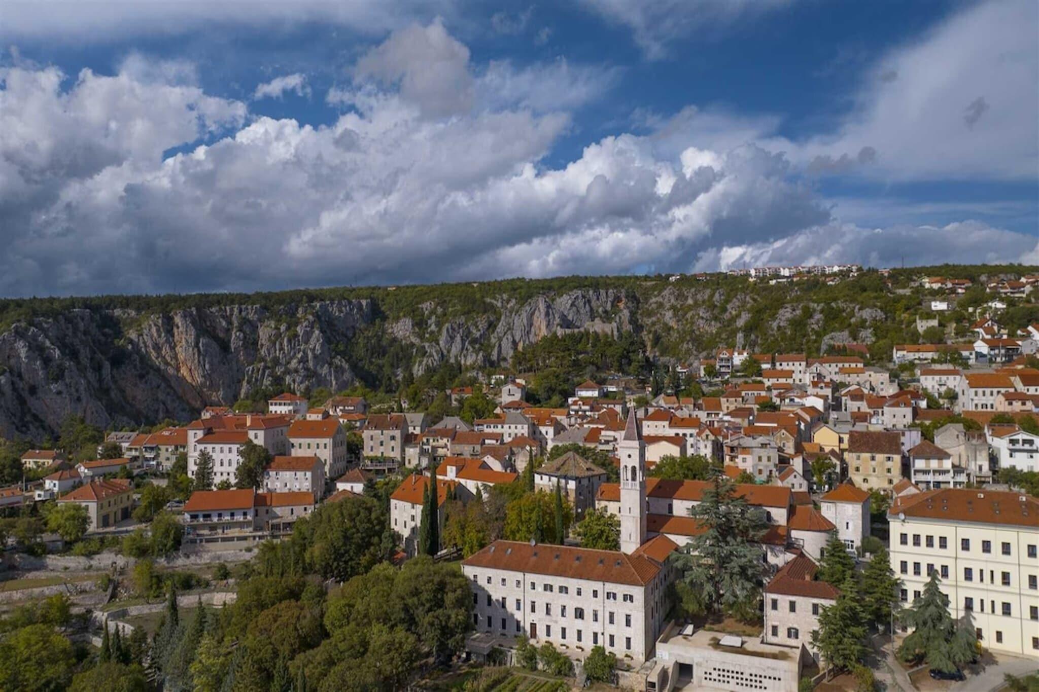 Gemt blandt vinmarker og gamle olivenlunde i Vinjani Donji, kun få minutter fra Imotskis sjæl, er Villa Lavandis den slags sted, hvor tiden slipper sit greb. Bygget i 1911 og restaureret med stille elegance, blander denne stenvilla med fem soveværelser til op til ti gæster historiske teksturer med moderne komfort på en måde, der føles ubesværet, ikke iscenesat. Indenfor er rytmen rolig og generøs. Fem luftige dobbeltværelser og fire fuldt udstyrede badeværelser er fordelt på to etager, så alle finder deres eget hjørne af fred. Den åbne opholdsstue med pejs, tv og Wi-Fi er afbalanceret af et fuldt udstyret køkken skabt til fælles måltider, lange morgenmader og uplanlagte middagsplaner. Udenfor åbner villaen sig ud til en indhegnet have duftende af lavendel og middelhavsurter. Den 50 m² store private pool sætter tonen for afslappede dage, indrammet af liggestole, skyggefulde terrasser og en traditionel stengrill til sene frokoster, der bliver til solnedgangsmiddage. Gruppen kan vælge mellem bordtennis, cykelstier og skyggefulde vinpauser. Det lokale liv forbliver tæt på, da der er en restaurant i gåafstand, markeder kun en kort køretur væk, og de legendariske blå og røde søer i Imotski ligger få minutter fra din dør. Makarska-kysten venter længere fremme, tæt nok på til en dag ved havet, langt nok væk til at holde dine aftener rolige. På Villa Lavandis presser luksus dig ikke. Den bringer dig ind i naturen, i fælles tid og i en blødere form for ferie, der varer ved længe efter, du er taget afsted.