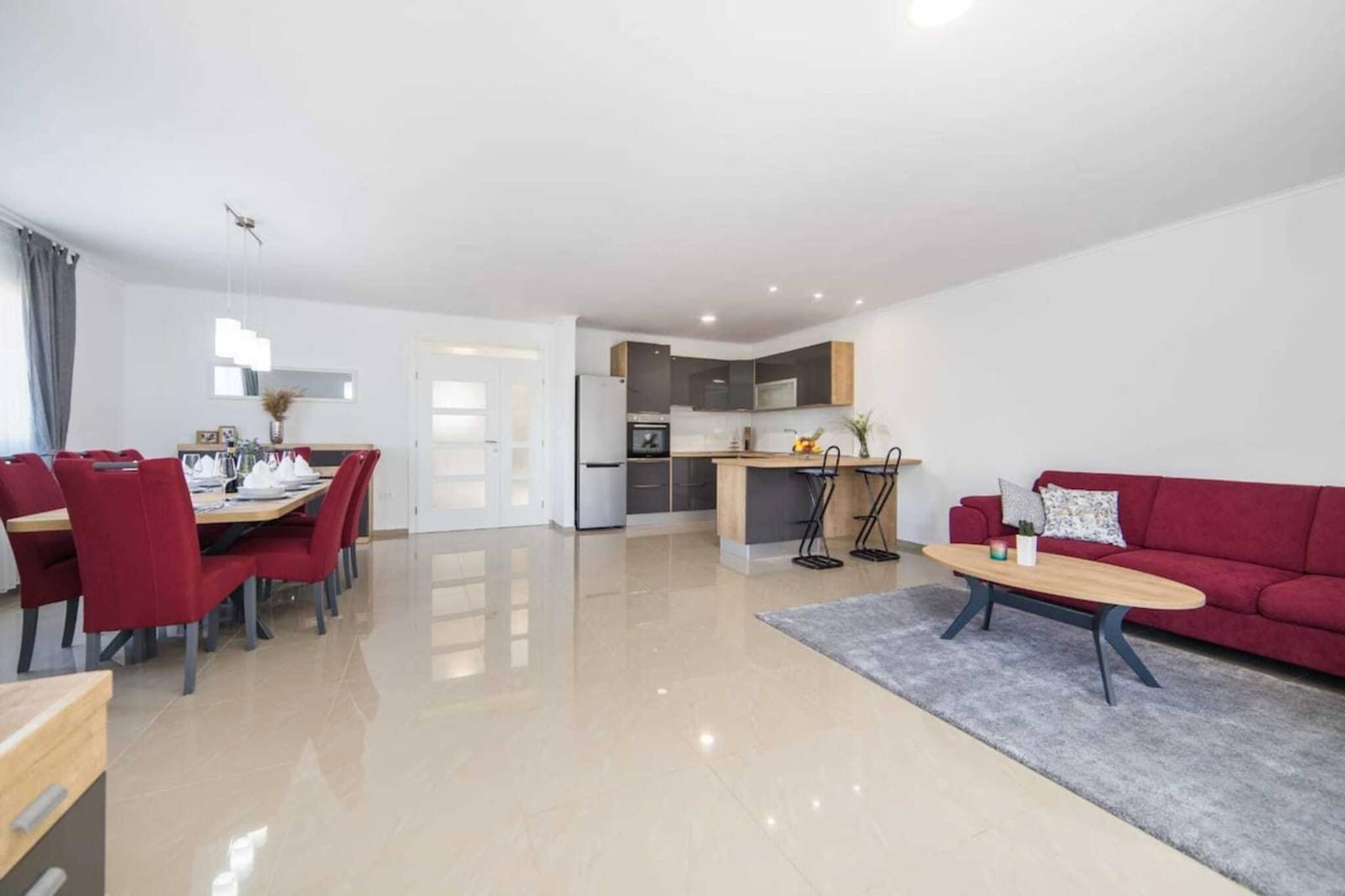 I det fredelige landskab nær Imotski er Villa Vinis Terra designet til familier, der nyder at være aktive, udforske sammen og vende tilbage hver aften til total komfort og privatliv. Denne villa med fem soveværelser er fuldt indhegnet, rummelig og fyldt med aktiviteter og giver børn frihed til at lege og forældre plads til at slappe fuldstændigt af. Villaens planløsning er praktisk og familievenlig på to etager. Stueetagen samler alle med et lyst, åbent køkken og opholdsstue med pejs, der strækker sig problemfrit ud til en overdækket terrasse for nem inde- og udeliv. To dobbeltværelser, et fælles badeværelse og et ekstra gæstetoilet på denne etage er ideelle til yngre børn eller ældre. Ovenpå tilbyder to fælles badeværelser, en anden stue med en PlayStation, der gør den til børnenes zone, og tre soveværelser - to med dobbeltsenge og et med to enkeltsenge - et roligt tilflugtssted med udsigt over landskabet til afslappende nætter. Udenfor sker den sande magi. En stor privat swimmingpool holder energien oppe fra morgen til aften, mens jacuzzien bliver den perfekte aftenbelønning. Den skyggefulde have, gynger og legehus holder de små beskæftiget i timevis. Tilføj cykler og en overdækket grillterrasse, og hver dag forvandles naturligt til en fuld aktivitetsplan uden nogensinde at forlade villaen. Uden for portene fortsætter familieeventyrene - fra at udforske de berømte Blå og Røde Søer for naturture til stranddage langs Makarska Riviera. Cykling, kanosejlads, besøg på lokale taverner og naturskønne køreture sikrer ingen To dage føles nogensinde ens.