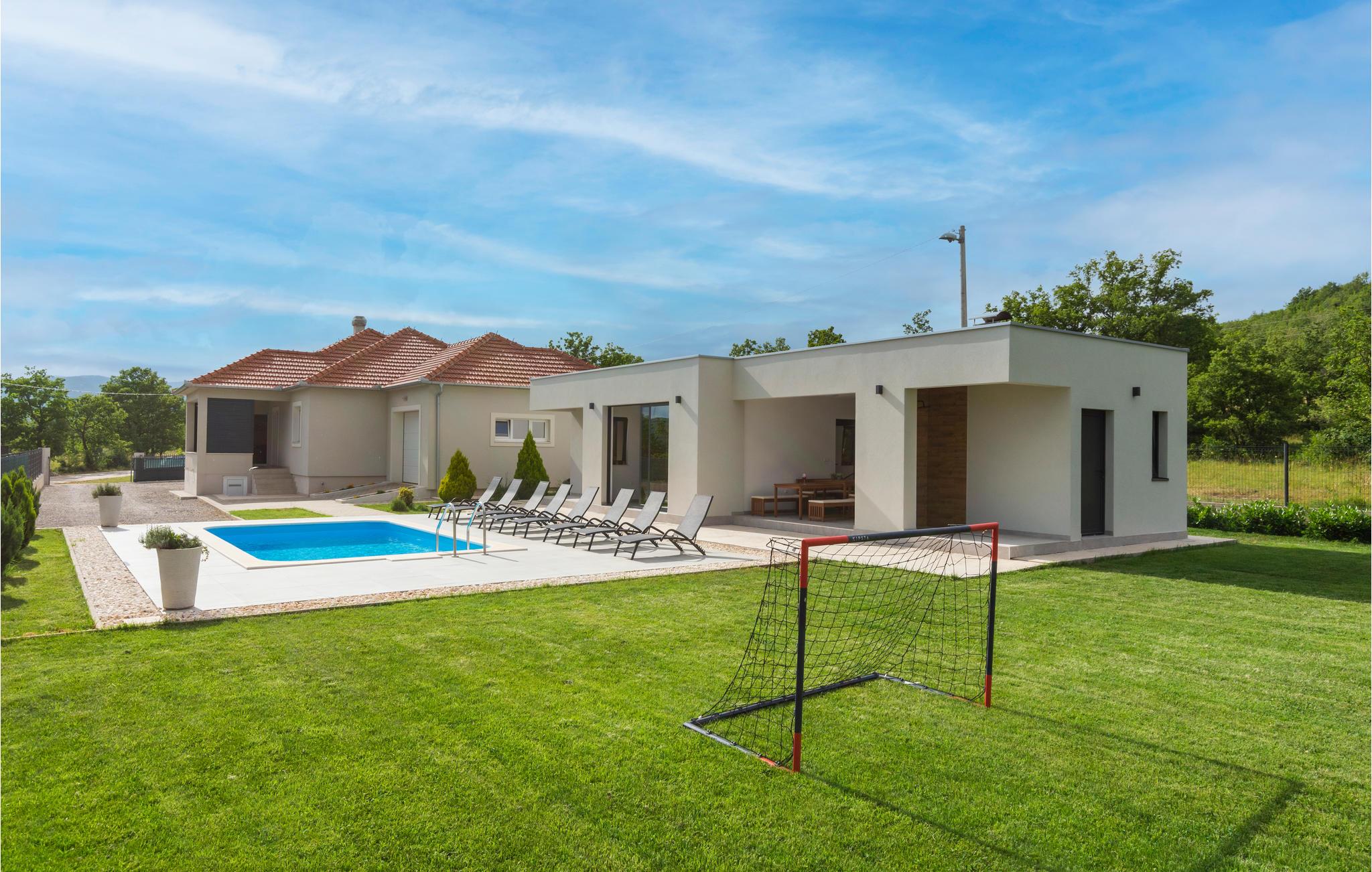 Dette skønne feriehus ligger i de dalmatiske bakkelandskaber omgivet af dejlig natur. De moderne indrettede indre værelser består af tre soveværelser, to badeværelser og et veludstyret køkken med opholdsstue. I gården til huset er der en dejlig forfriskende swimmingpool og grillområde. Besøg for enhver pris Sinj og Trilj, prøv kræfter med rafting på floden Cetina, paragliding eller tag en dukkert i søen. Som en dagsudflugt egner Split sig fortræffeligt. Her kan I opleve et hav af antikke seværdigheder i de små gyder og stræder af den gamle by som er bygget sammen med et romersk palads. Kulinarisk går I heller ikke forgæves her.