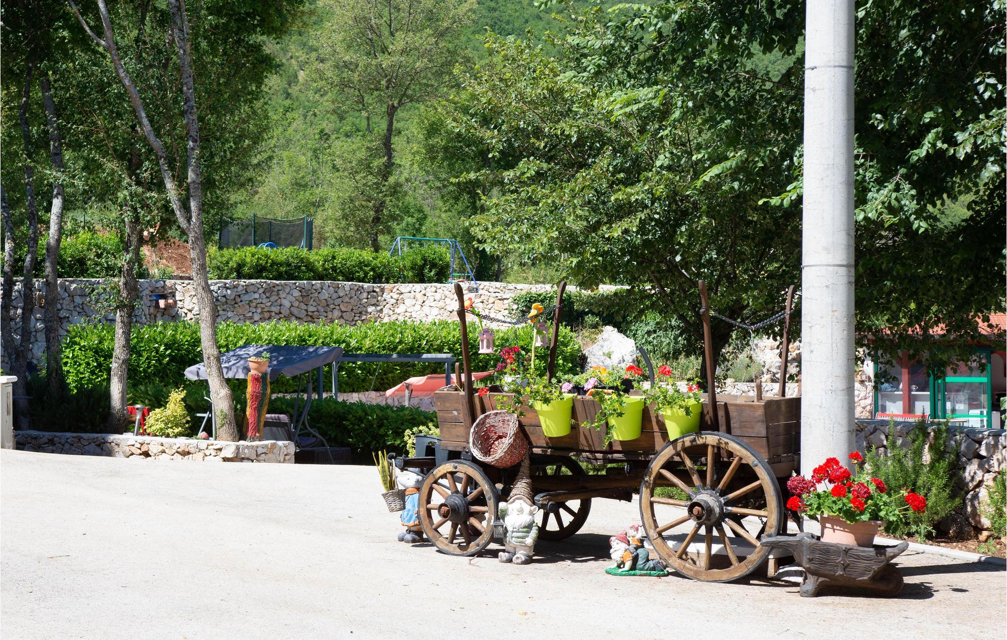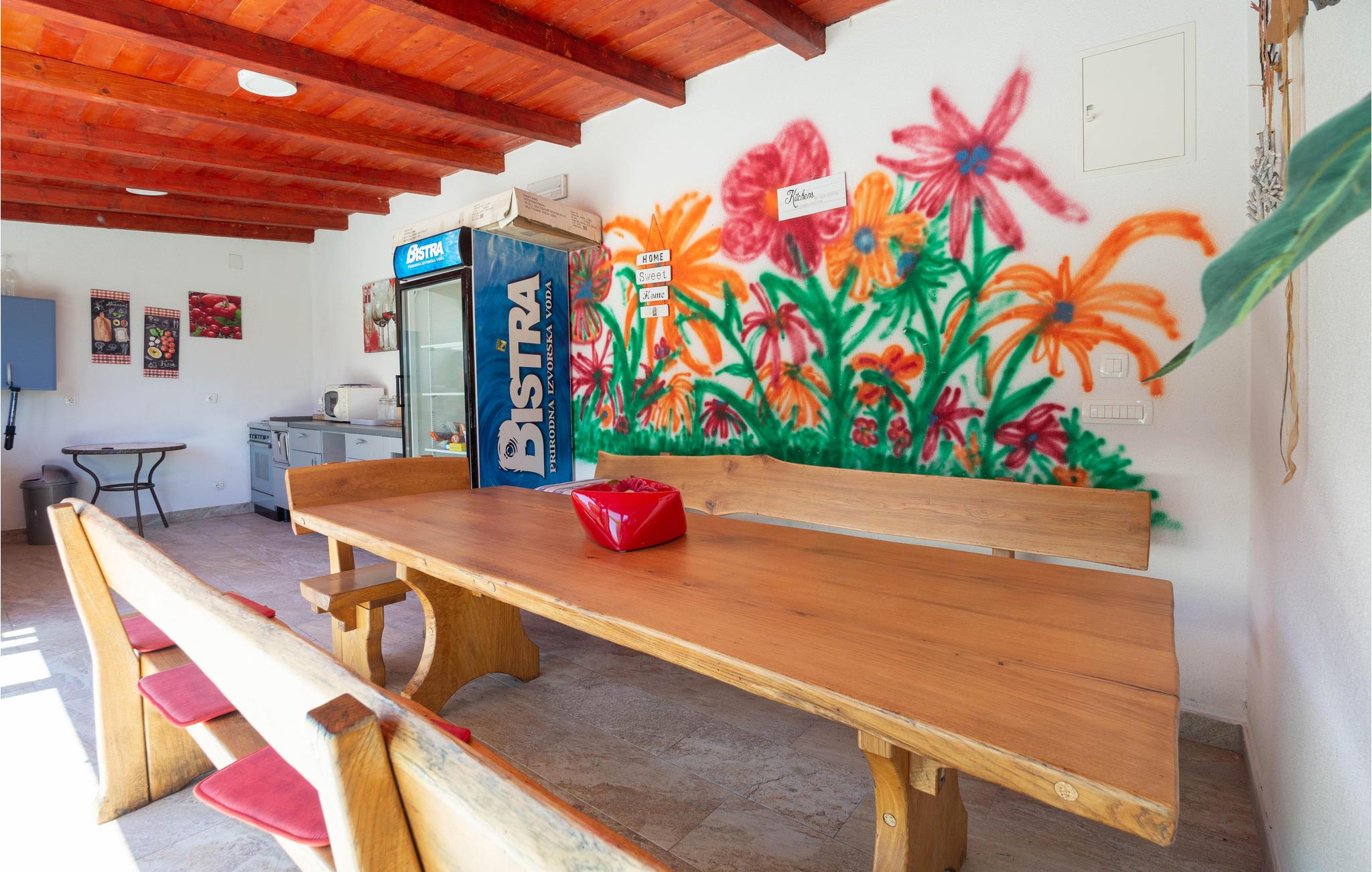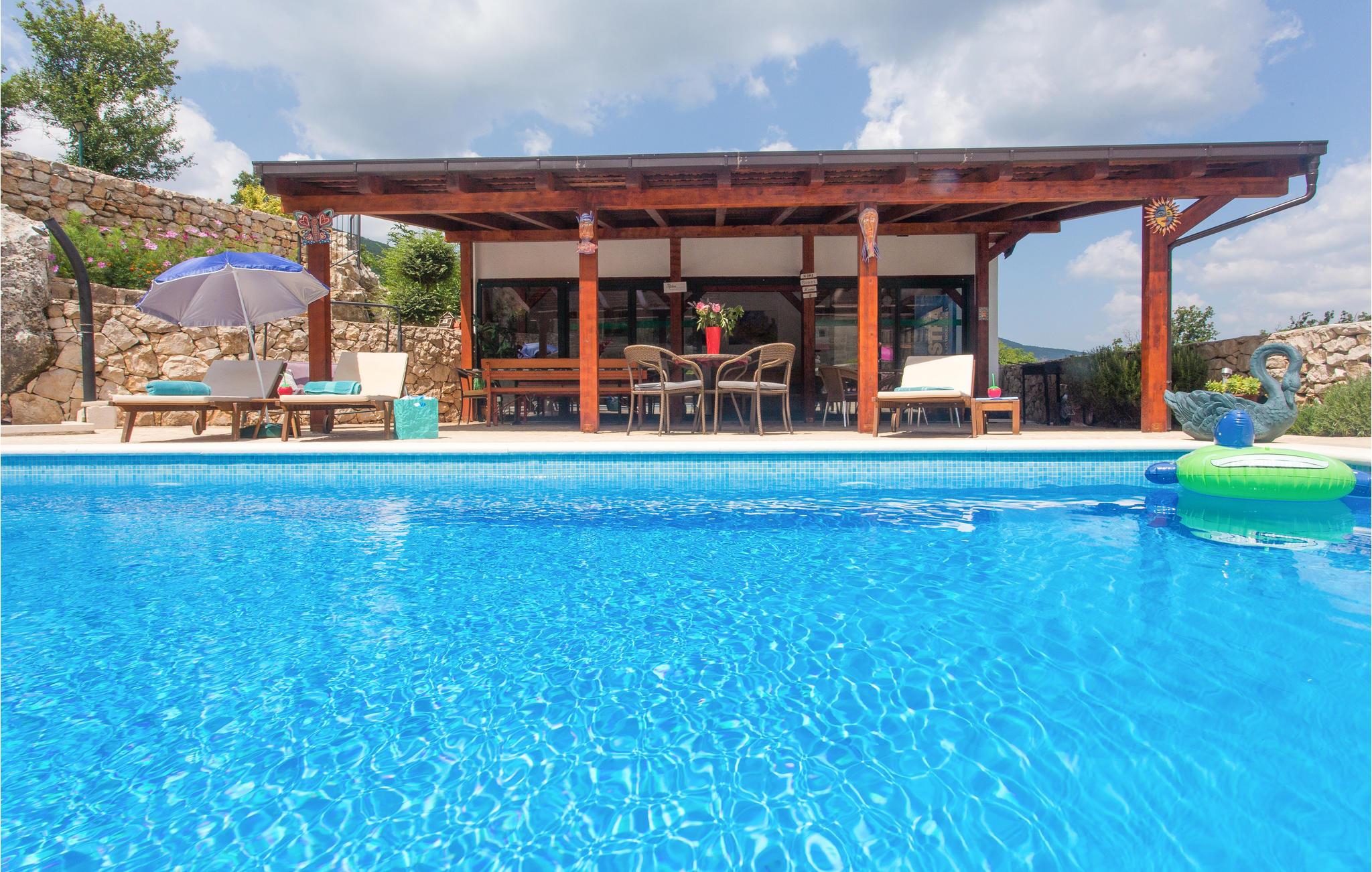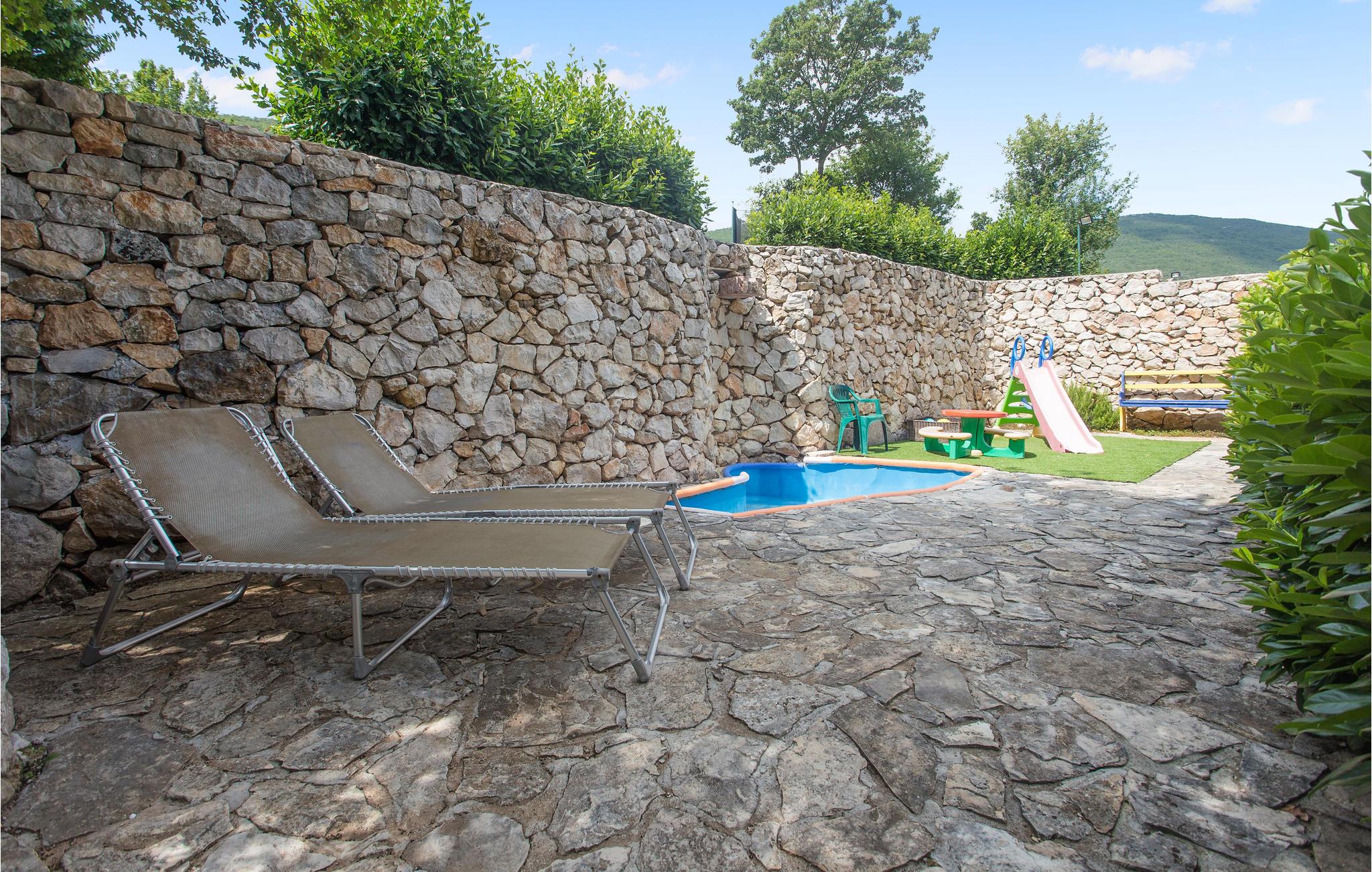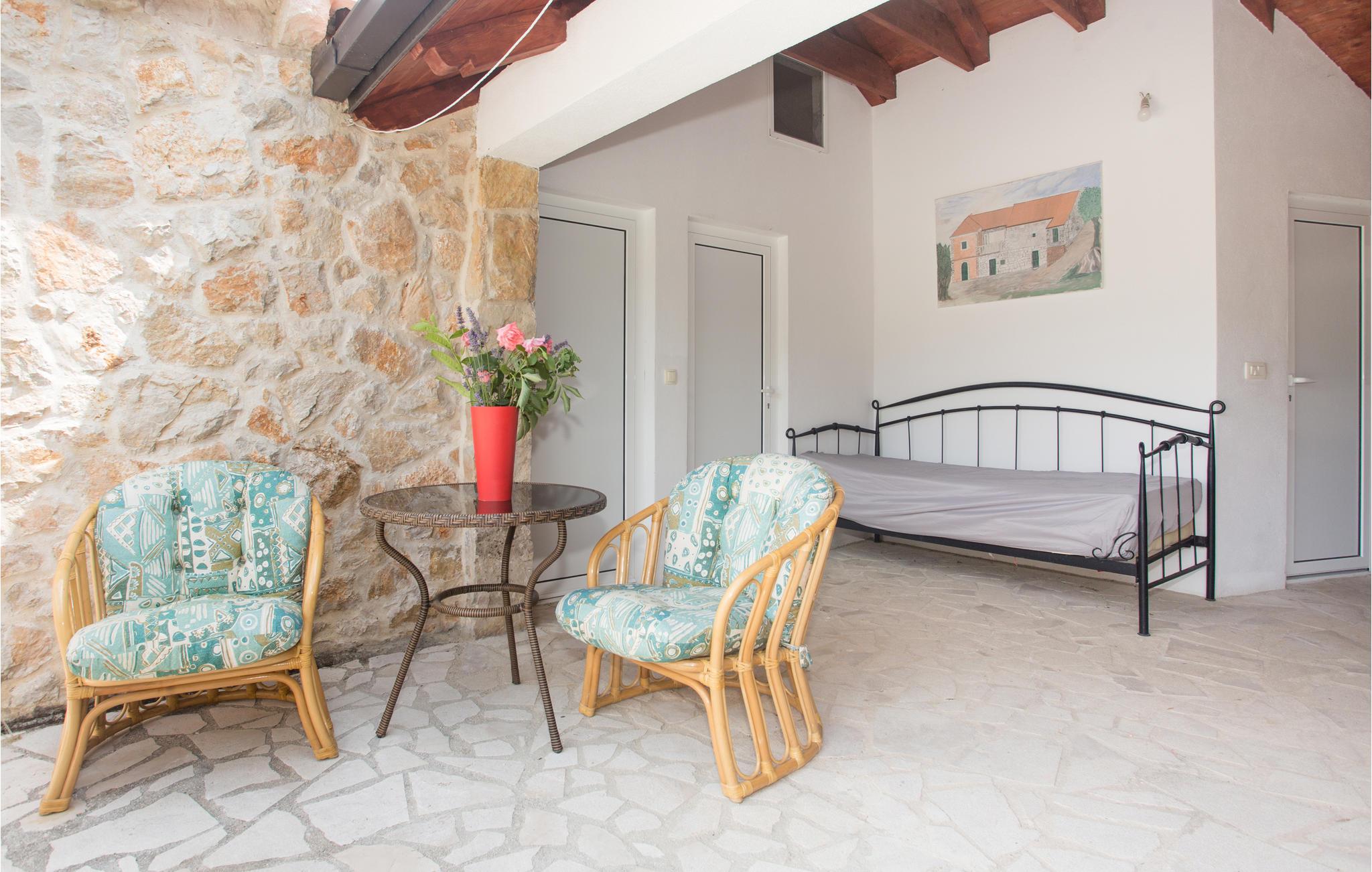 En gang en gammel stenejendom, er dette feriehus nu renoveret lyst og i autentisk dalmatisk stil og tilpasset alle moderne behov. Det består af tre indretninger i et. I stueetagen venter stuen med gammel dalmatisk taverne med pejs, ideelt til hyggeligt samvær, og i overetagen venter en stor stue og soveværelser. Kun få trin derfra er der yderligere to bygninger, en med to lejligheder, forbundet med ydertrapper, og den anden er udlagt som soveværelse med badeværelse. Der er også en stor pool, omgivet af grøn vegetation, med meget underholdning, skønt udformede solterrasser og herlig udsigt til det dalmatiske baglands landskab. Besøg byen Split og nyd en tur igennem Diokletians historiske palads.