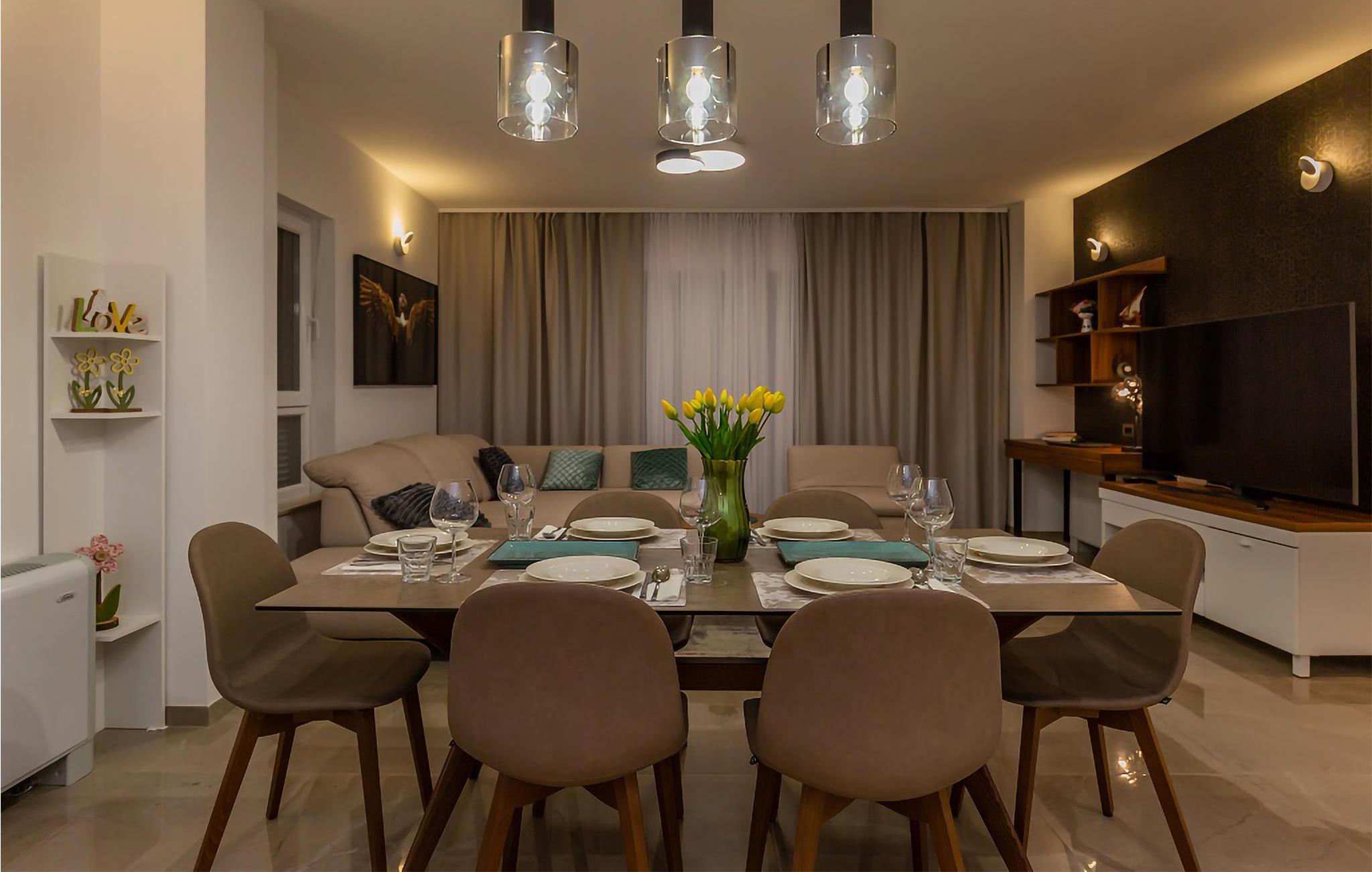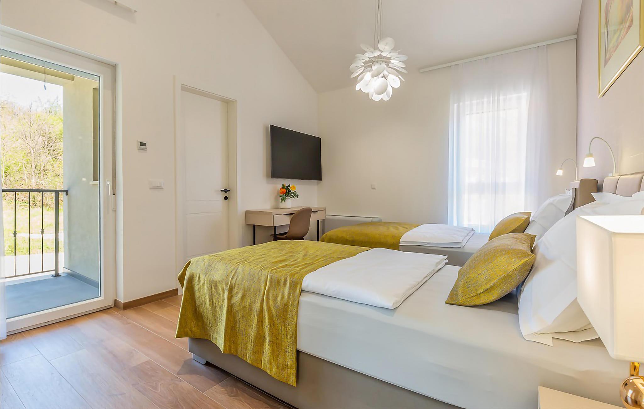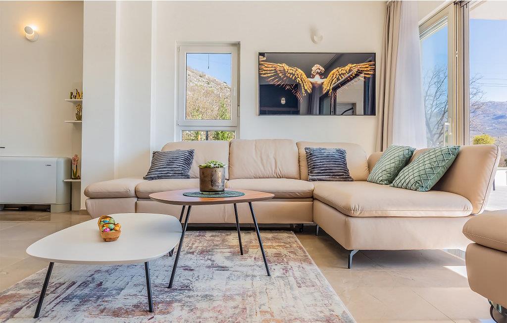 Moderne og elegant indretning kendetegner dette skønne feriehus, som bliver en herlig ramme om jeres dage i Kroatien. Soveværelserne er smagfulde, og der er næsten et badeværelse pr. person, hvilket er en fordel, når I skal ud af døren om morgenen.