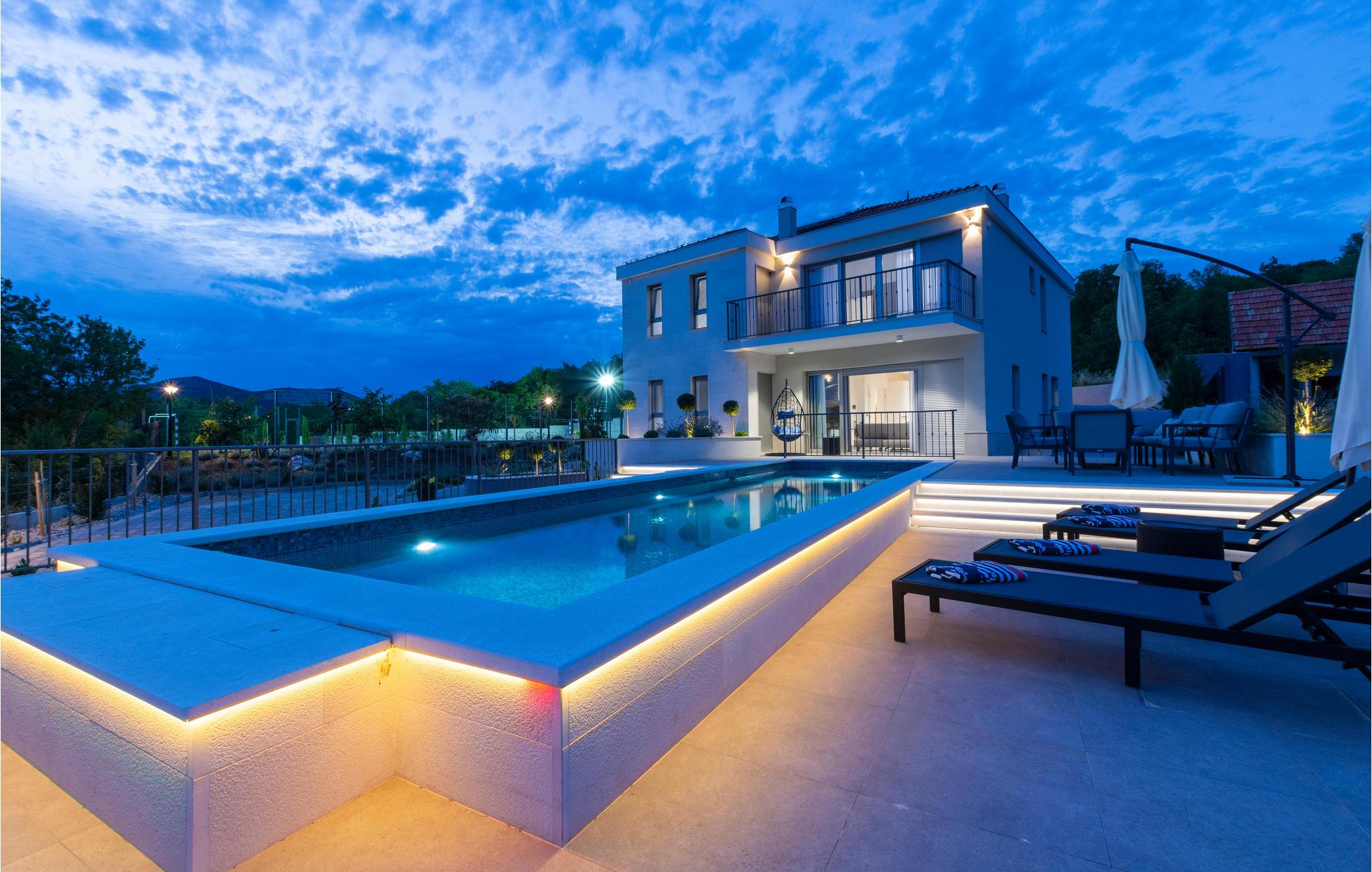 Placeringen af ??den luksuriøse ejendom giver jer mulighed for at opleve de dalmatiske bjergkæder. Pak vandrestøvlerne, for udsigten fra toppen er betagende. Se ned på Split og det azurblå Adriaterhav samt den varierede landregion. På kun 15 km kan I nå til Split. For mange er det den smukkeste by i Kroatien. Havnebyen vil imponere jer med smalle gader, men også moderne butikker og mange seværdigheder. Tag på en historisk oplevelsestur og fordyb jer i byens fantastiske atmosfære. Et stort antal små strande inviterer jer til at bade i det kølige vand.