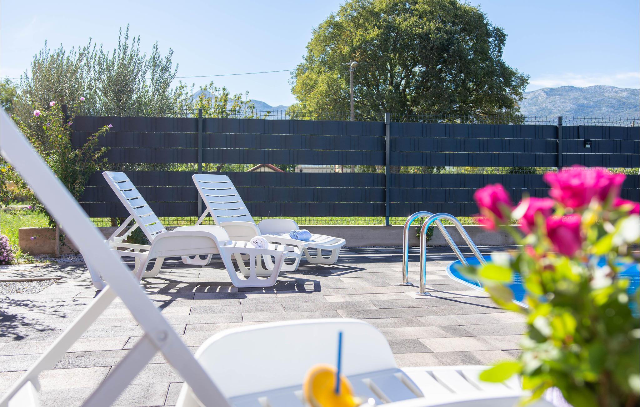 Tilbring en vidunderlig tid sammen i husets lyse atmosfære og hyggeligt møblerede rum. Fra stuen er der desuden adgang til den rummelige terrasse med grill og havemøbler, hvor I kan tilberede jeres yndlingsretter og nyde solens stråler hver dag. I kan også tage en forfriskende dukkert i den udendørs pool og bagefter tørre jer i solen på liggestolene.