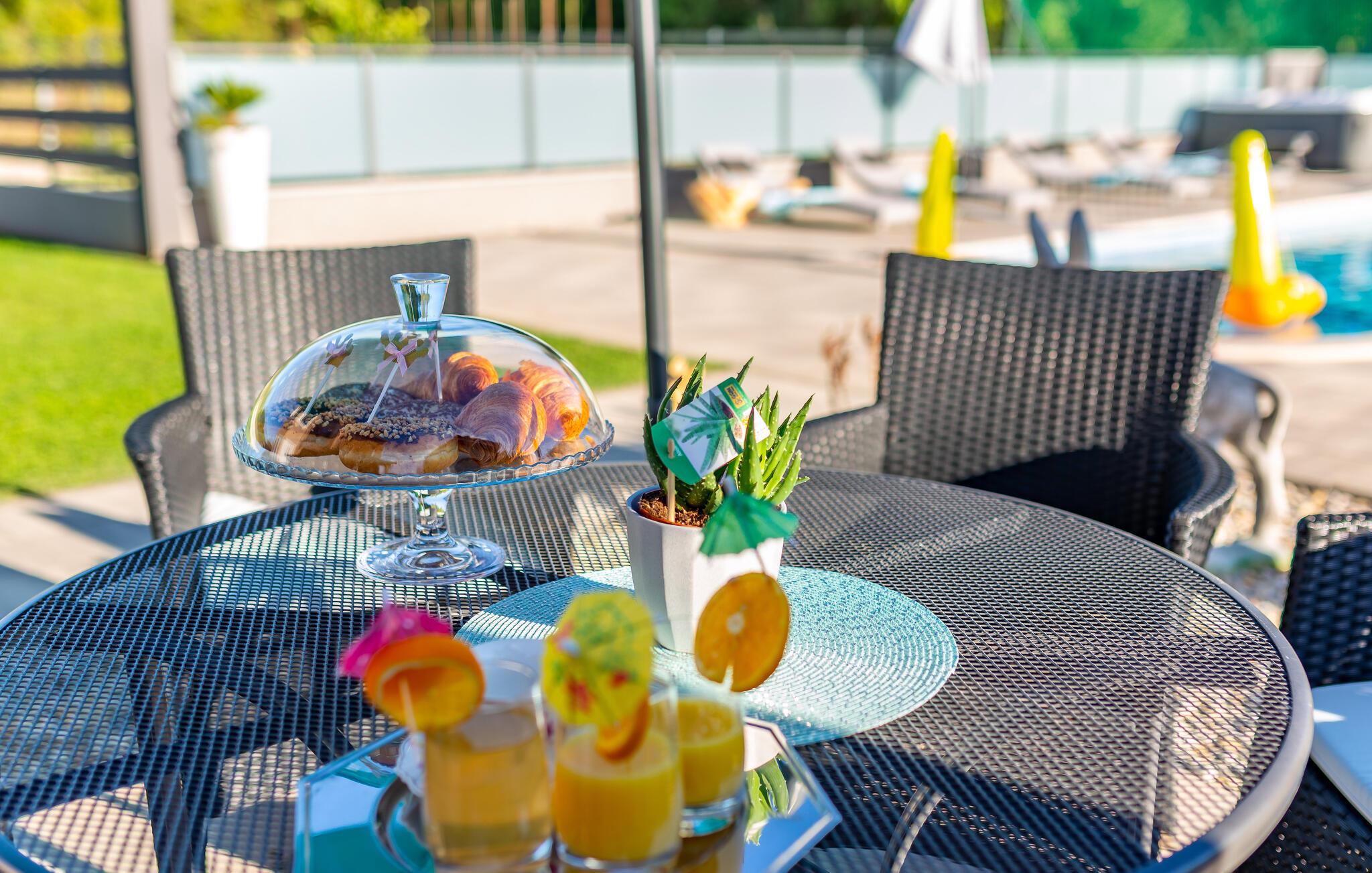 Husets indre lader intet tilbage at ønske. Det store opholdsområde med moderne hjørnesofa giver plads til hyggelige aftener. Køkkenet gør madlavning til en fornøjelse, og den elegante spisestue er ideel til fælles måltider. Både leg og sport er også tænkt med. Brug fitnessudstyret til at holde jer i form på ferien, og nyd fælles sjov på boldbanen eller hop med børnene på trampolinen.
