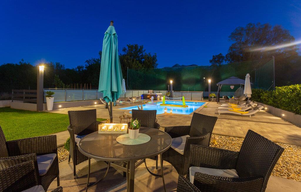 Velkommen til jeres drømmehus i Dugopolje. Nyd ferien i denne moderne og smagfuldt indrettede bolig. Start dagen på den hyggelige terrasse med en omfattende morgenmad og lad blikket vandre over det rummelige udendørsområde med pool og siddepladser. De komfortable liggestole ved poolen inviterer til afslapning og solbadning, mens whirlpoolen sørger for ren afslapning. Den velplejede have har en muret grill, som giver mulighed for hyggelige grillaftener under stjernehimlen. Gør det behageligt om aftenen, nyd et glas vin og den behagelige atmosfære på dette unikke sted.