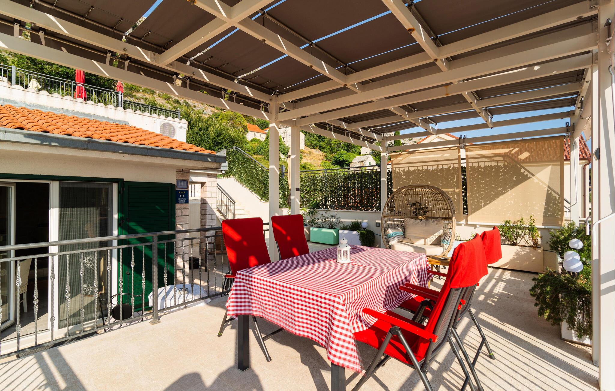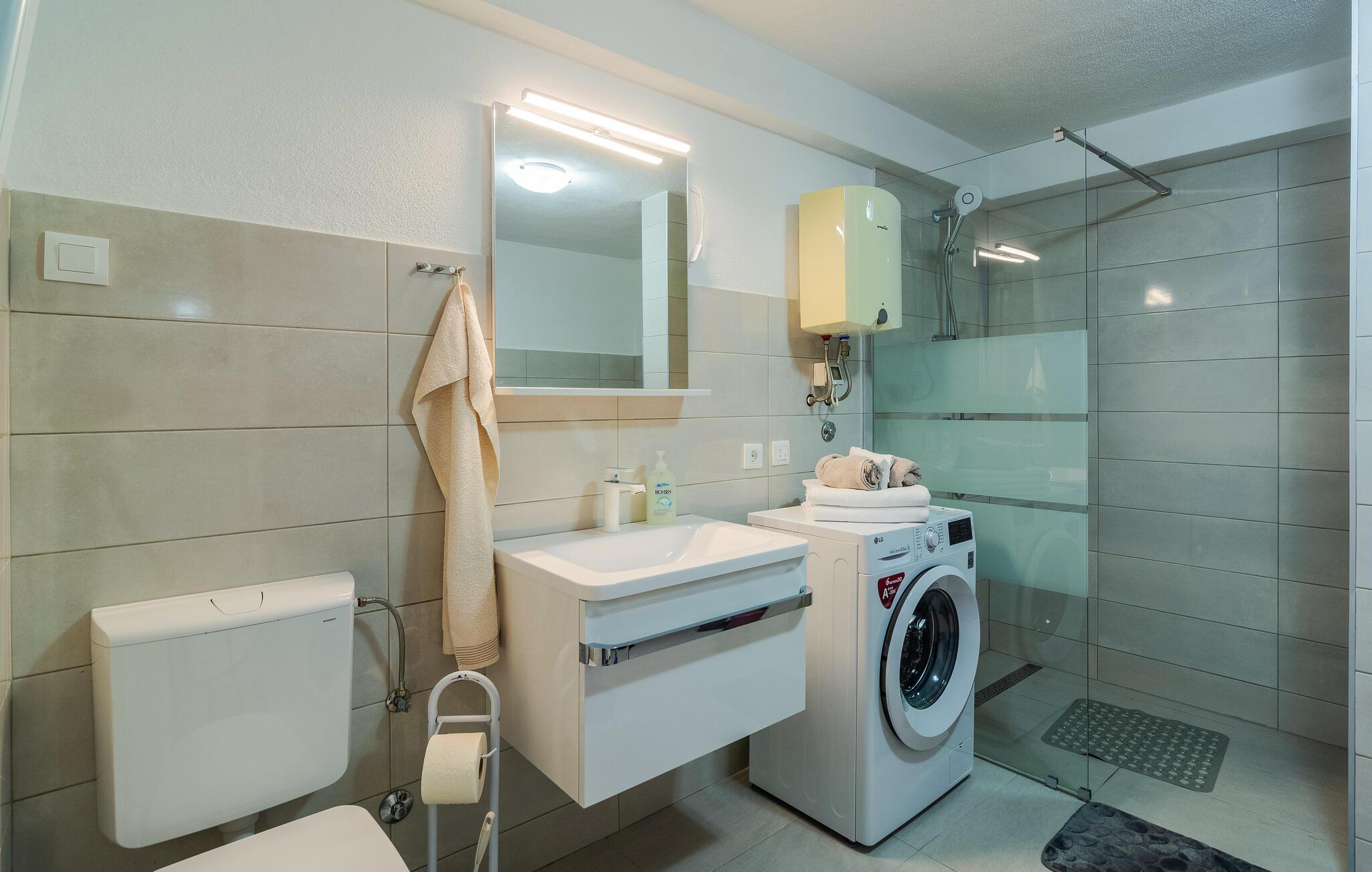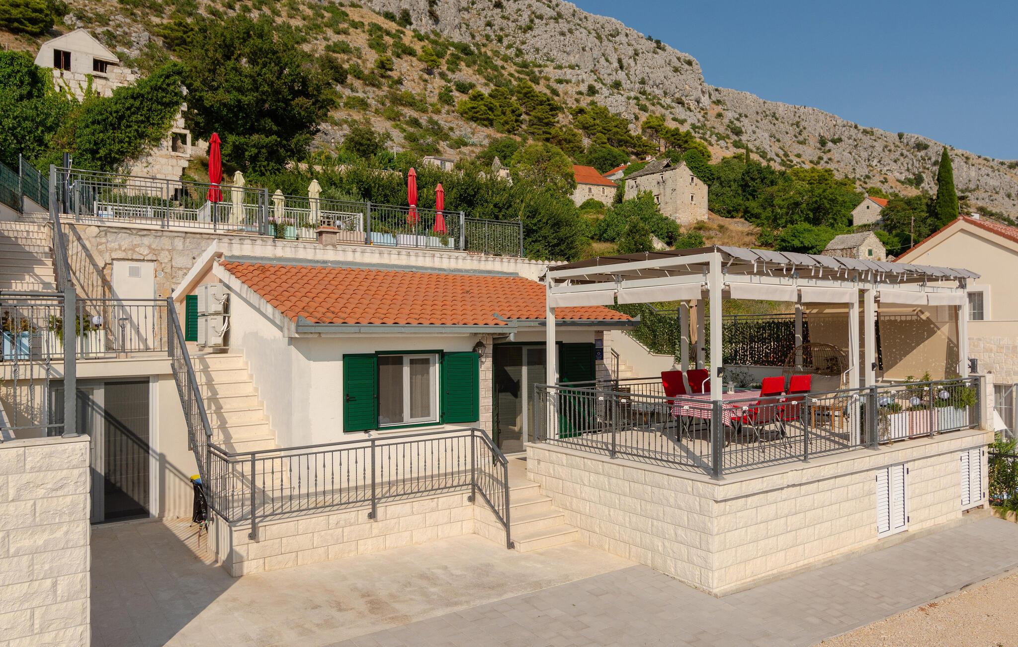 Jeres feriehus i Gornja Podstrana, kun en kort køretur fra Split, er det perfekte sted for en afslappende og varieret ferie for en lille familie. Nyd den moderne komfort samt den stilfulde og delvist rustikke indretning i huset. Sofaen i stuen indbyder til hyggelige filmaftener eller sjove spil med familien. I det hyggelige spisekøkken kan I tilberede lækre måltider.