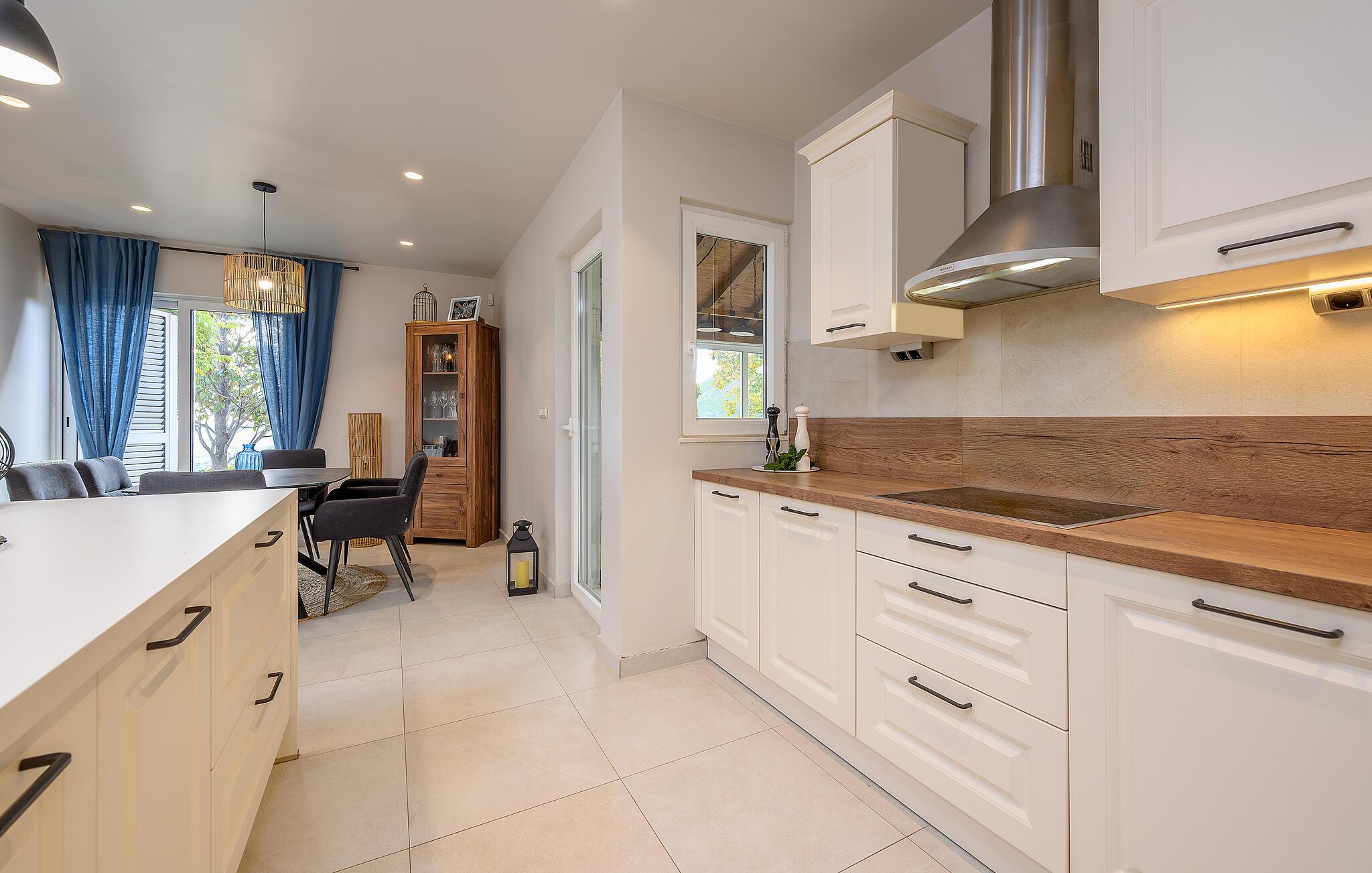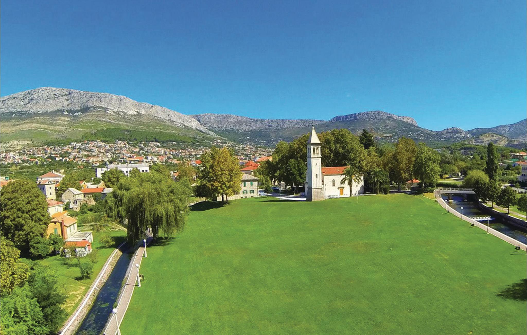 Villaen i Solin giver jer en utrolig oplevelse af det dalmatiske paradis. Beliggende på en bakke tilbyder den panoramisk udsigt over Adriaterhavet, øerne og den fascinerende by Split. I umiddelbar nærhed af denne luksusoase venter der jer smukke strande med krystalklart vand, ideelle til afslapning og solbadning. Også historieinteresserede vil finde deres interesse her, da der kun er få skridt til Diokletianspaladset, et af de mest imponerende romerske bygninger. Den gamle by Salona, det tidligere romerske centrum i Dalmatien under kejser Diokletian, tilbyder jer en unik arkæologisk oplevelse med ruinerne af et amfiteater, bade og et forum. Floden Jadro flyder stille gennem dette område og giver det en naturlig charme med sit klare vand og de grønne landskaber. Floden vil være en oase af ro og afslapning for jer og bidrage til en unik oplevelse, der forbinder historie, kultur og naturskønhed. Nærheden til seværdigheder som Klis-fæstningen og Marjan-skoven samt dagsudflugter til Krka Nationalpark, Plitvice-søerne og meget mere beriger jeres ophold.