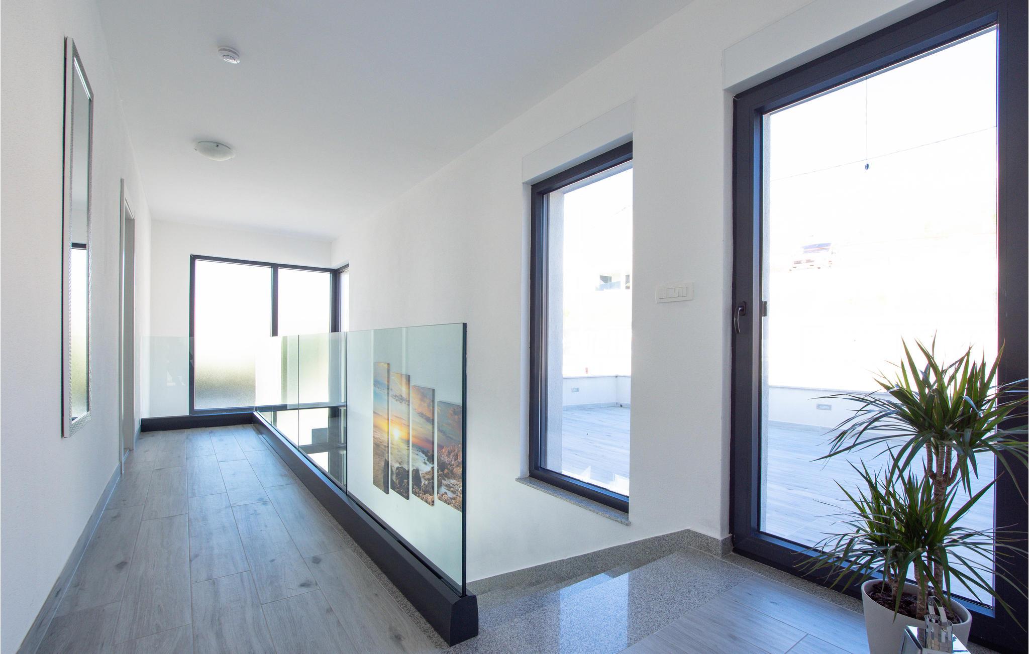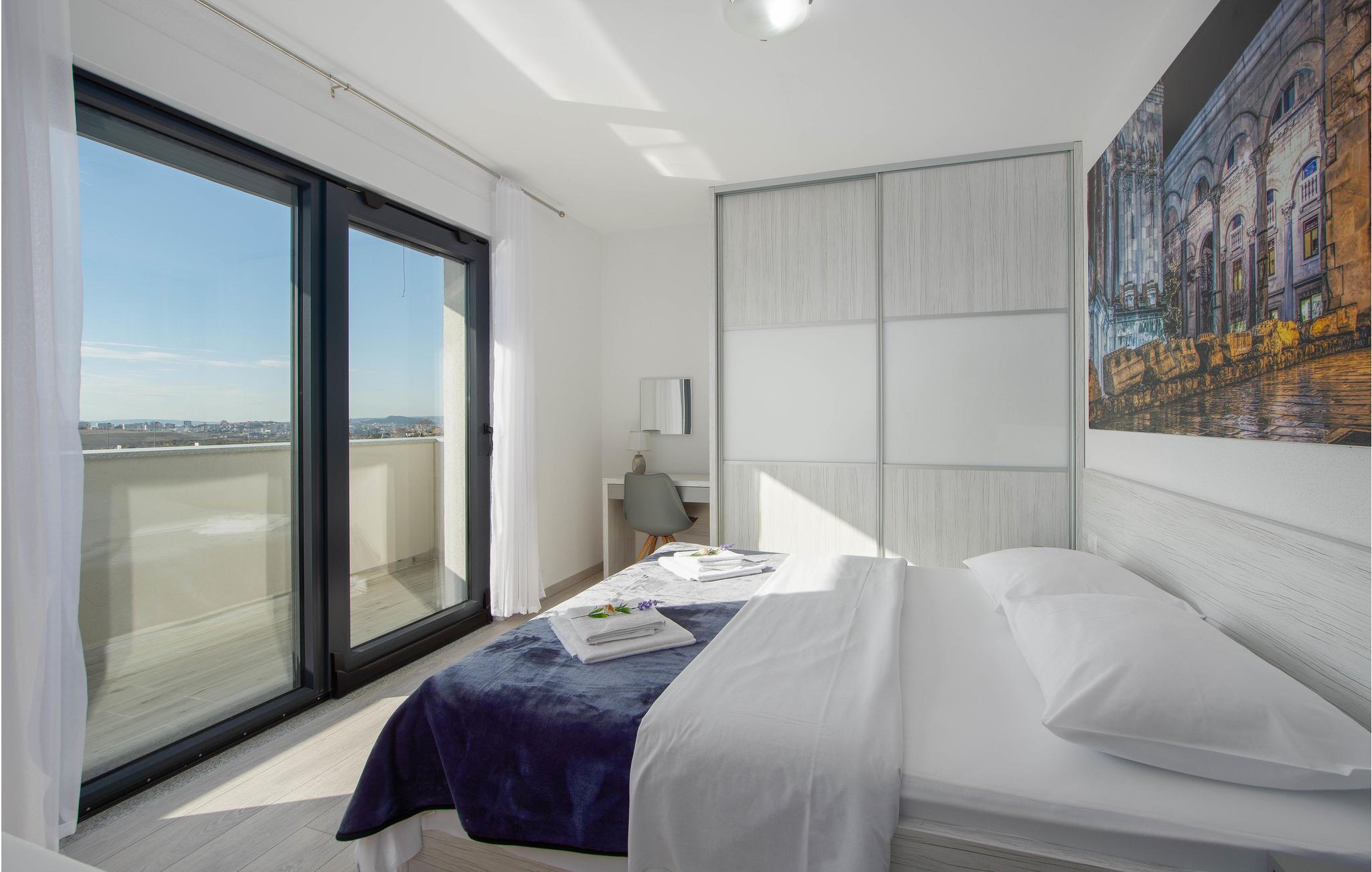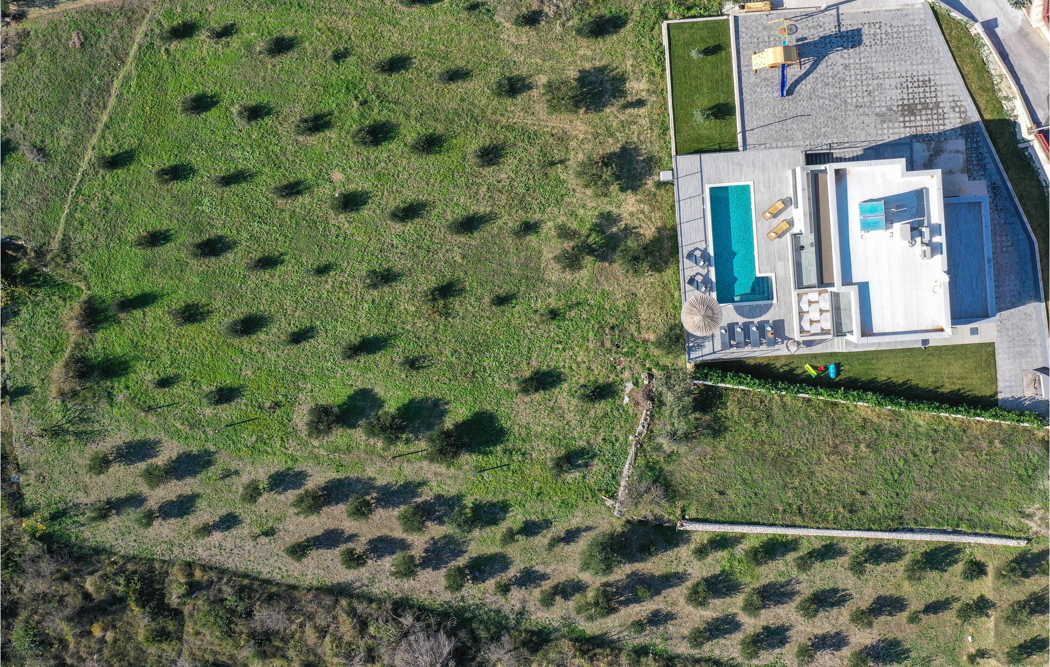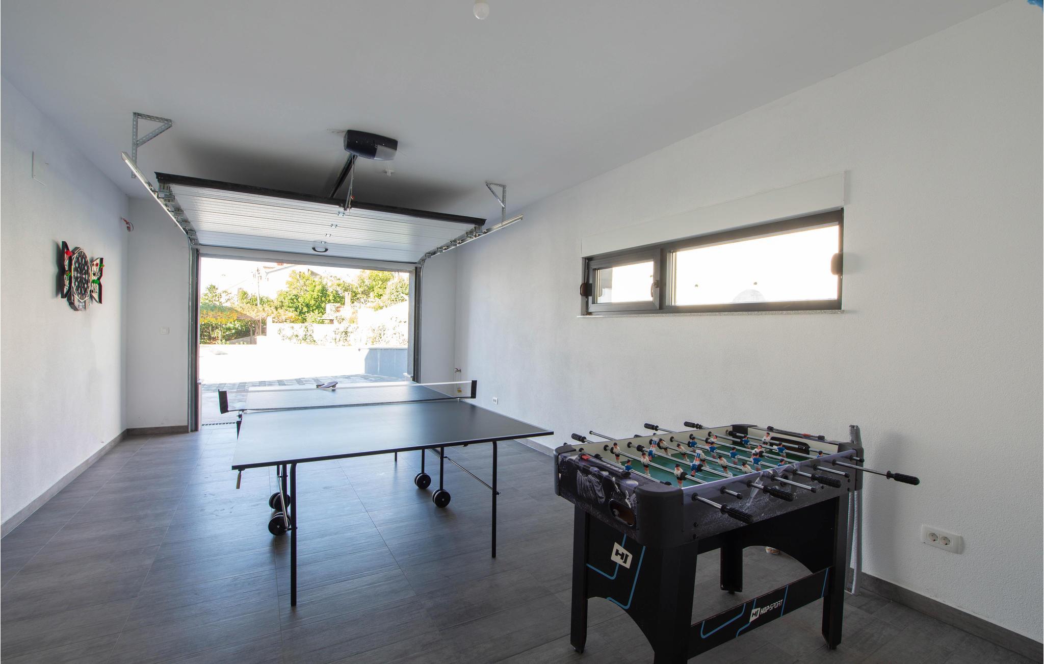 Dette moderne indrettede feriehus, ligger på en skrænt og herfra kan i nyde en panoramaudsigt over byen Split og Adriaterhavets mange små øer. Ud over de funktionelt indrettede værelser i huset kan I glæde jer over en stor have med en opvarmet pool med modstrømsanlæg. Huset rummer flere gode aktivitetsmuligheder som de fleste nok vil sætte pris på. Her er grill, bordtennis, bordfodbold, dart og legetøj for børn så som Playstation, gynge, legehus og trampolin. Ingen kommer til at kede sig her. På få minutter når I endda frem til verdenskendte historiske lokaliteter som Salona og Split, som begge rummer spændende bygningsværker og ruiner fra den romerske fortid.