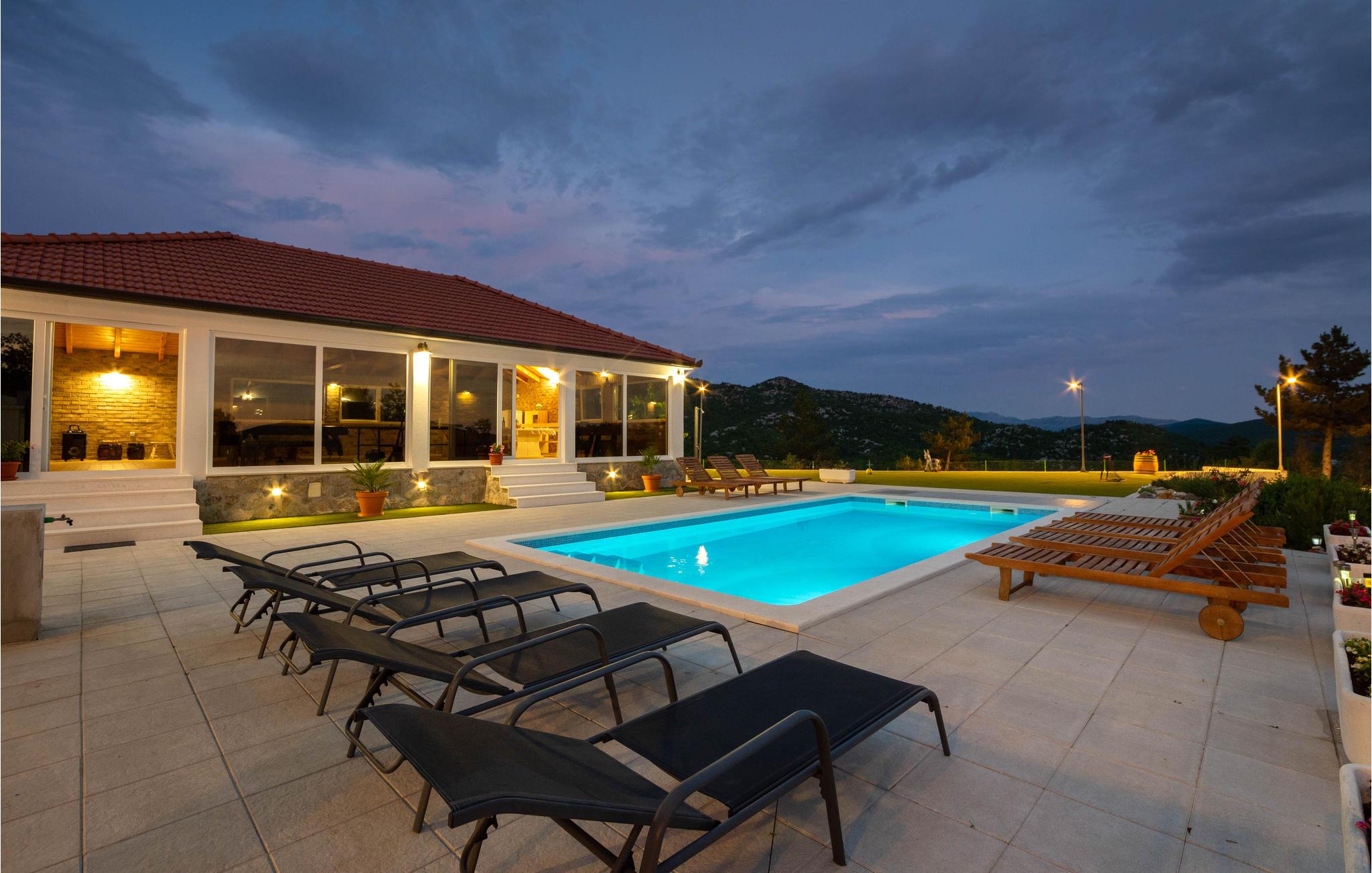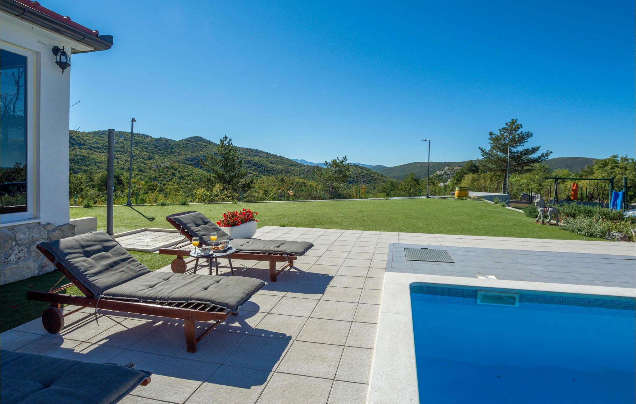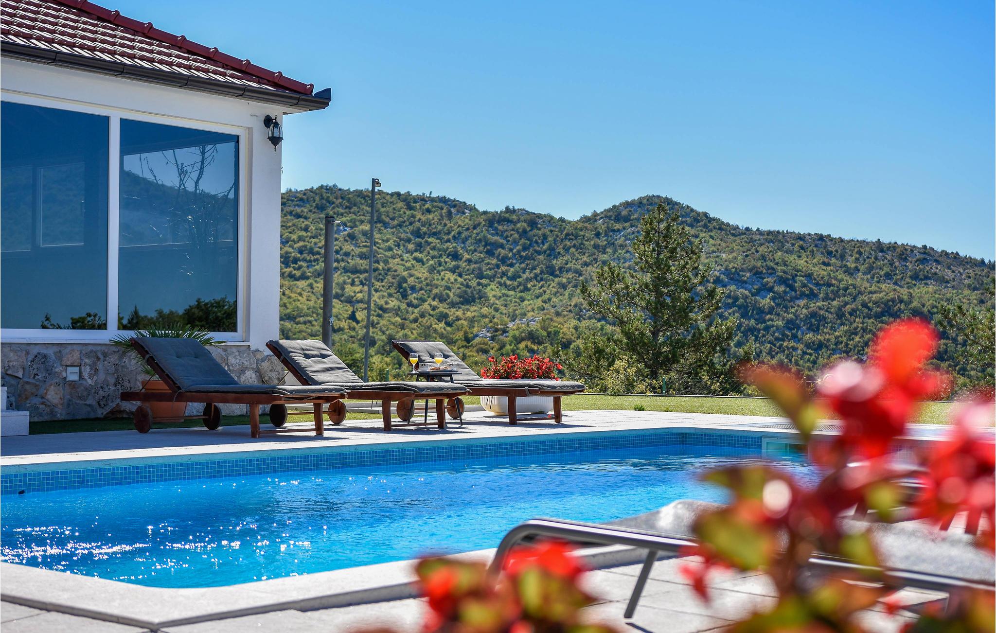 I det dalmatiske landskab tæt på Sinj ligger dette skønne feriehuse, som er omgivet af uberørt natur. Huset er ideelt til en behagelig familieferie og råder over tre etager, som er forbundet med en udendørs trappe. I underetagen ligger et køkken med stue og et soveværelse med eget badeværelse og separat indgang udefra. På første og anden etage finder I endnu to soveværelser og et køkkenal samt stue og badeværelse.