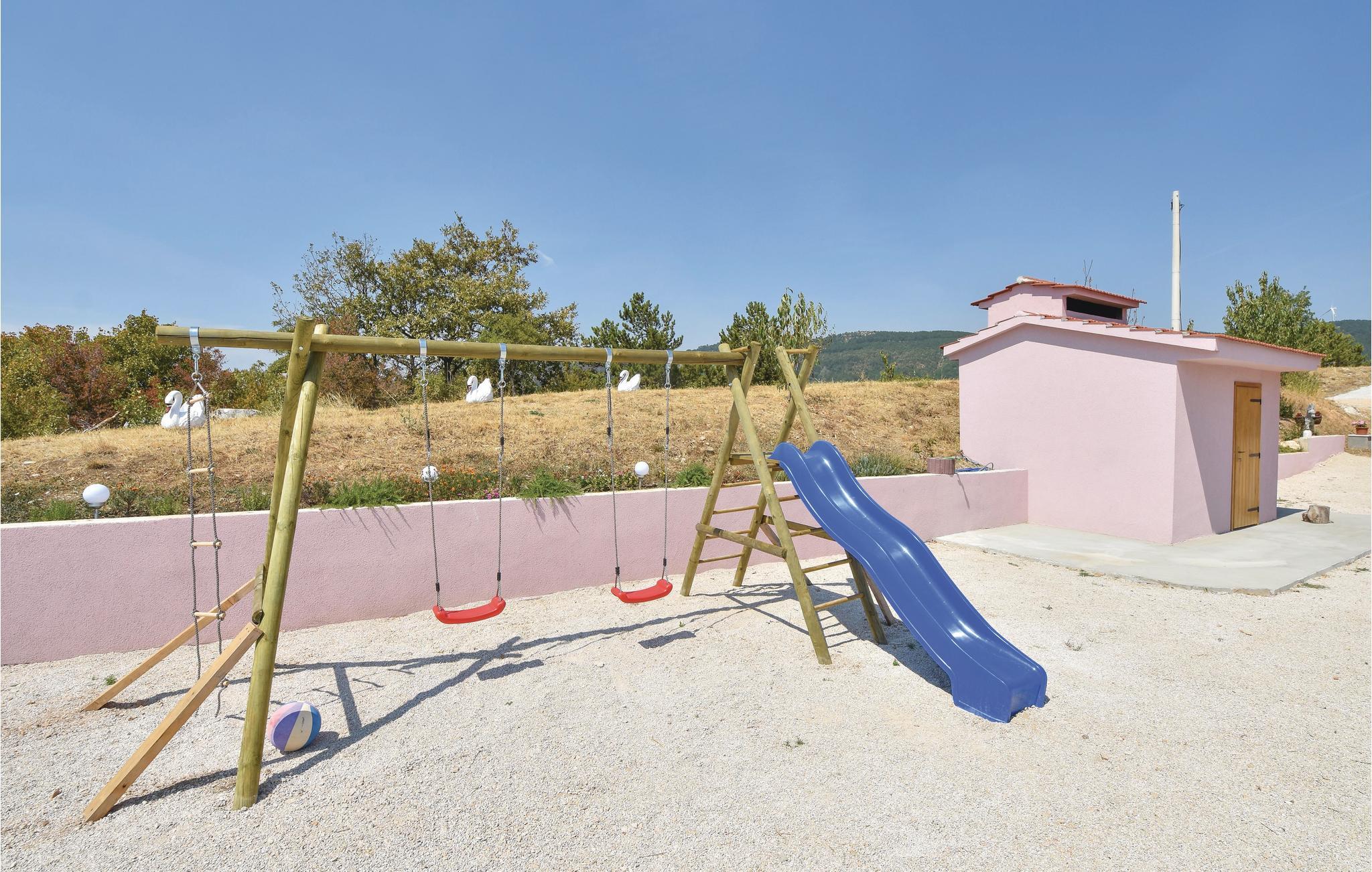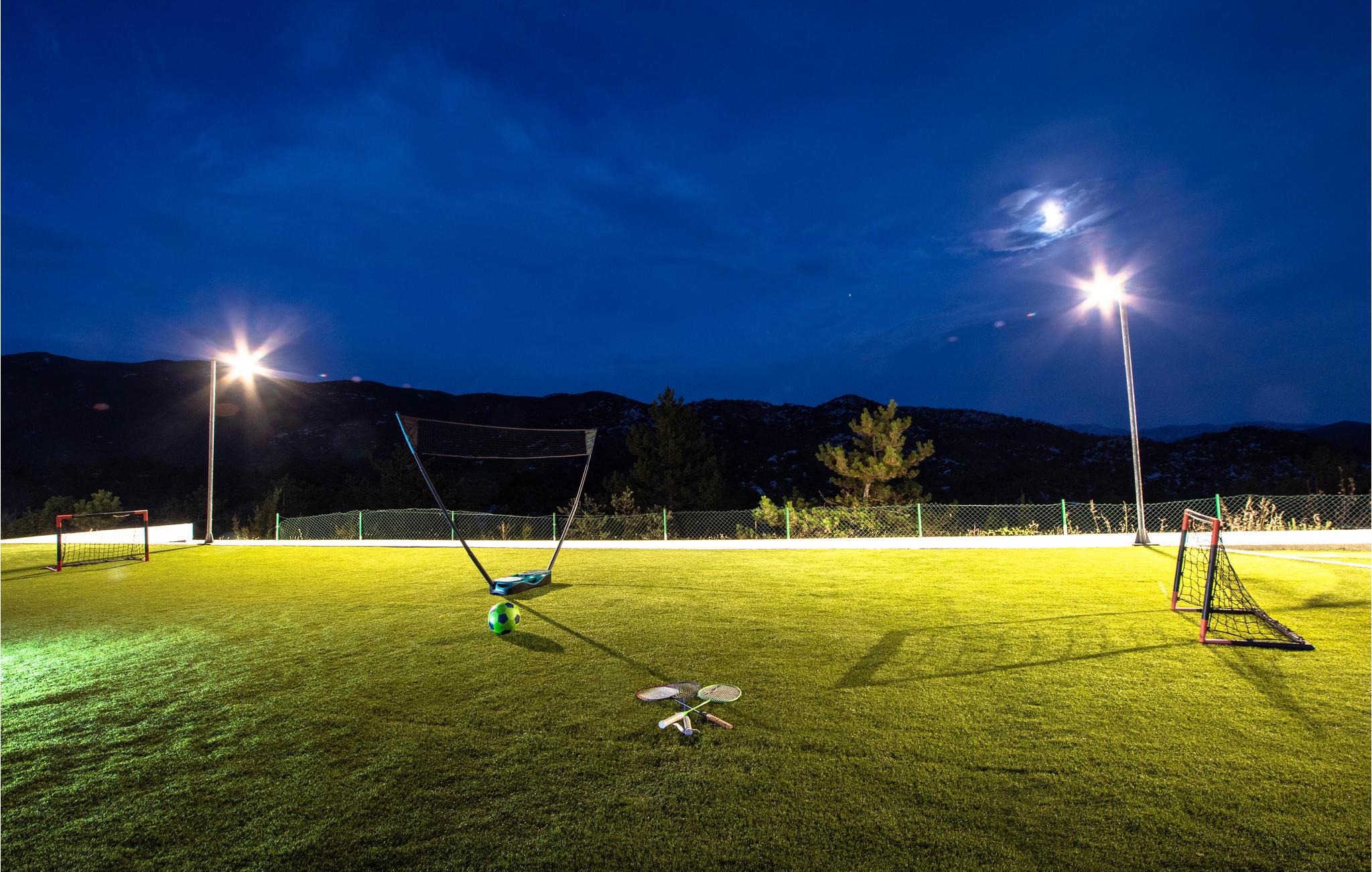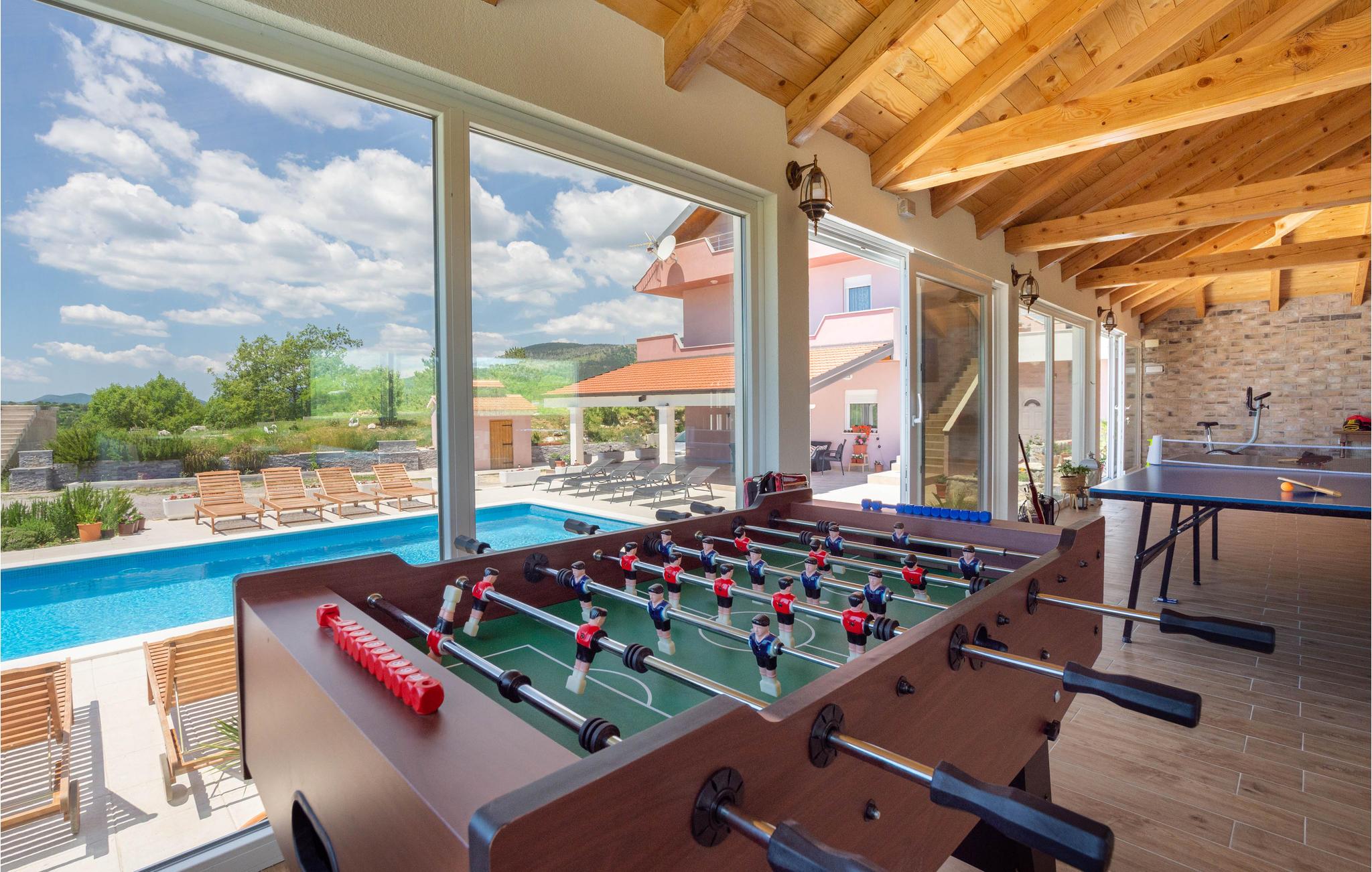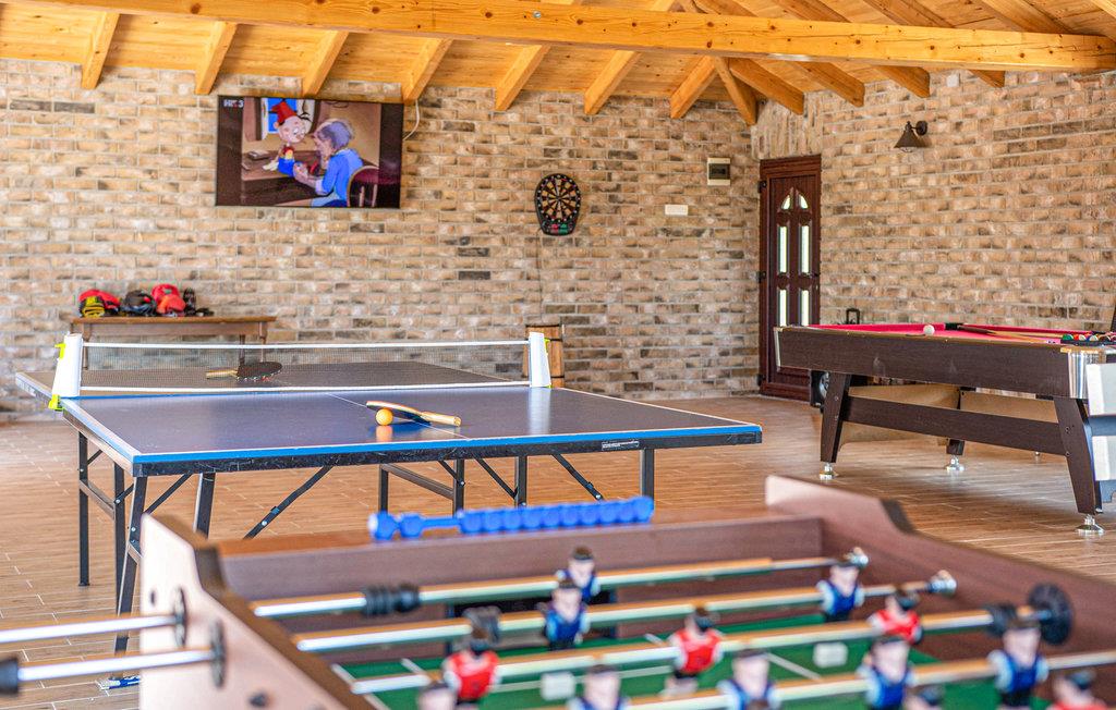 På grunden ligger yderligere to bygninger; den ene byder på sjov og underholdning, mens den anden har et udekøkken. Hvis I har brug for at blive kølet ned om sommeren, kan I hoppe en tur i poolen foran huset.