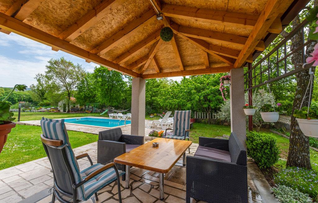 Dette nydelige feriehus med pool er omgivet af blomster, og er ideel til en afslappende ferie langt fra hverdagsstressen. Huset ligger på en stor indhegnet grund, hvor børnene kan lege frit, mens I slapper af ved poolen eller tilbereder lækkerier ved grillen. Opholdsrummene er adskilt fra soveværelserne, og har adgang til haven.