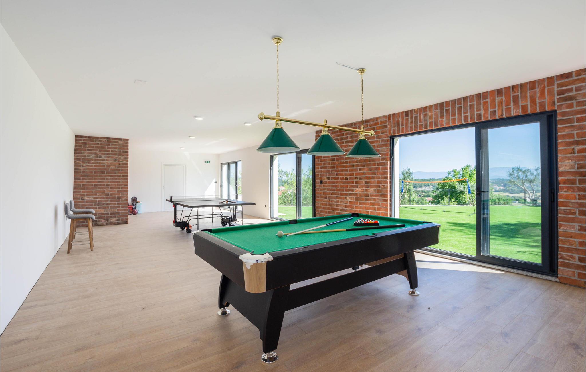 Det udvendige område er fantastisk. Uanset om det er på en af altanerne eller den store terrasse med swimmingpool og udendørs bruser, her vil I kunne slappe af på havemøblerne eller boltre jer i vandet. I stueplan finder I et indendørs underholdningsrum med pool- og bordfodboldborde og andre spil. Udenfor finder I en stor græsplæne, hvor I kan spille fodbold eller badminton. Fra alle niveauer har I en fantastisk udsigt over landskabet med bjergkæderne i horisonten.