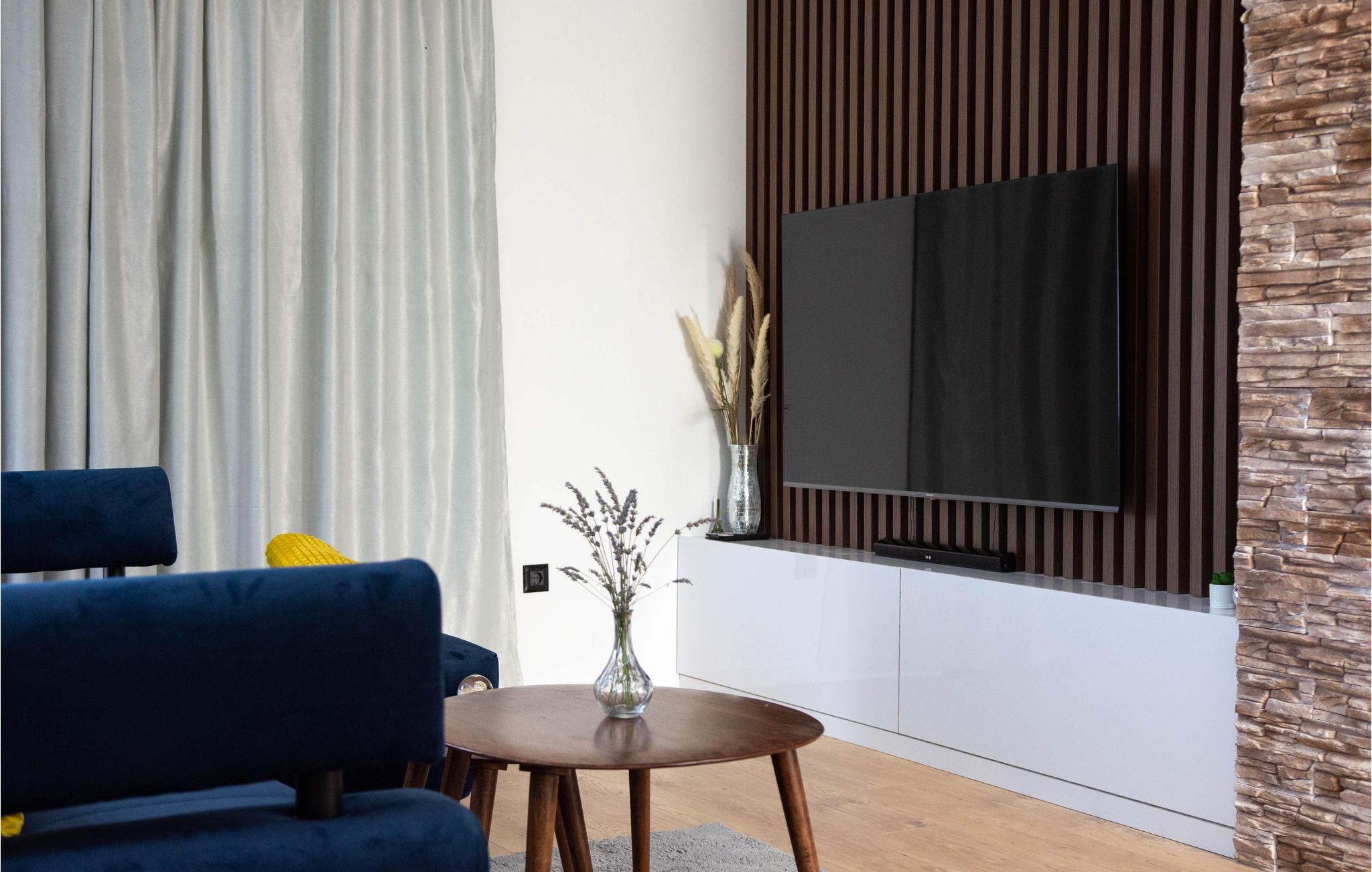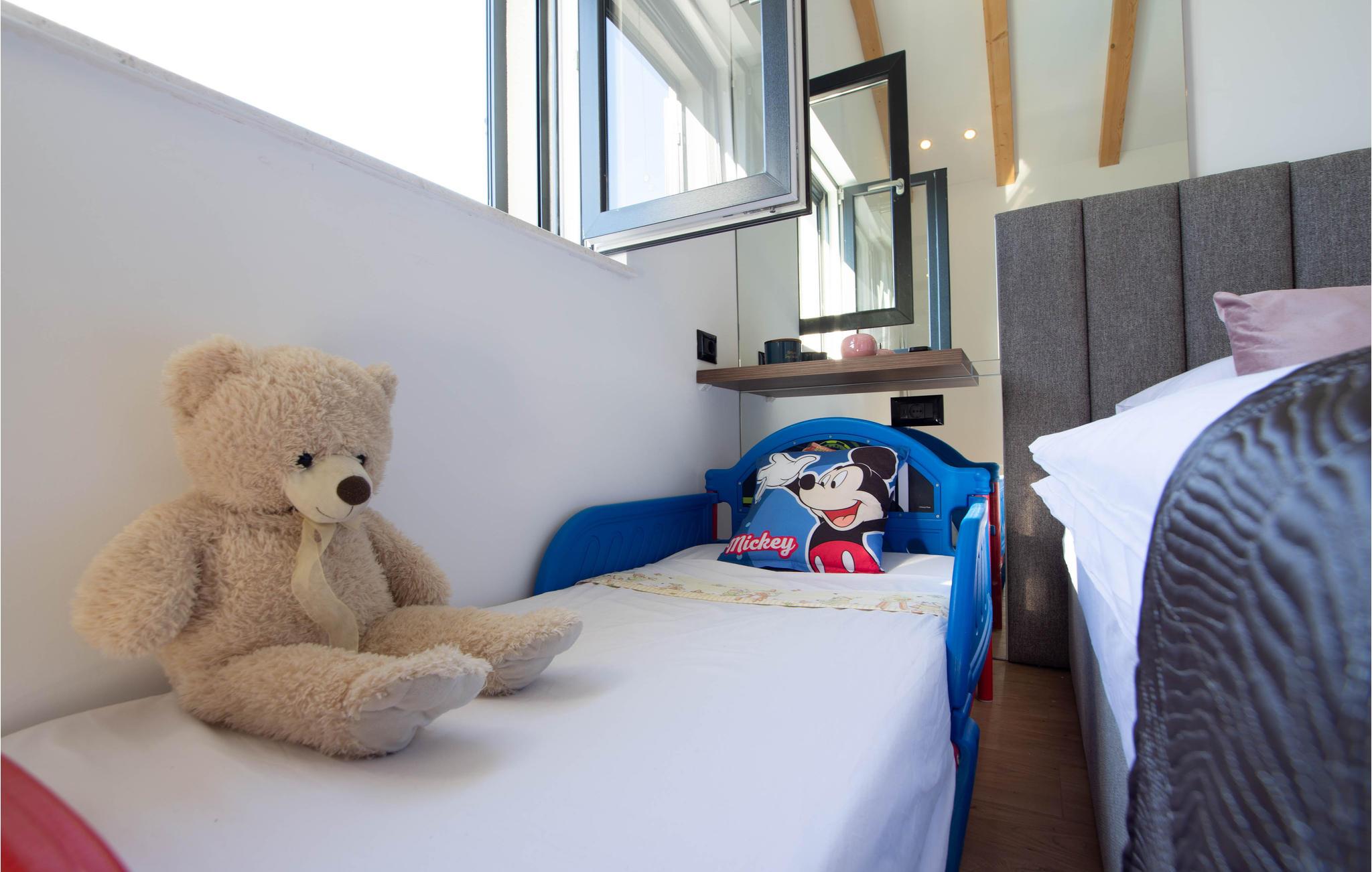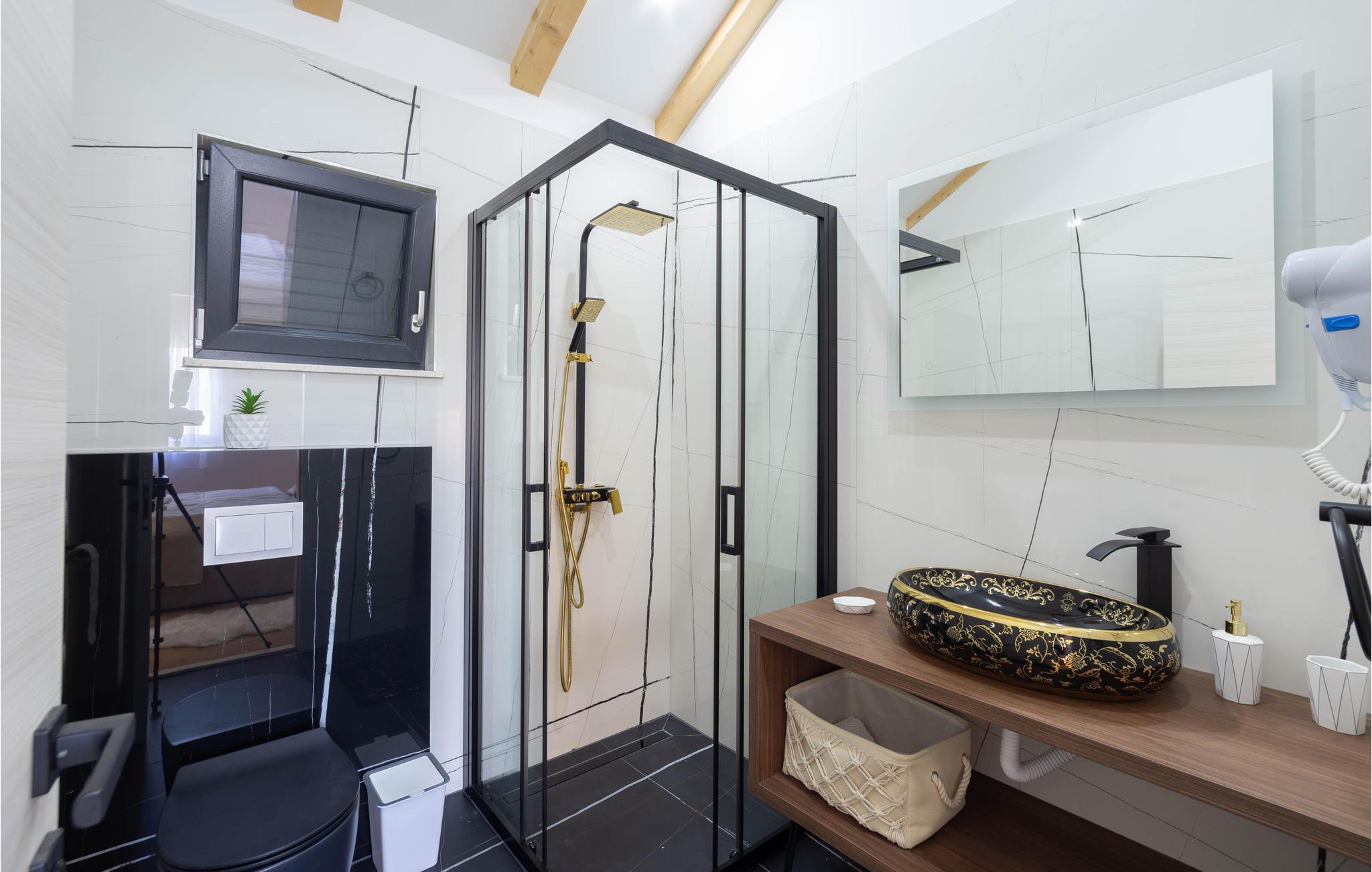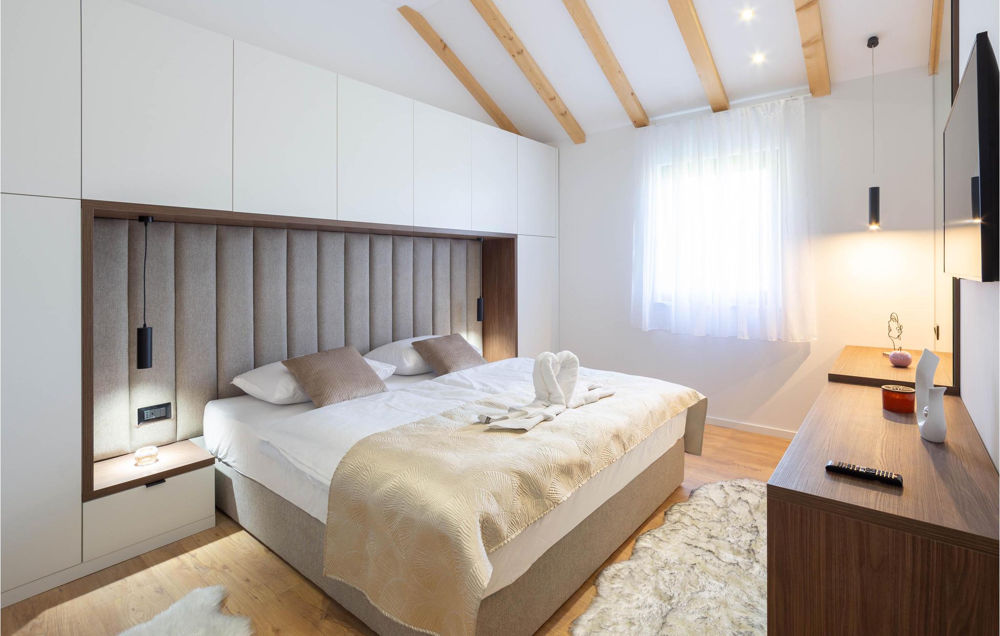 Denne luksuriøse ejendom tilbyder jer mange ting: masser af plads, moderne og smukt design, en fantastisk panoramaudsigt over det omkringliggende landskab og et udendørs område, der vil imponere jer. I kan også se frem til privatlivets fred på en ferie sammen med jeres udvidede familie eller flere familier, fordi soveværelserne og badeværelserne er spredt over flere niveauer. En smuk stue inviterer jer til at blive slappe af, lege eller bare hygge jer sammen. I det store, åbne køkken kan flere af jer tilberede måltider sammen og nyde hinandens selskab imens.