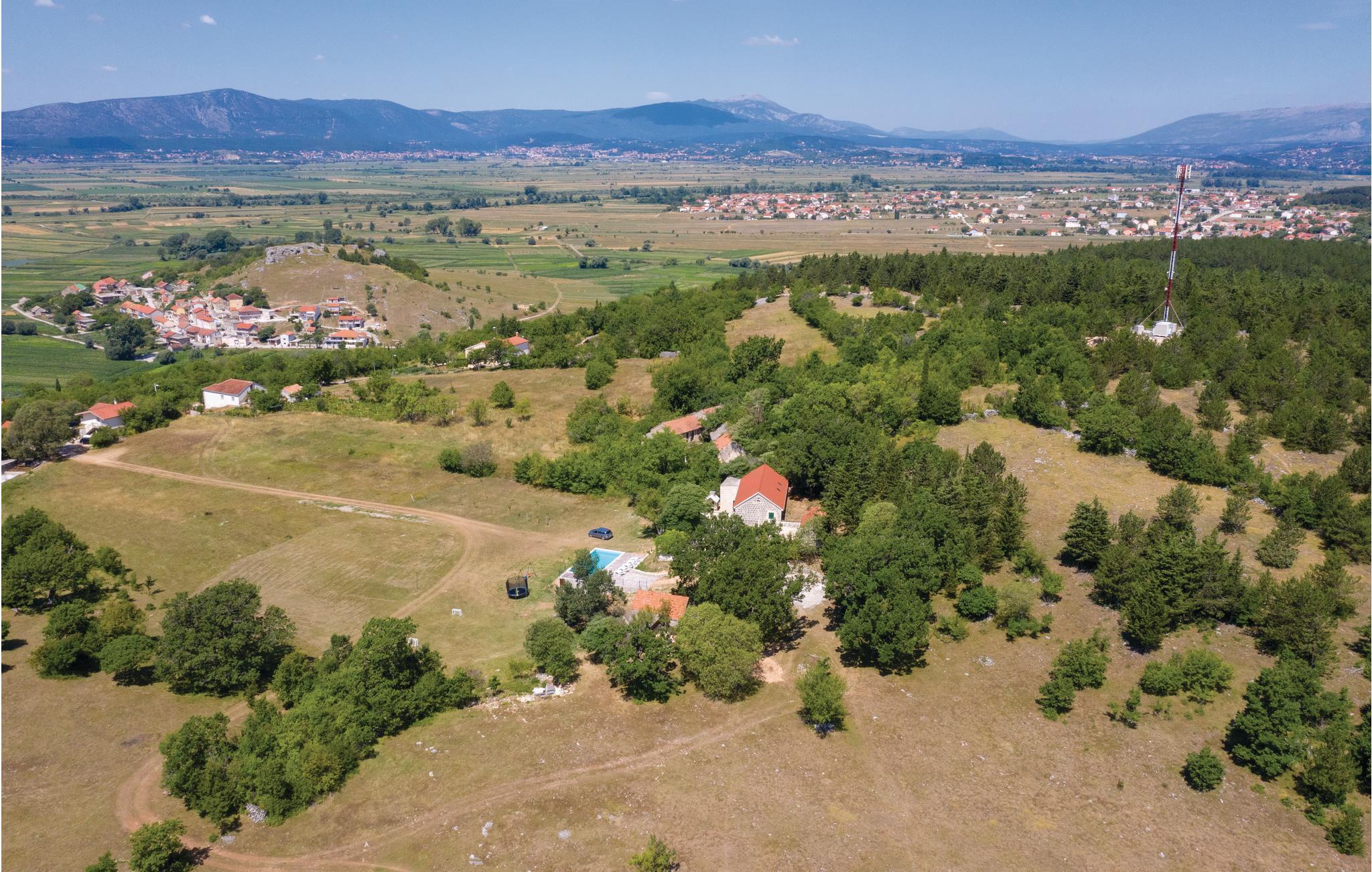 Dette smagfuldt indrettede feriehus med pool ligger på en åben, naturlig ejendom, som er omgivet af træer, enge og græsgange. Omkring det to-etagers hus er der flere terrasser. Naturen her er så ren og uforstyrret, at fuglene forårsager den eneste støj, der kan høres her. Terrassen med den store pool tilbyder en smuk udsigt over landskabet, som er ren idyl. De sidste 150 meter af vejen til huset er ikke asfalteret. Den nærliggende Cetina-flod giver mulighed for rafting-eventyr. Besøg byen Sinj (8 km) eller Kroatiens største kystby Split (40 km), hvor der er masser af kultur, caféer og restauranter at udforske.