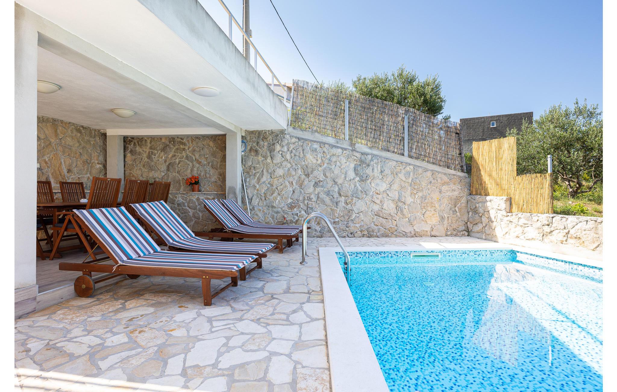 Hold en dejlig ferie i den lille by Podstrana. Den skønt indrettede ferielejlighed på to etager ligger i en familieejendom og er den eneste af husets lejligheder der udlejes til ferieformål. I stueplan er der to soveværelser, badeværelse og et køkken i åben forbindelse med stuen, mens der på første sal er et soveværelse, to badeværelser, køkken og en stue. Hop en tur i poolen når som helst, den bruges kun af jer. I vil få svært ved at rive jer løs fra terrassen hvor der er den mest betagende udsigt over havet. Tag en tur til både Omis og Split med mange former for underholdning og seværdigheder.