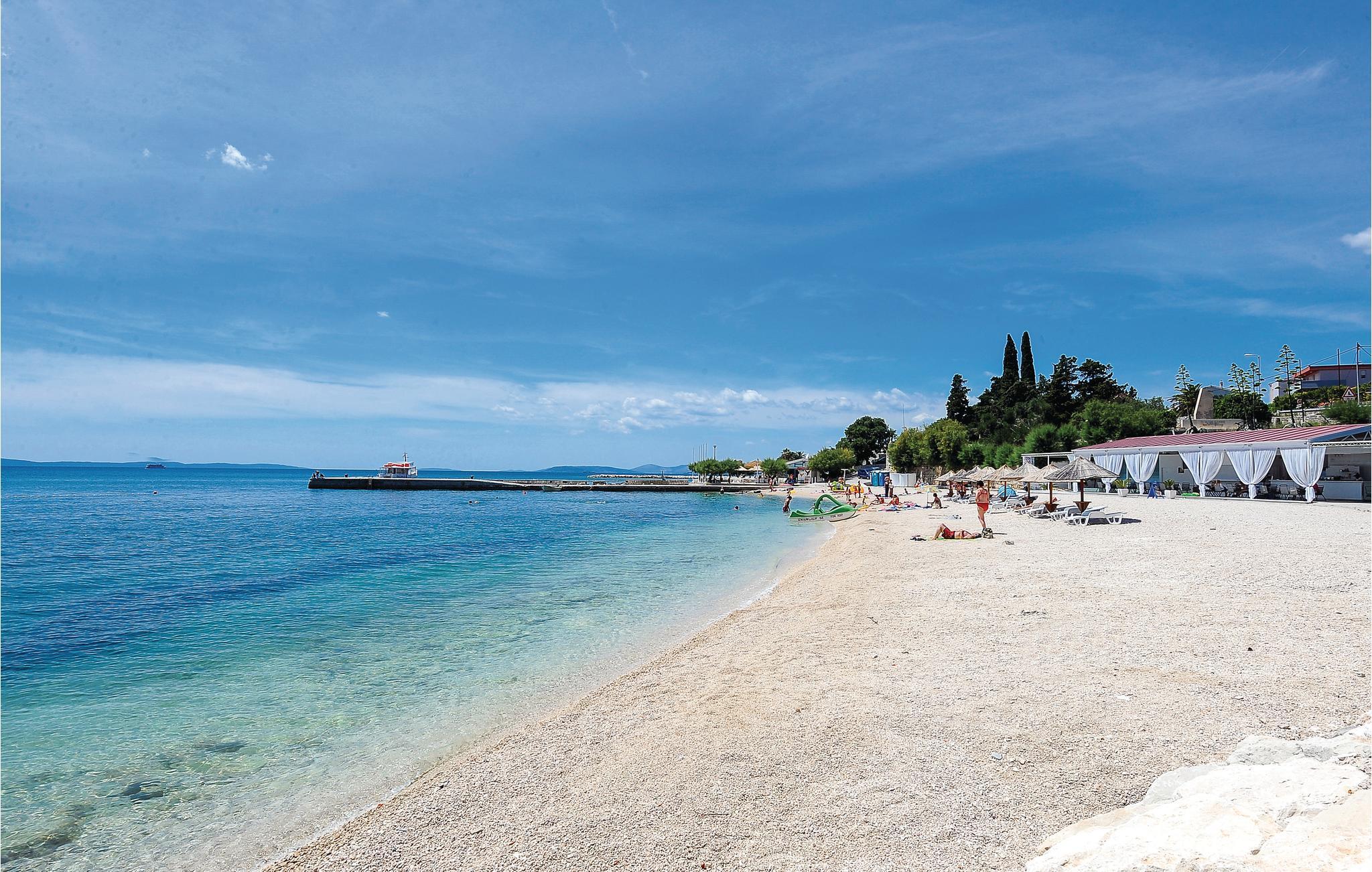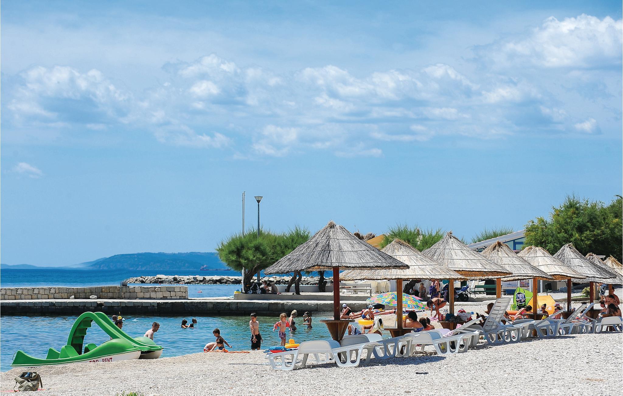 Denne ejendom ligger på en bakke og rummer to villaer med flere, adskilte lejligheder. I en villa er der fem lejligheder, hver af dem med to etager med soveværelser på øverste etage (laveste loftshøjde i siden: 1 m). Huset med lejlighederne ligger på en grund, der er forbundet med den anden del af grund med en bro. På den del ligger en villa med kun to lejligheder, forbundet med udendørs trapper. I stueplan bor husets ejer, der har separat indgang og parkeringsplads som sikrer jeres privatsfære. Husets ejer tager sig af bl.a. poolen med modstrømsanlæg. Ud over det godt udstyrede lejligheder er her en udendørs whirlpool, et bordtennisbord og fitnessrum. Der er internet i hele området omkring poolen. I det store fælles rum er der grill, hvor I kan tilberede lækre feriemåltider. Mod betaling kan I benytte boldbanen. Udflugter til øen Brac eller til Makarska, transport til og fra lufthavnen, dykkerskole i svømmehal – det hele kan aftales og betales til husets ejer på forhånd. Et skønt feriedomicil til en afslappet ferie med mange oplevelser til at tage med hjem i hukommelsen. Tag også til Split, Dalmatiens hovedstad, med dens talrige seværdigheder. Deriblandt er Diokletians Palads, Sankt Dujes Katedral og museer. I kan også opleve mange arrangementer og koncerter i løbet af sommermånederne. Den brede promenade med palmer langs siderne giver jer underholdning for enhver smag. Enten kikker i på fiskerne, mens de bøder garn, I går ind på en af caféerne for at hygge jer med en kop kaffe, eller I nyder en forestilling med musikerne og kunstnerne på gaden. I vil i alle tilfælde komme i feriestemning af den smukke havudsigt og solstrålerne. Snoet og stejl tilkørsel.
