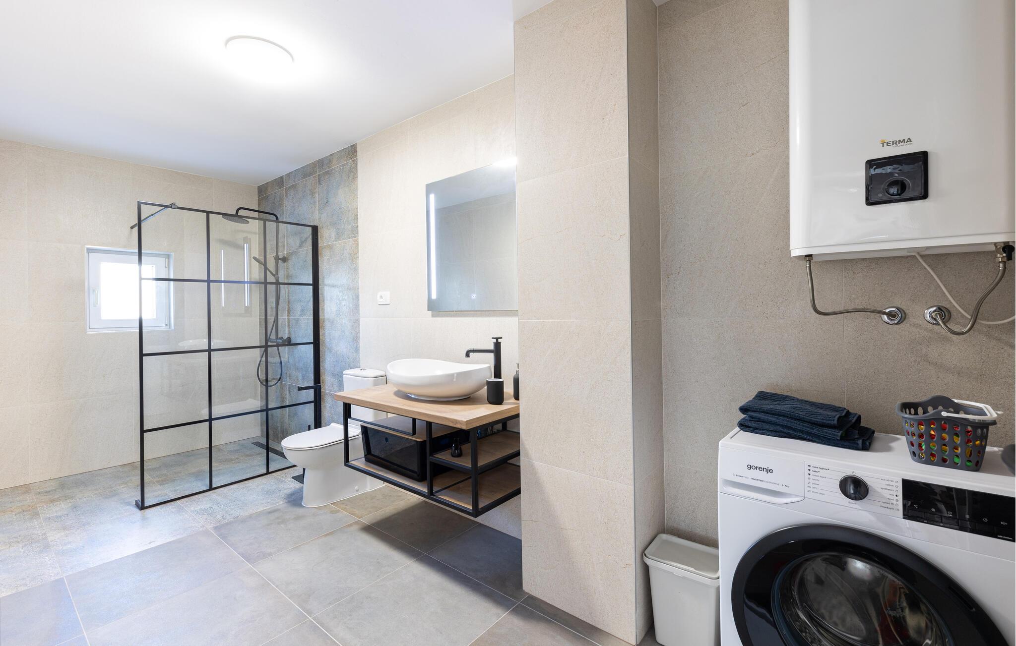 Jeres feriehus i Podstrana er det ideelle sted for en afslappende og underholdende ferie. Det store hus har plads til to familier eller en større gruppe venner, der ønsker at rejse sammen. Nyd den moderne komfort i huset og slap af i de rummelige værelser. Den stilfulde opholdsstue med den store hjørnesofa indbyder til hyggelige aftener foran fjernsynet eller med sjove spil.