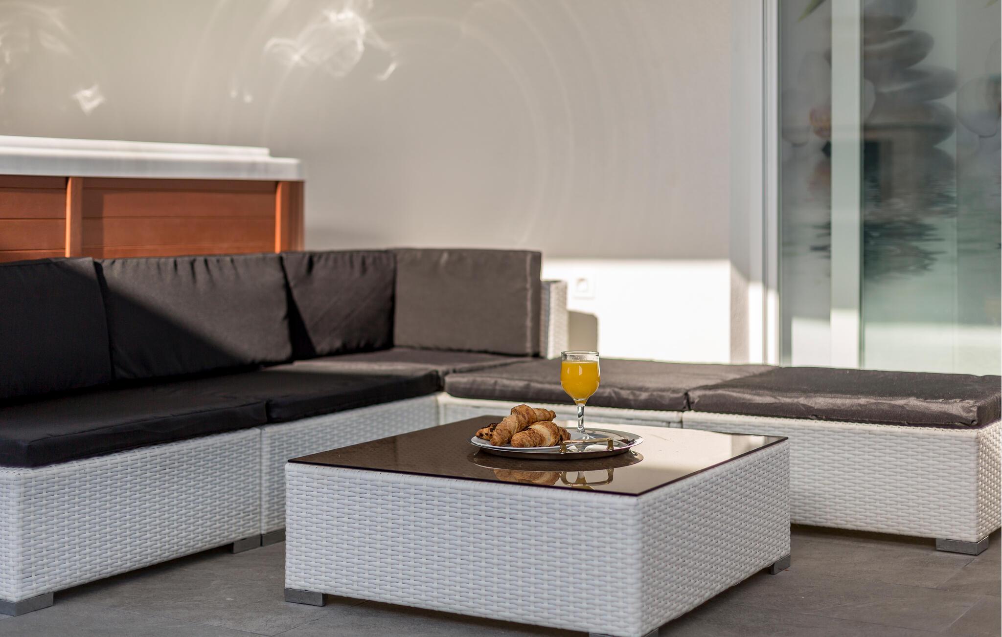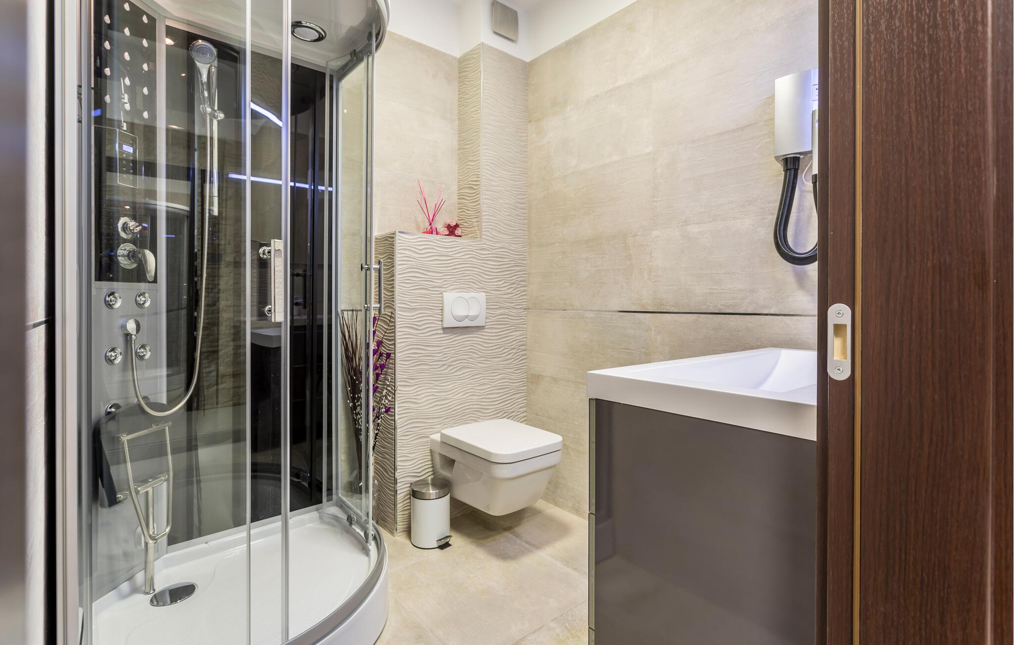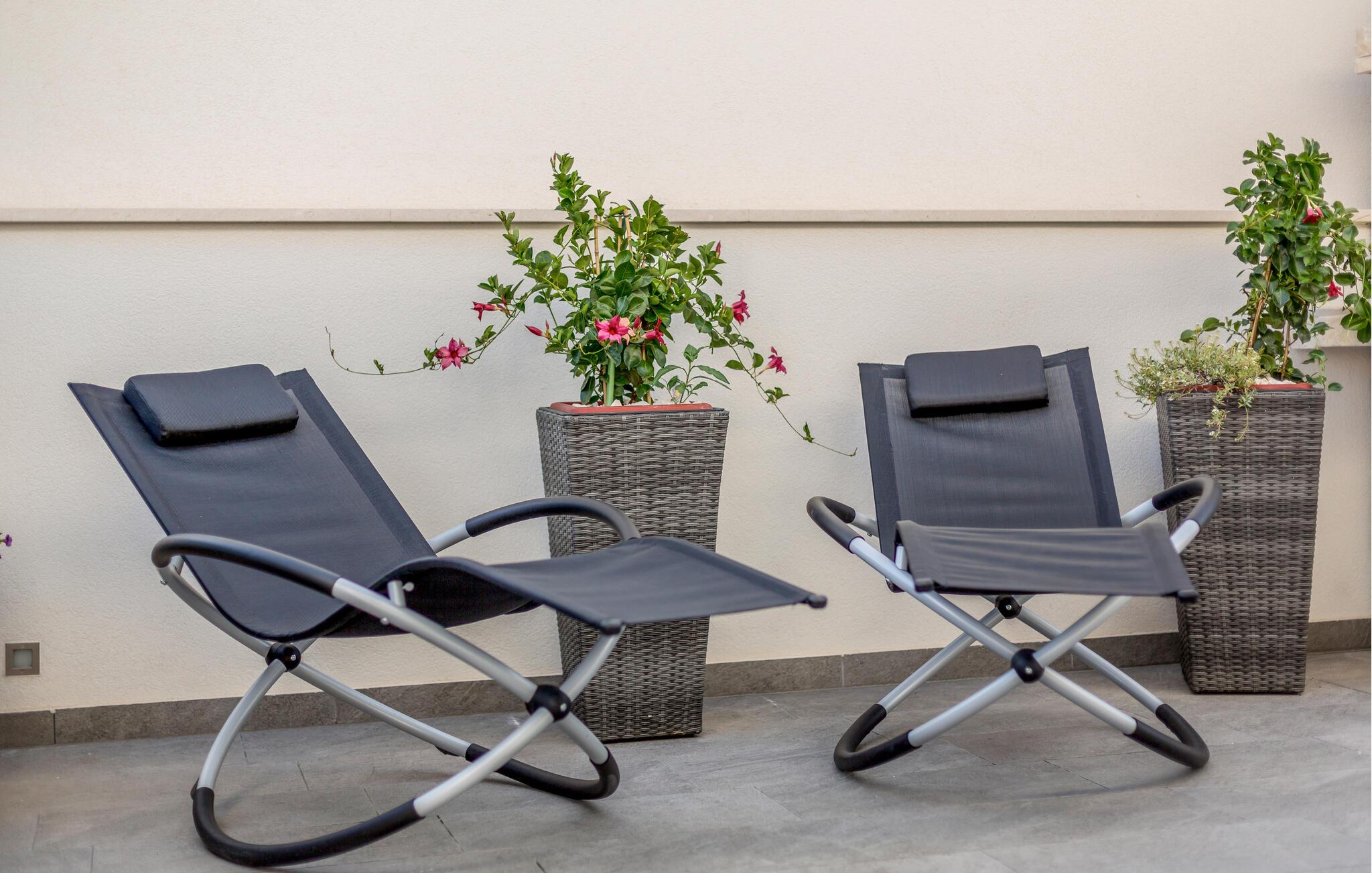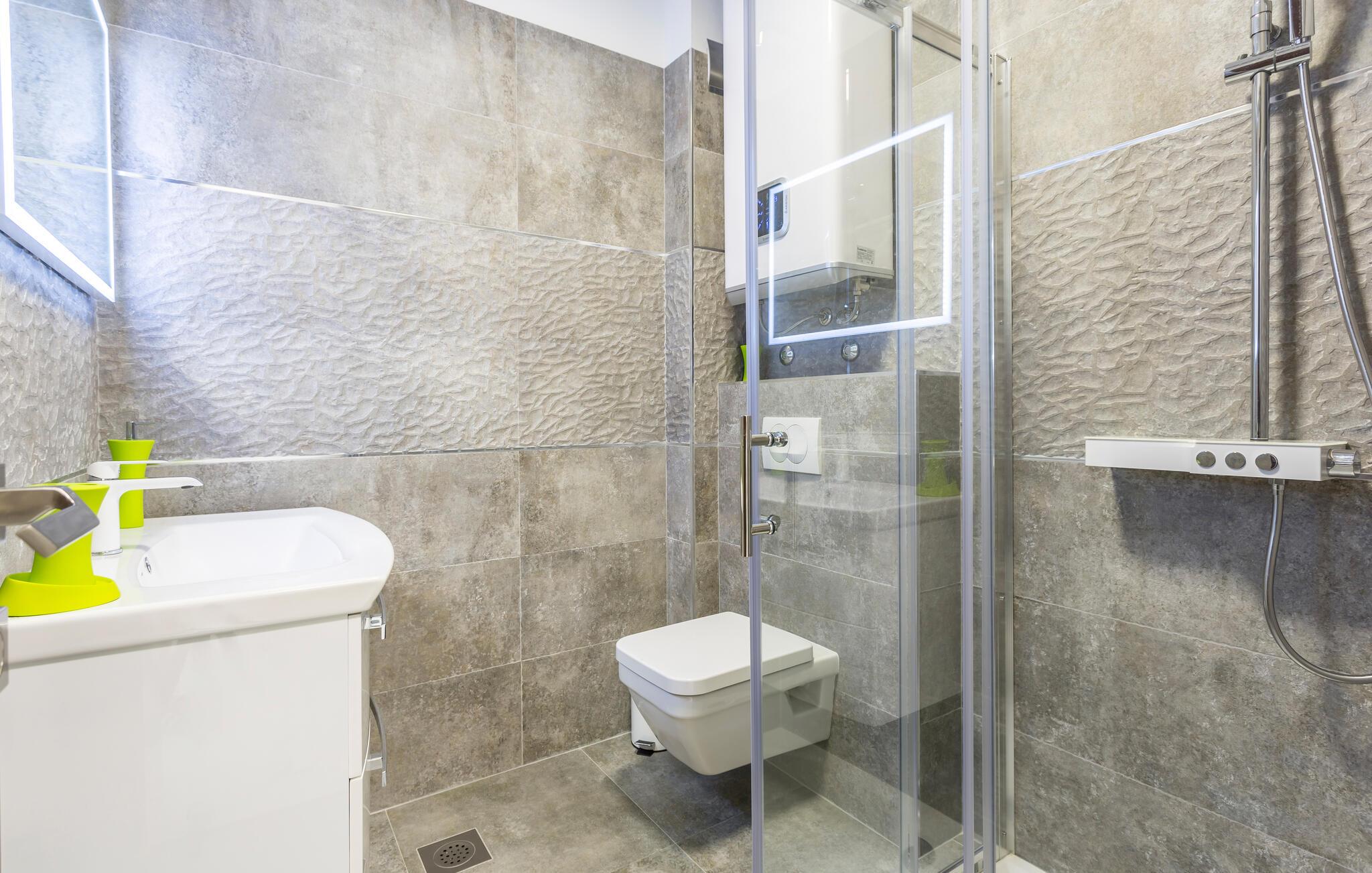 Forestil jer at vågne op i en luksuriøs lejlighed udstyret med alt hvad hjertet kan begære. Flere elegante soveværelser, et privat fitnesscenter og et afslappende spabad - alt sammen kun en kort gåtur fra den maleriske Strozanac-strand. Her kombineres stilfuld indretning og moderne design for at skabe et harmonisk ferieområde. Den rummelige terrasse giver jer de perfekte rammer til fuldt ud at nyde Middelhavets sol og grillaftener.