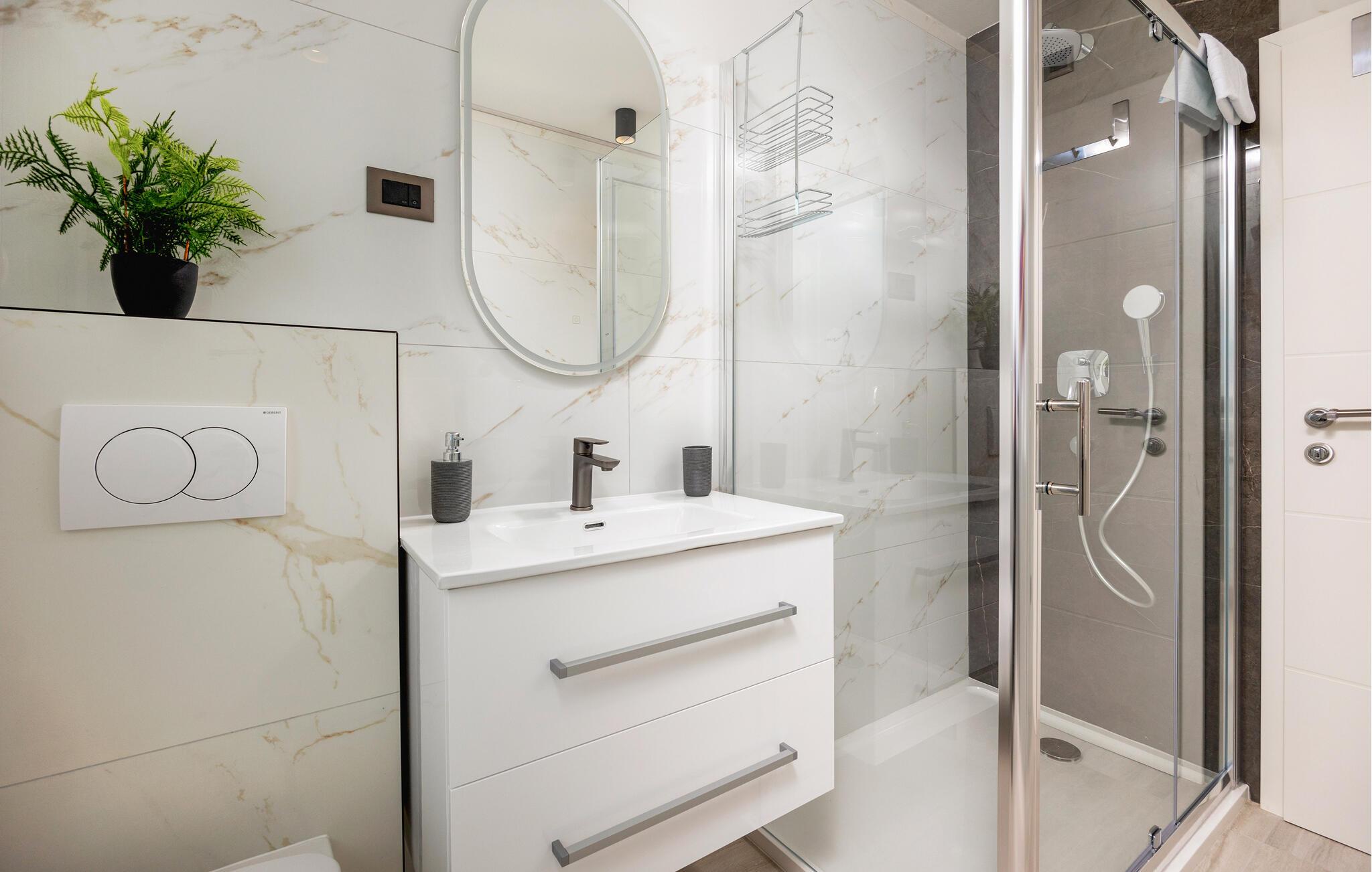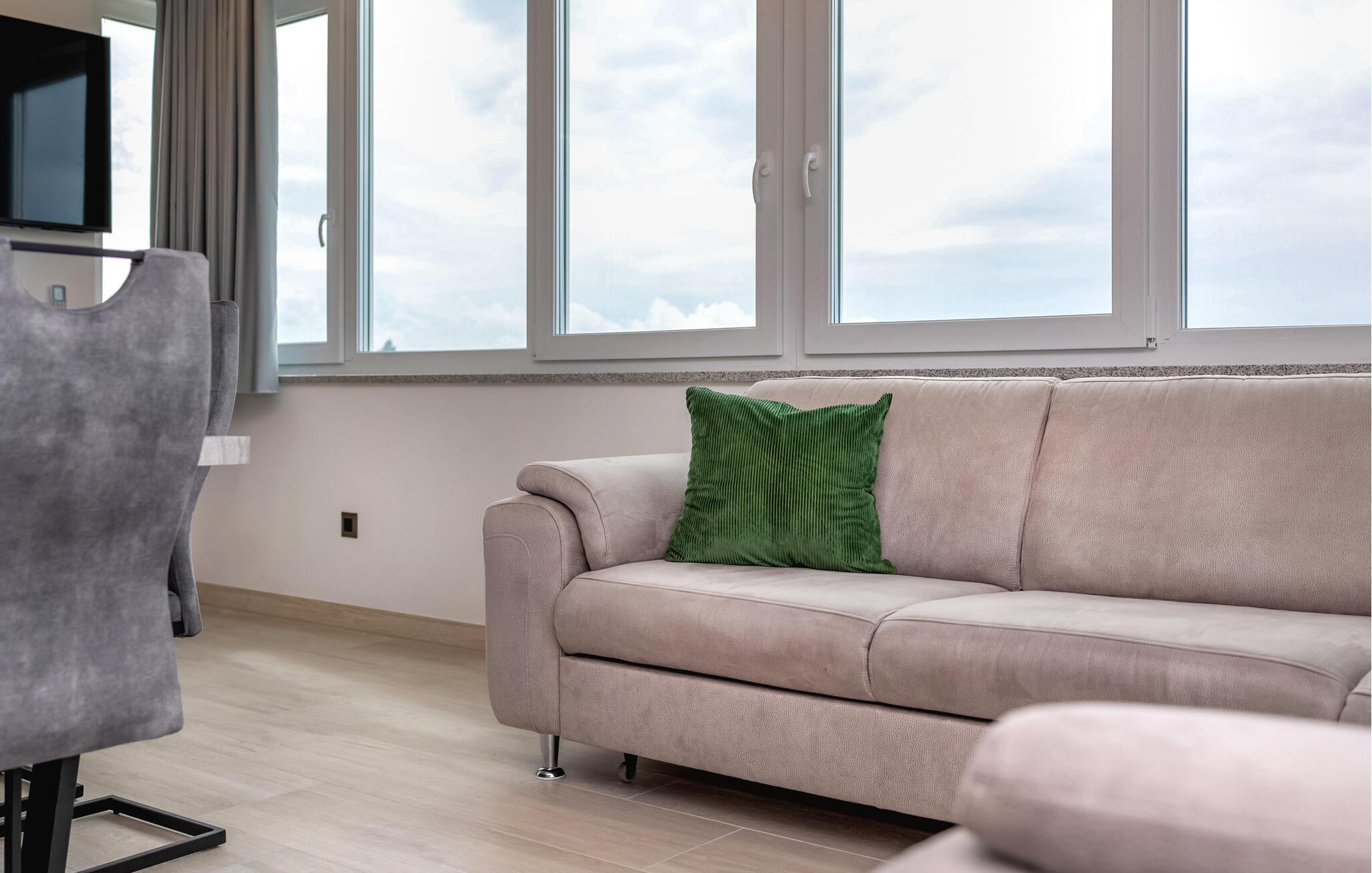 Velkommen til denne lyse, moderne ferielejlighed, som straks får jer til at føle jer hjemme med sit smagfulde og indbydende design. Ejendommen er ideel til en familie og byder på et komfortabelt interiør og en stilfuld atmosfære. De mange vinduer giver jer mulighed for at se ud over byen, kysten og havet, mens I laver mad, spiser og slapper af på sofaen.