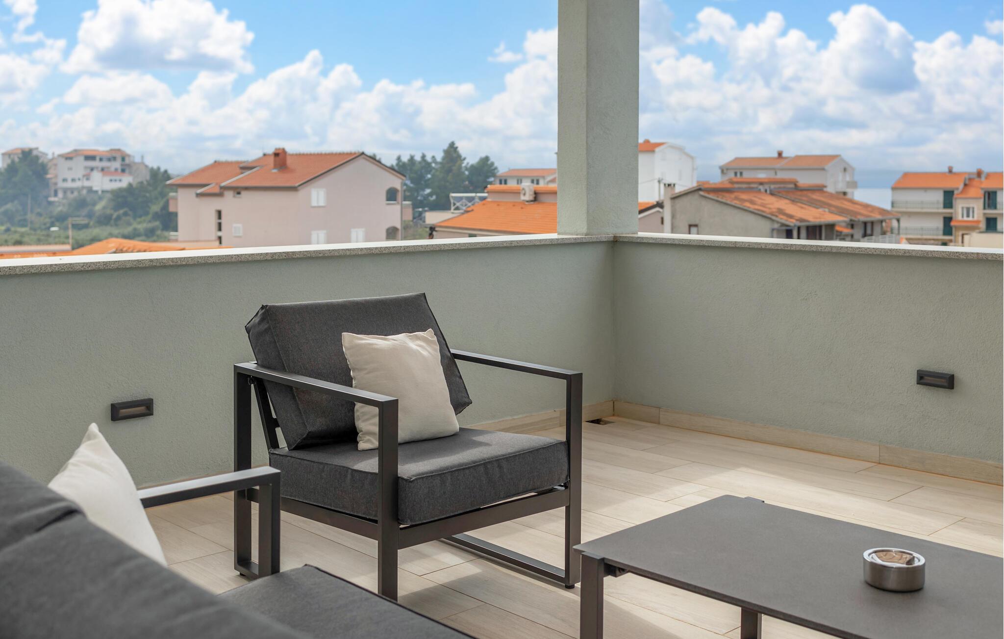 Nyd jeres ophold i denne skønne ferielejlighed med tagterrasse, havudsigt og fælles pool.