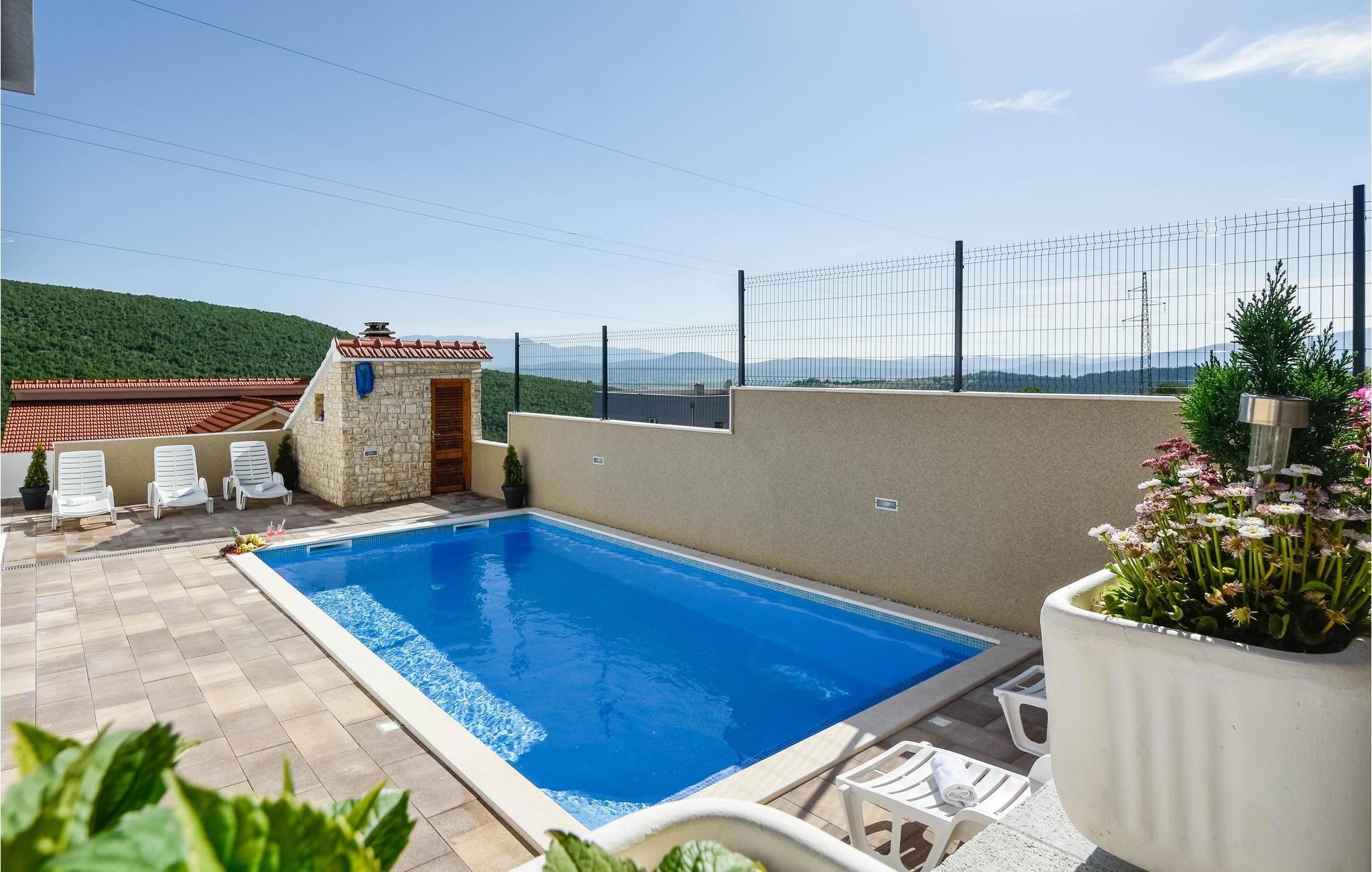 Hav en fantastisk tid i denne moderne ferievilla med smuk udsigt over landskabet. Føl jer godt tilpas i de veludstyrede og stilfuldt møblerede værelser og nyd en behagelig pause væk fra hverdagens stress. Her kan I slappe skønt af og nyde livet. Køkkenet og stuen er rummelige og komfortabelt indrettede. Frem for alt vil I tilbringe meget tid udendørs. I kan forfriske jer selv i poolen når som helst på dagen og derefter solbade på liggestolene. Om aftenen kan I se de fortryllende solnedgange, mens I forbereder en lækker grillmiddag på stengrillen. Her kan I hygge jer rigtig godt.