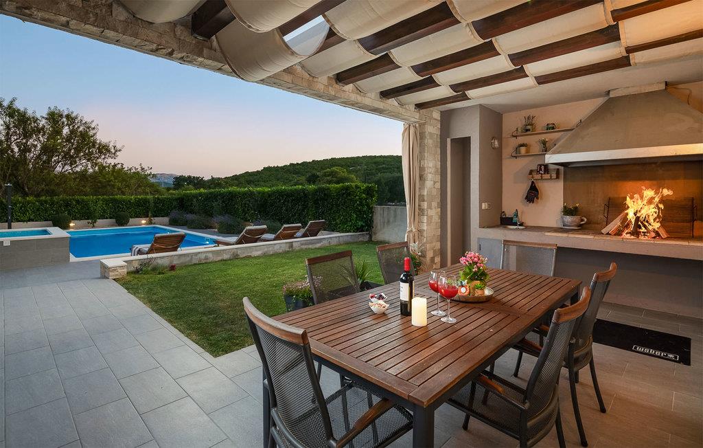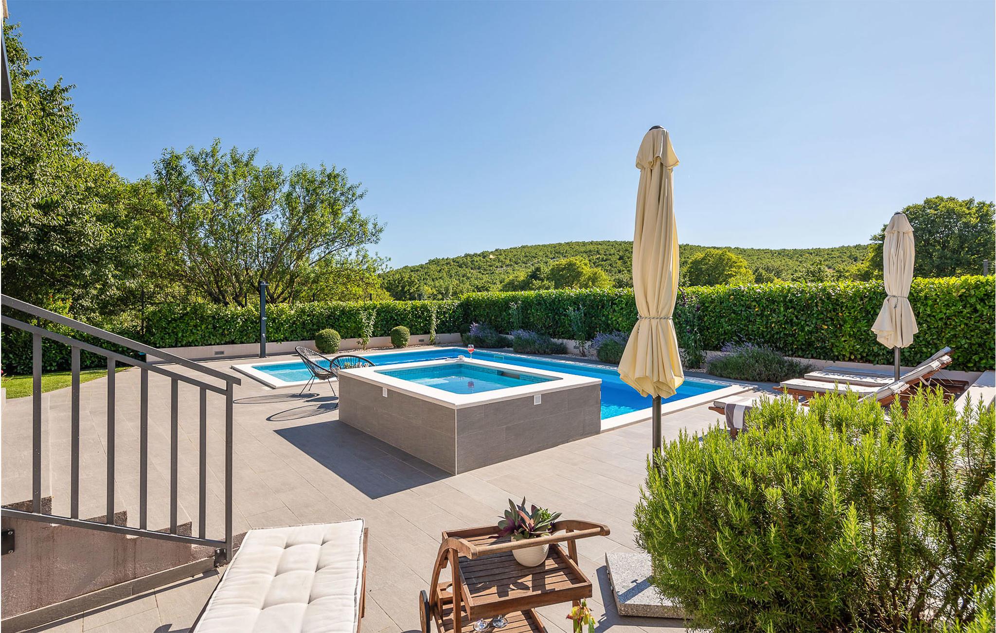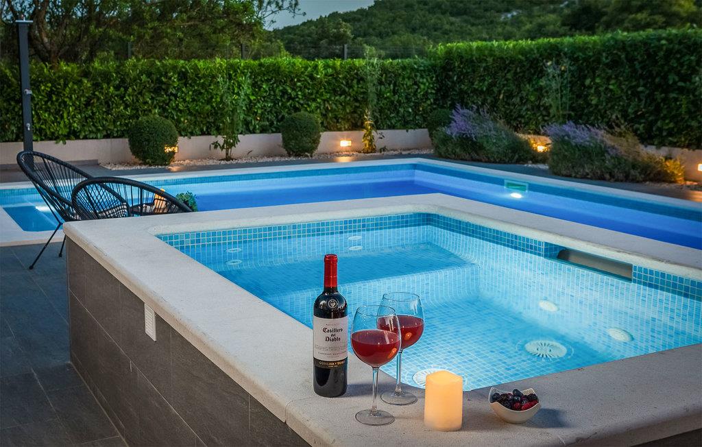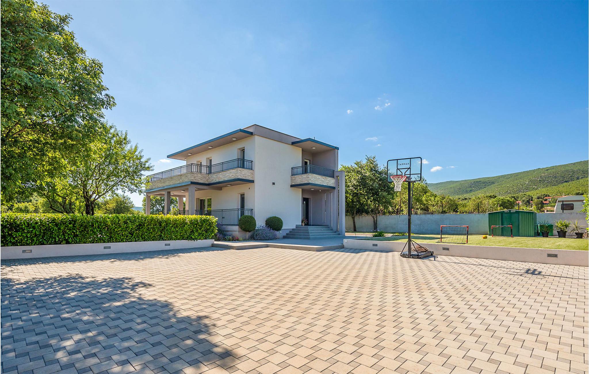 Nyd en afslappende ferie i dette luksuriøse feriehus med pool i rolige omgivelser. Langt fra travlheden og omgivet af det smukke, grønne landskab lover den moderne Villa Dali afslapning for krop og sjæl. Det stilfuldt møblerede interiør byder jer velkommen med en hyggelig og varm atmosfære. Fremtryll kulinariske lækkerier i det fuldt udstyrede køkken, planlæg jeres aktiviteter over harmoniske måltider ved det behageligt oplyste spisebord, og efter en begivenhedsrig dag kan I streame en spændende serie eller spille PlayStation 4, Xbox One eller Nintendo Switch. Det elegante udendørsområde har en stor pool og et spabad, hvor I kan nyde privatlivet under åben himmel på lune sommeraftener. Hold jer i form med volleyball, badminton eller basketballkurv, og fejr jeres tid sammen med stemningsfulde grillfester i det overdækkede sommerkøkken. Udforsk den livlige, historiske gamle bydel i Split med det imponerende Diocletians Palads, tag en bådtur til øerne Brac eller Hvar, nyd det krystalklare vand og slap af på idylliske strande. Vandre gennem Marjan Naturpark og bliv fortryllet af den storslåede udsigt over Adriaterhavet. Prøv regionale specialiteter i hyggelige taverner, slentre gennem farverige markeder, og gå ikke glip af den UNESCO-beskyttede gamle bydel i Trogir.