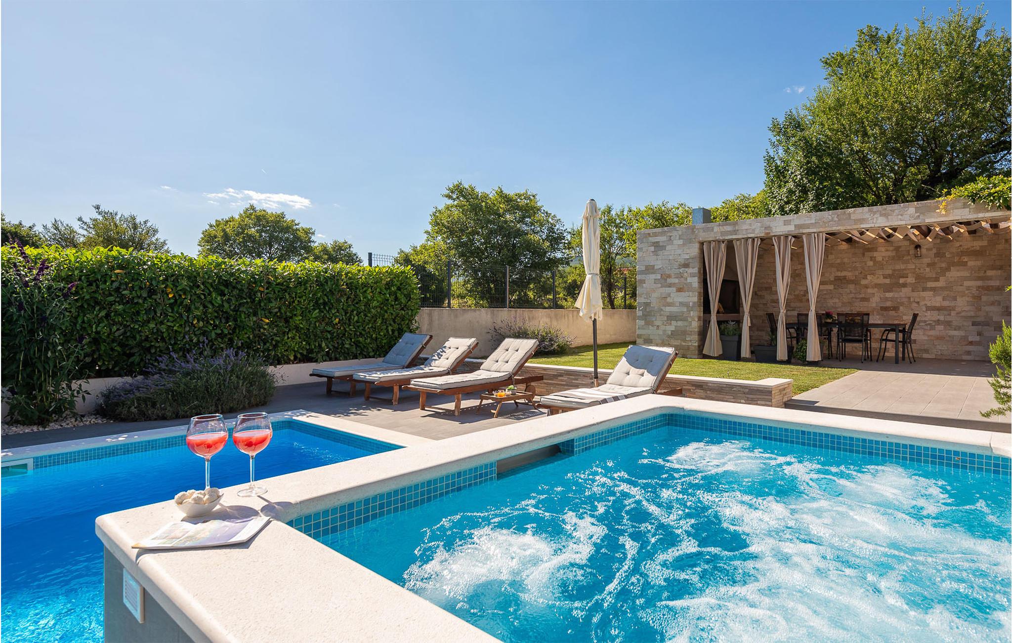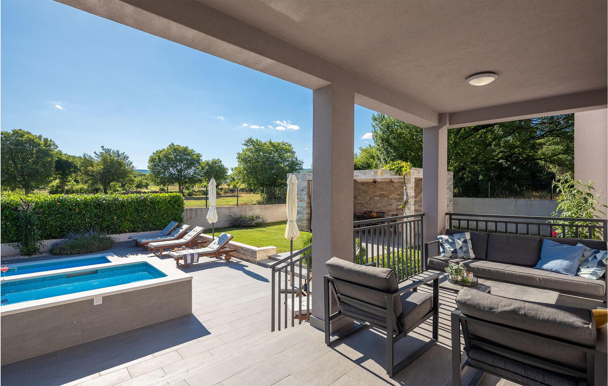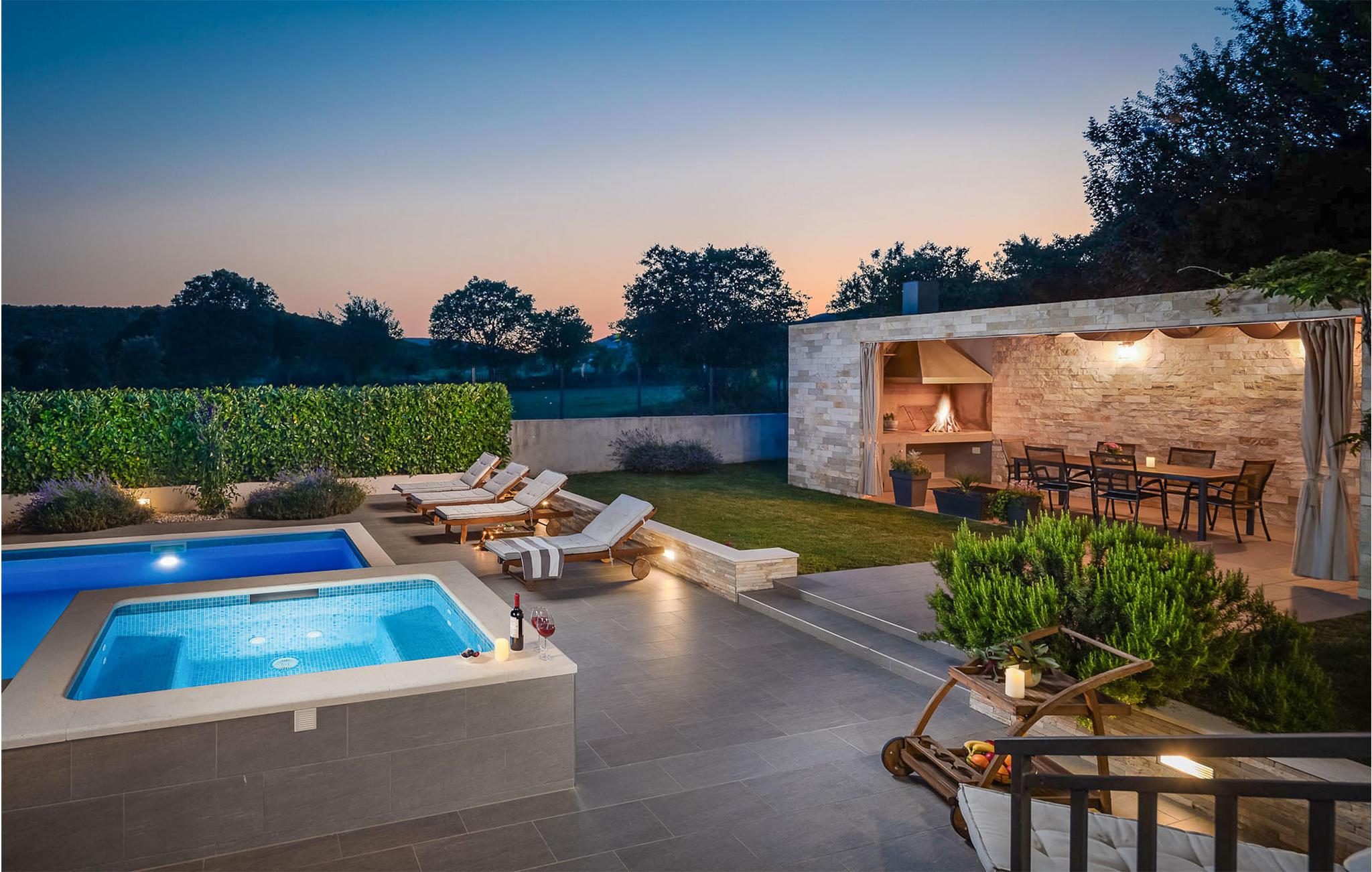 Nyd en afslappende ferie i dette luksuriøse feriehus med pool i rolige omgivelser. Langt fra travlheden og omgivet af det smukke, grønne landskab lover den moderne Villa Dali afslapning for krop og sjæl. Det stilfuldt møblerede interiør byder jer velkommen med en hyggelig og varm atmosfære. Fremtryll kulinariske lækkerier i det fuldt udstyrede køkken, planlæg jeres aktiviteter over harmoniske måltider ved det behageligt oplyste spisebord, og efter en begivenhedsrig dag kan I streame en spændende serie eller spille PlayStation 4, Xbox One eller Nintendo Switch. Det elegante udendørsområde har en stor pool og et spabad, hvor I kan nyde privatlivet under åben himmel på lune sommeraftener. Hold jer i form med volleyball, badminton eller basketballkurv, og fejr jeres tid sammen med stemningsfulde grillfester i det overdækkede sommerkøkken. Udforsk den livlige, historiske gamle bydel i Split med det imponerende Diocletians Palads, tag en bådtur til øerne Brac eller Hvar, nyd det krystalklare vand og slap af på idylliske strande. Vandre gennem Marjan Naturpark og bliv fortryllet af den storslåede udsigt over Adriaterhavet. Prøv regionale specialiteter i hyggelige taverner, slentre gennem farverige markeder, og gå ikke glip af den UNESCO-beskyttede gamle bydel i Trogir.