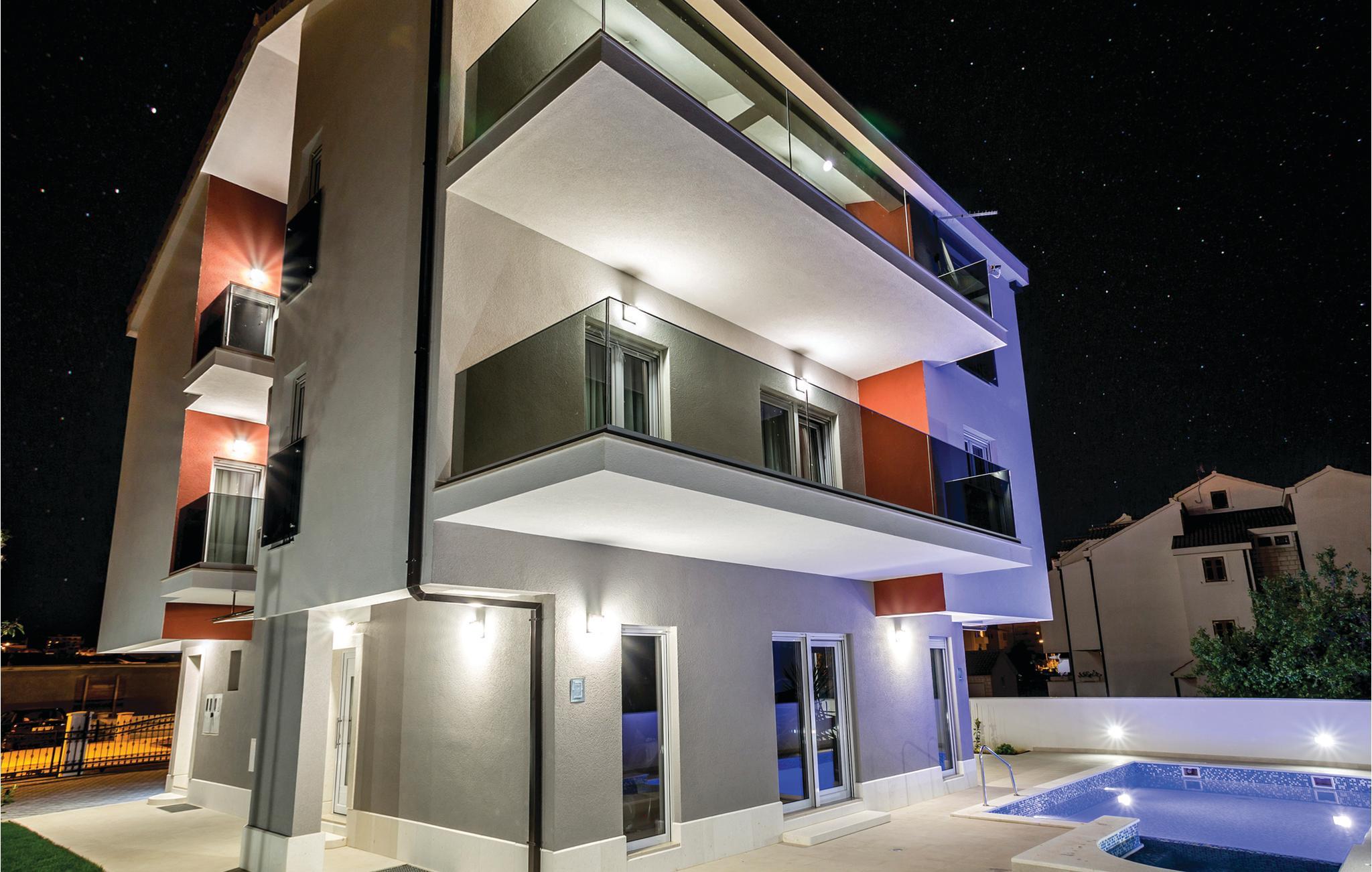 Denne luksuriøse ville ligger i den lille landsby Stobrec, i nærheden af Split. Lyse og moderne værelser lægger op til et behageligt ophold i tre etager. I stueetagen ligger dagligetagen med adgang til terrassen og det fri, hvor der er pool, whirlpool, pavillon med grill og en kælder med garage (to parkeringspladser), med god plads til sjov, fitness og afslapning. Vejen til stranden hælder lidt. Efter aftale med ejeren kan I leje cykler, biler og både og aftale transfer til lufthavnen. Grunden er sikret med videoovervågning, og alle værelser er låst med nøglekort. Besøg den nære by Split med Diokletians fascinerende palads og nyd den dejlige feriestemning med mediterran atmosfære. På hemsen er der et multifunktionelt underholdningsrum med PS4 og XBox.