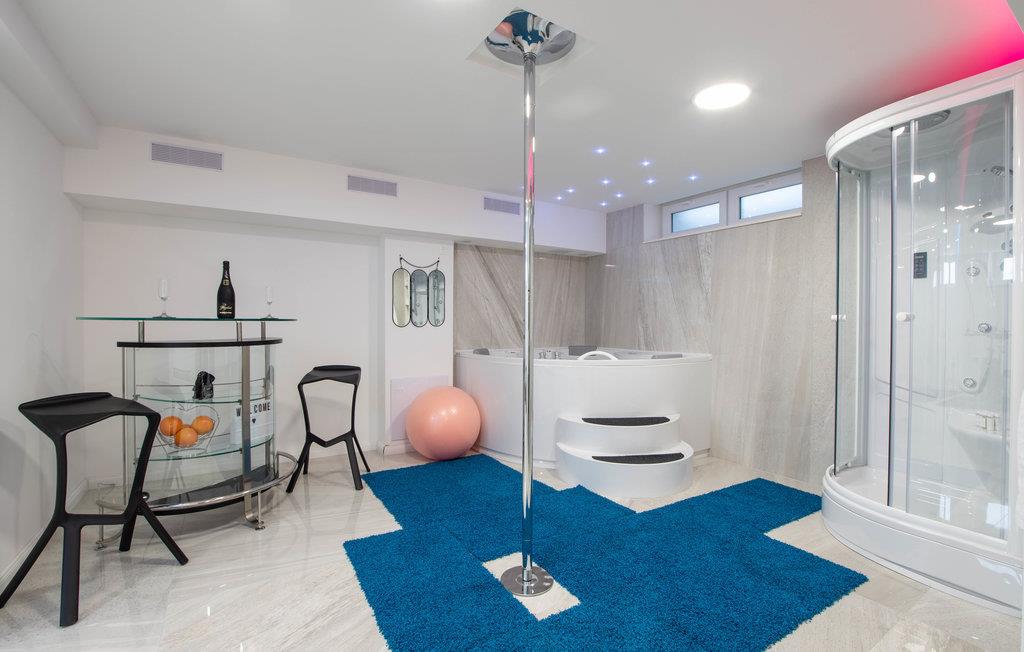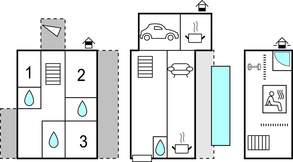 Den fuldt udstyrede opholdsstue ligger i stueetagen, hvorfra I kan nå poolen med modstrømsanlæg og massagestråler. Soveområdet med badeværelser er på øverste etage. Fra to soveværelser er der en vidunderlig udsigt over havet. Slap af ved poolen, hvor også sommerkøkkenet ligger. Tilbring hyggelige timer i det store fritidsrum, som også kan bruges som wellness-hjørne, fordi der er et badekar med hydromassage, sauna og fitnessudstyr.