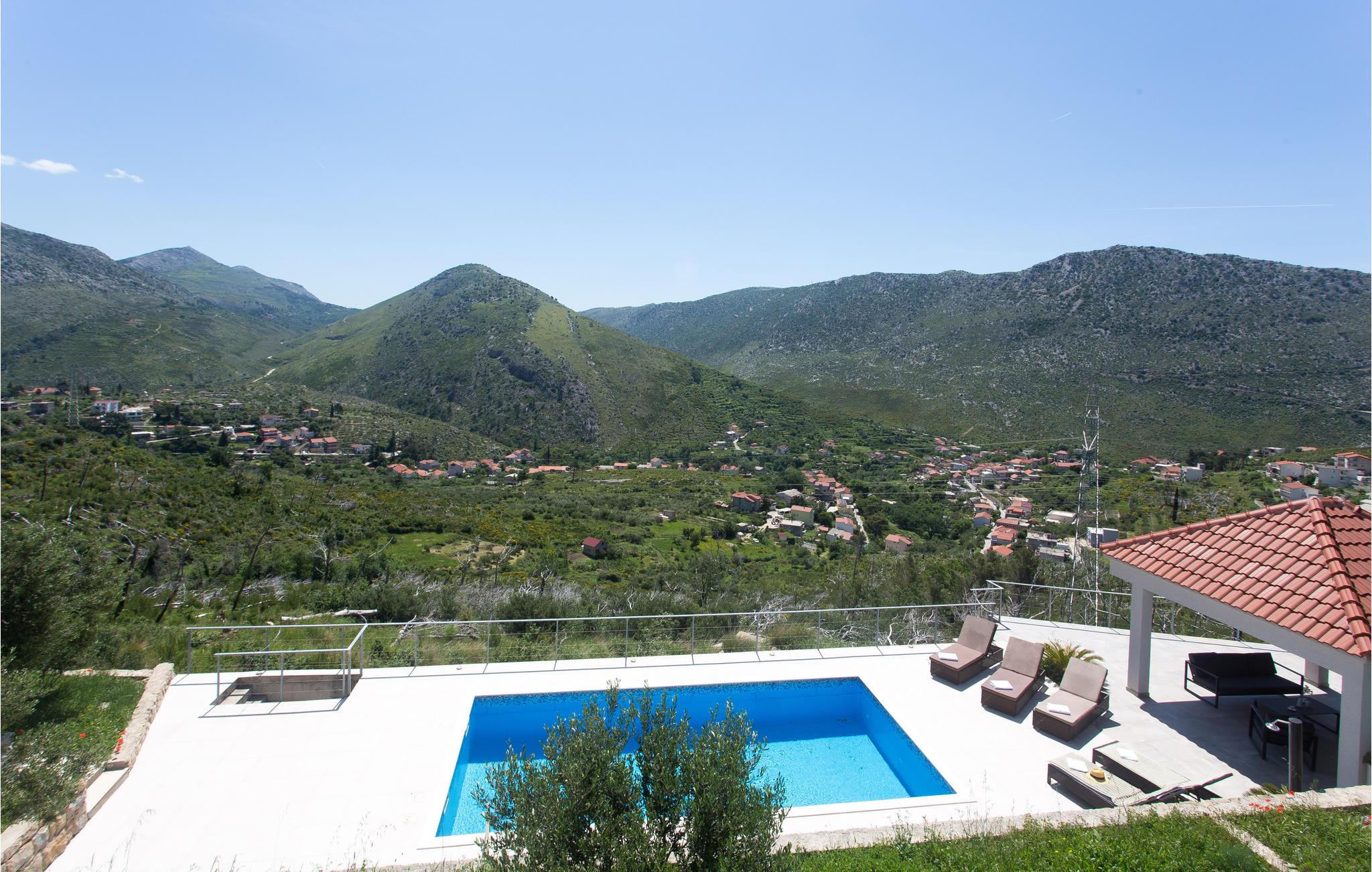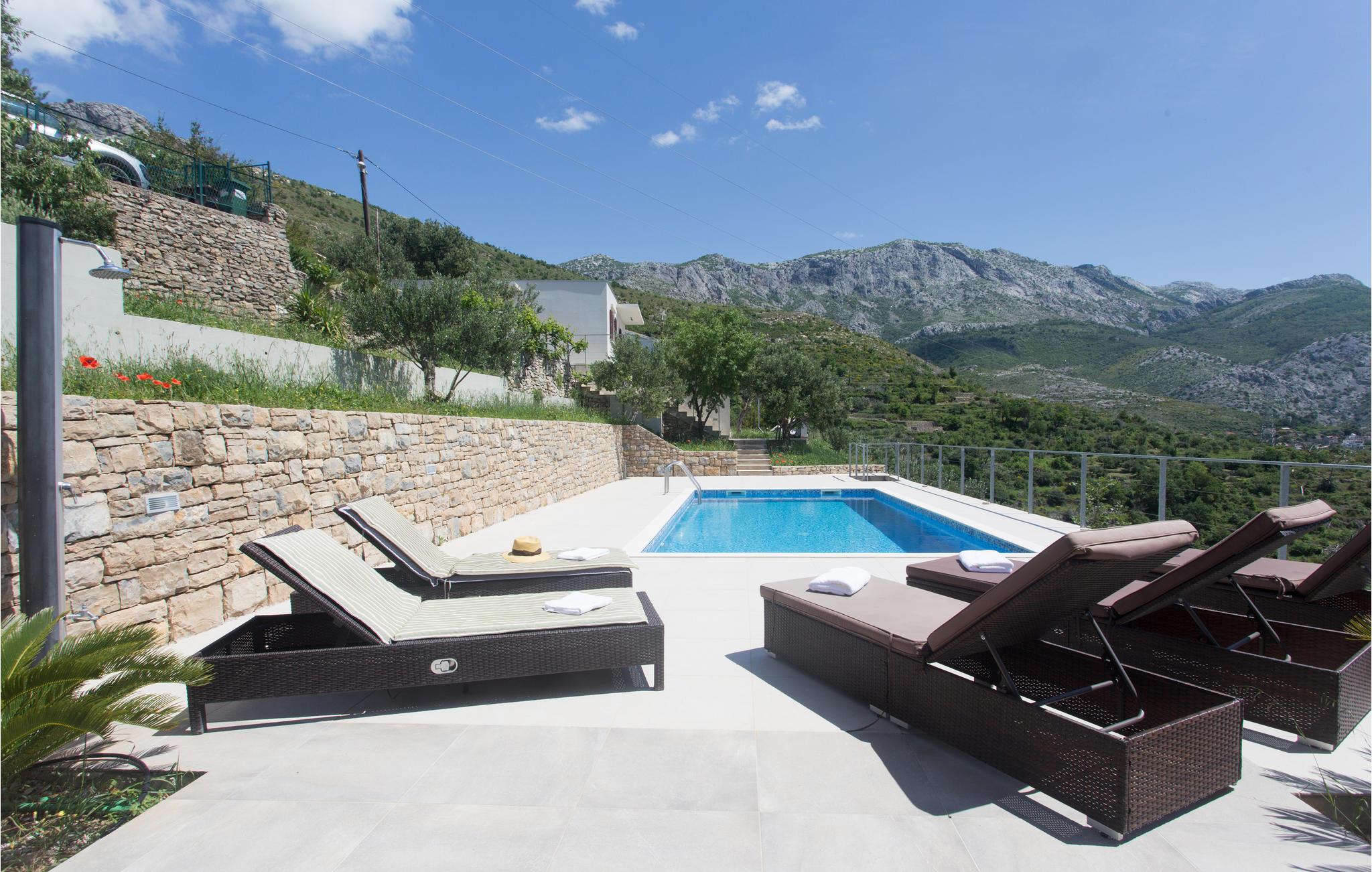 Dette idylliske feriehus med pool ligger i bjergrige naturomgivelser, ikke langt fra Split, som er Dalmatiens store metropol.