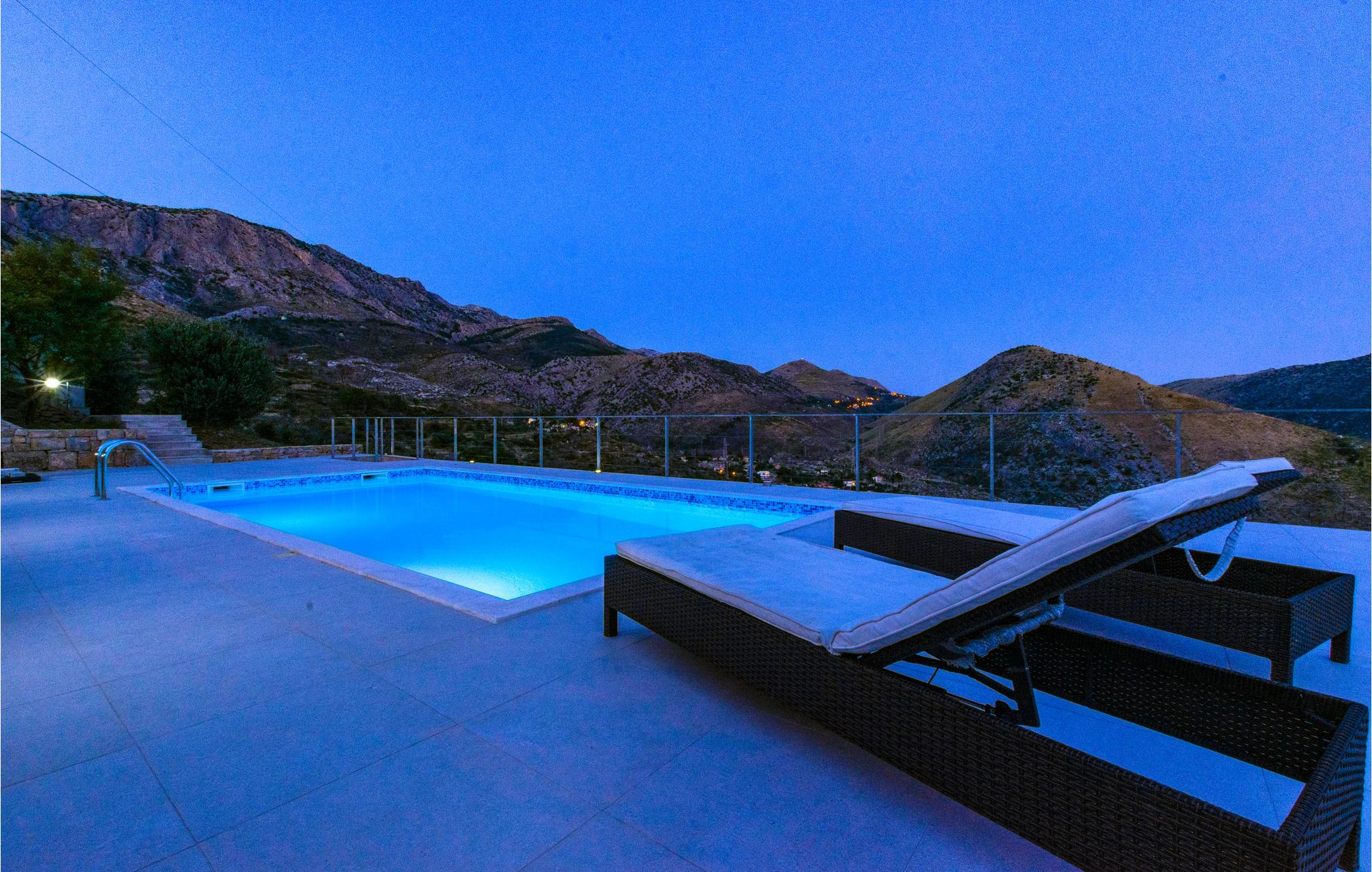 Grunden er i flere planer, og herfra er der en herlig udsigt til bjergmassivet Mosor. Nærmeste forretninger findes i den lille by Žrnovica, som det tager ca. fem minutter at køre til. I denne feriebolig kan I slappe af i naturnære omgivelser og glemme alt om den travle hverdag. Den store terrasse med privat pool er dejligt ugenert. Her kan I holde ferie med vennerne eller med familien.