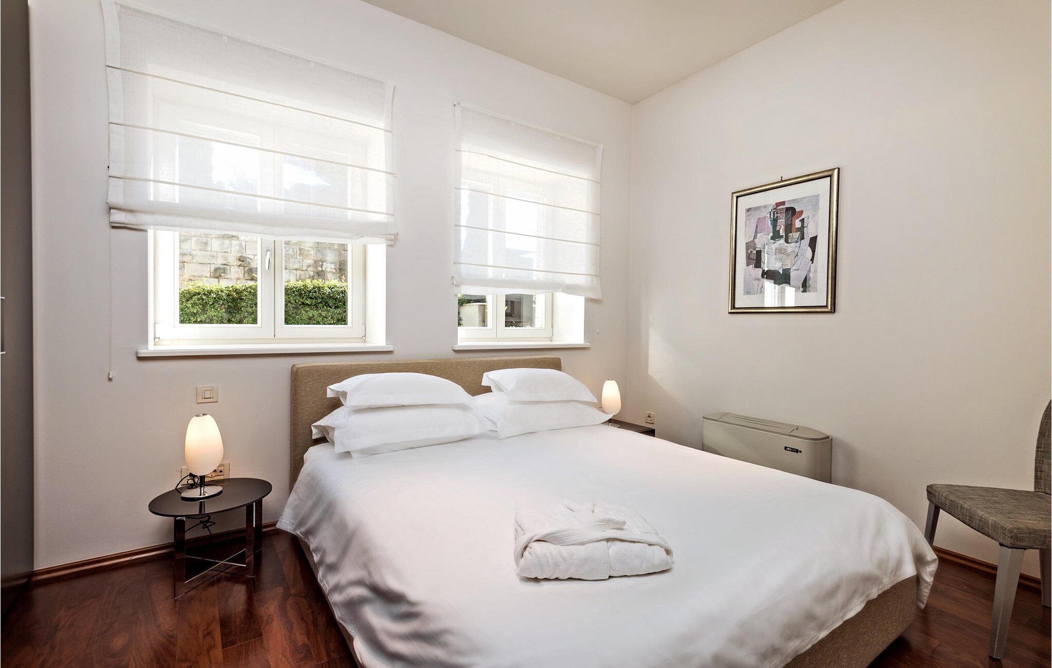 Den elegante Villa Diokletian tilbyder en stilfuld blanding af klassisk charme og moderne komfort. Elegante trægulve, kunstneriske lysekroner og omhyggeligt udvalgte møbler giver værelserne en varm og sofistikeret atmosfære. Tilbered lækre måltider i det moderne køkken, der er udstyret med high-end apparater og en central køkkenø, mens de rummelige opholdsområder med pejs og komfortable siddepladser lægger op til at snakke, lytte til musik eller læse. For afslapningsøjeblikke kan I trække jer tilbage til spabadet eller saunaen.