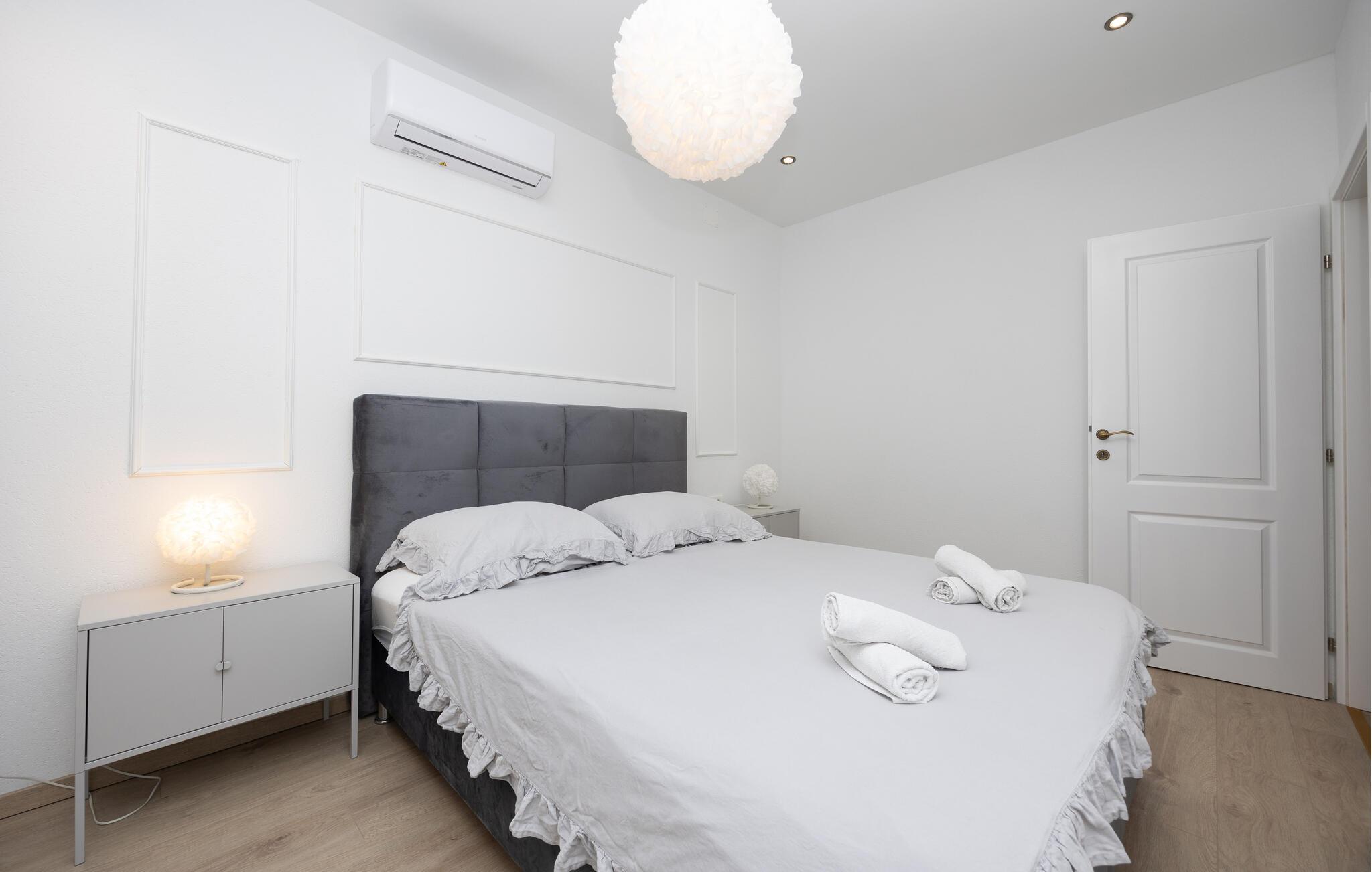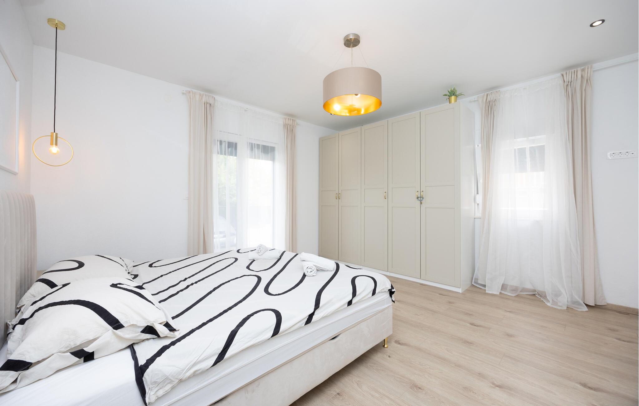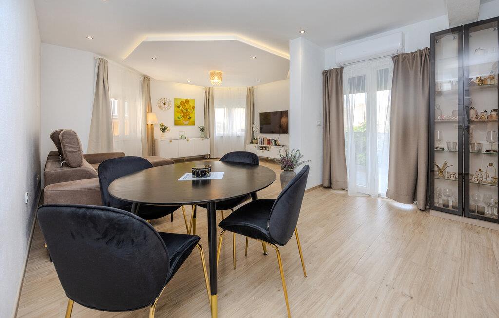 Denne charmerende lejlighed på første sal tilbyder alt, hvad I skal bruge for en afslappende familieferie. Den moderne indretning skaber en feel-good atmosfære, mens begge soveværelser har deres egne altaner med havemøbler, perfekt til afslappende stunder. Kombinationen af ??komfort og privatliv gør denne lejlighed til et ideelt tilflugtssted i Split.