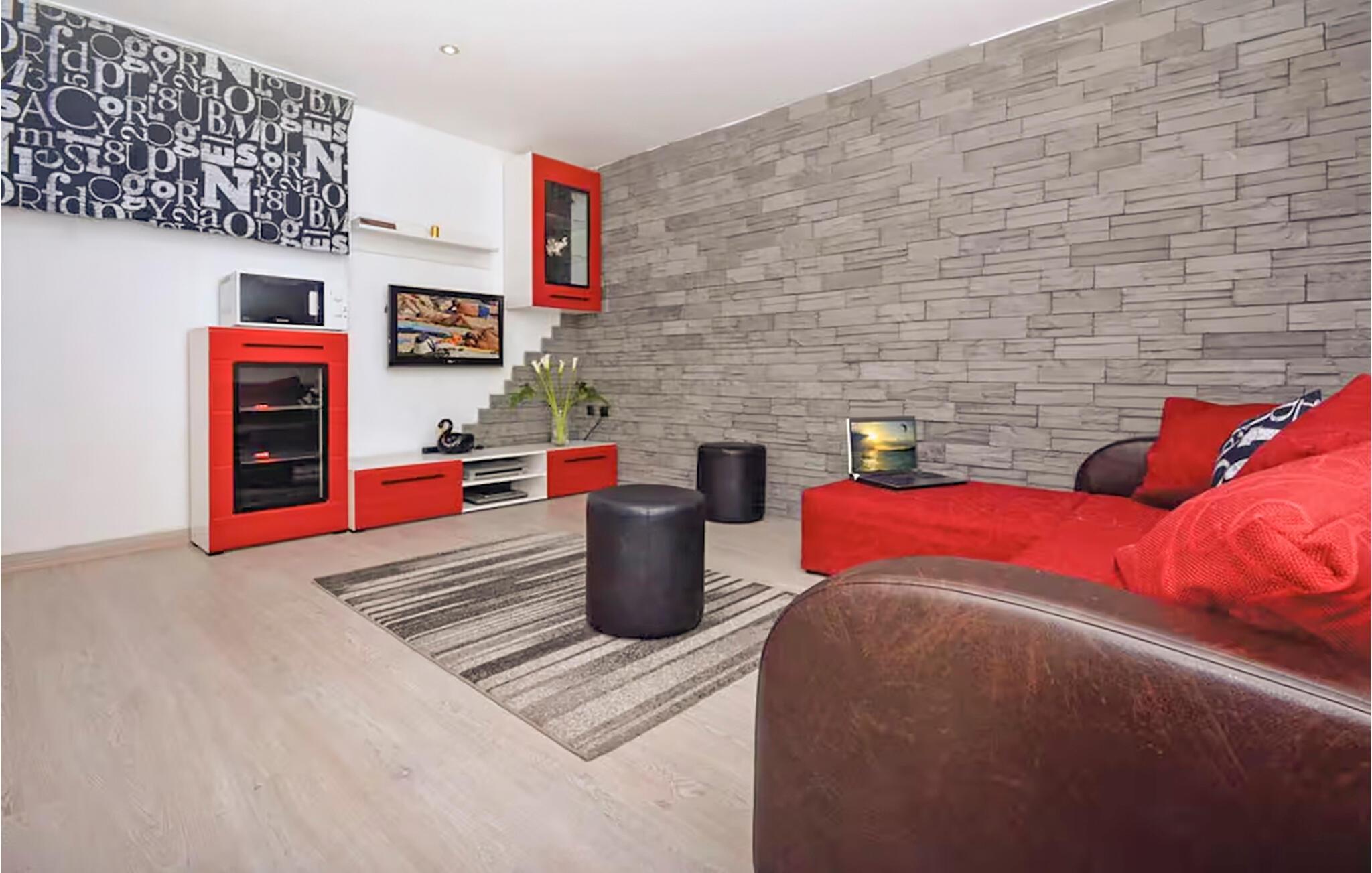 Dette feriehus i Split er det ideelle sted at tilbringe en afslappende og alligevel varieret ferie. Lad jeres hverdagslige bekymringer ligge og nyd en vidunderlig blanding af afslapning, komfort og opdagelse. Indretningen giver jer en moderne og stilfuld atmosfære. Stuen med sine spændende dekorative accenter og elegante stenvæg lægger op til at tilbringe hyggelige aftener. Slap af i den store sofa og få en filmaften med hele familien. Tilbered lækre måltider i det smukke spisekøkken og nyd dem ved det elegante spisebord.