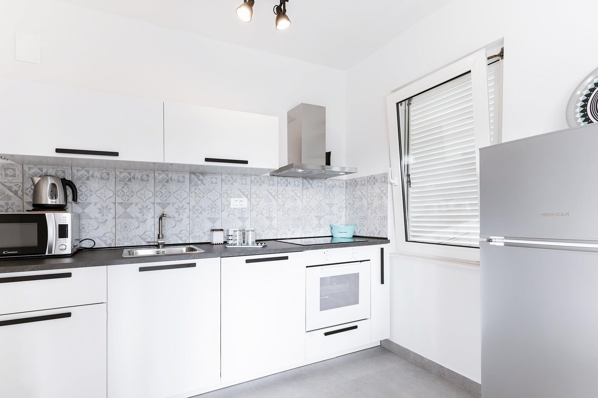 Apartment Black & White er beliggende i byen Split, berømt for sin store historie og kulturelle arv, tradition, gastronomi og milde middelhavsklima. Beliggende kun 10 minutter fra byens centrum og den berømte promenade Riva Split, hvor du kan nyde smuk havudsigt , storslåede solnedgange og oplev ægte dalmatisk kultur og historie. Ejendommen tilbyder en lejlighed med aircondition med 2 soveværelser og gratis WiFi, fuldt udstyret køkken, privat badeværelse, balkon og terrasse. Offentlig parkering er mulig i nærheden (reservation er ikke muligt) og gebyrer kan være gældende. 20 euro pr. nat. Denne komfortable toværelses lejlighed med balkon har gratis WiFi, aircondition, værdiboks og fladskærms-kabel-tv. Køkkenet er fuldt udstyret med komfur, ovn, elkedel, brødrister, mikroovn, køleskab, opvaskemaskine og spiseplads samt opholdsområde. Lejligheden har også eget badeværelse med bruser, hårtørrer og vaskemaskine samt separat toilet. Gæsterne kan nyde deres ophold på balkonen og terrassen med udendørsmøbler og grillfaciliteter. Offentlig parkering er mulig i nærheden (reservering er ikke muligt), og der kan være gebyrer. 20 euro per nat. Grundet ejendommens gunstige beliggenhed kan gæsterne finde alt det nødvendige til hverdagen under deres ferie i nærheden af lejligheden. Supermarked ligger 500 meter fra ejendommen, mens kiosken ligger kun 70 meter væk. Det nærmeste busstoppested ligger 200 m fra ejendommen, og der er 23 km til Split lufthavn.