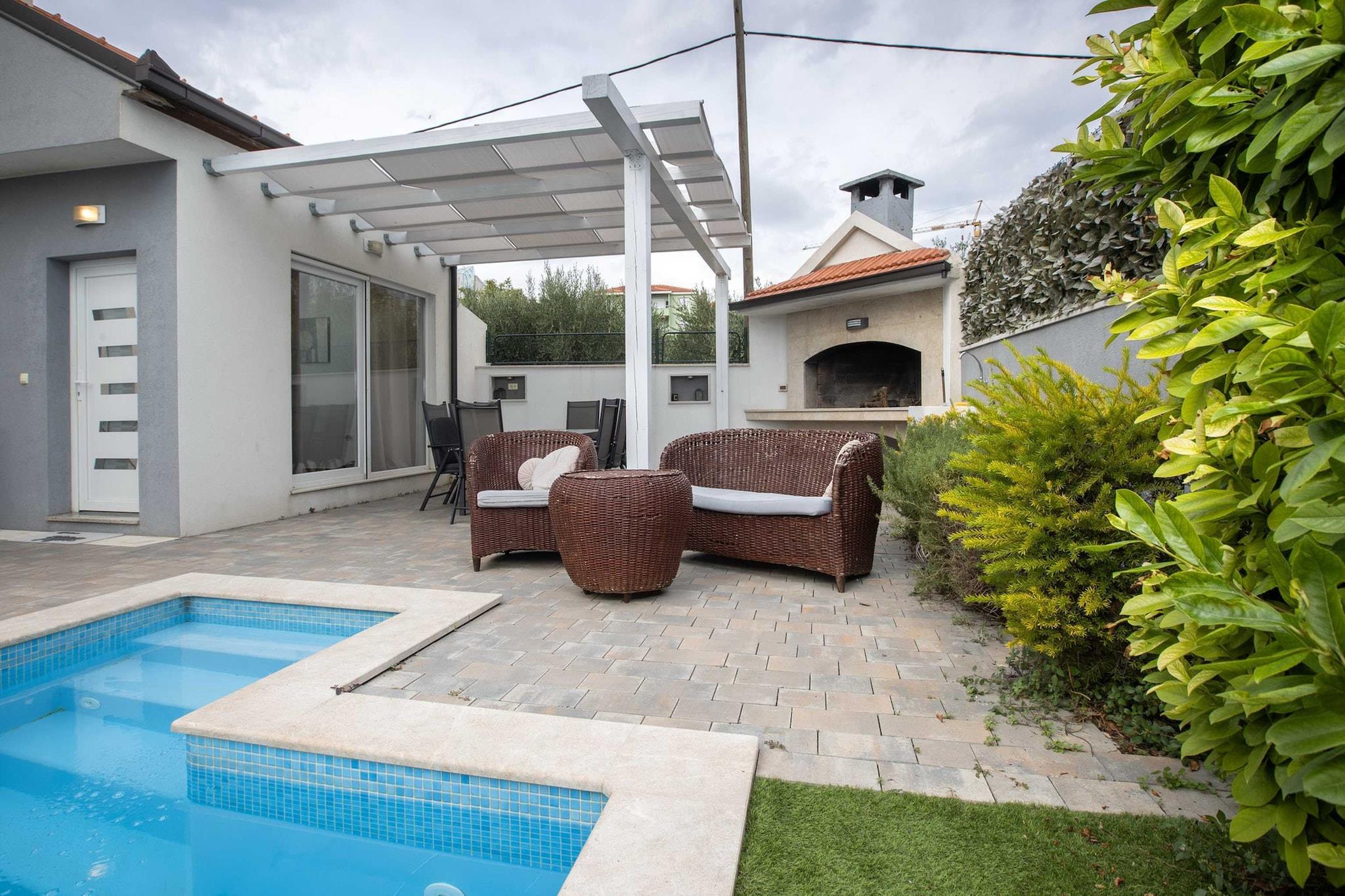 Apartment Villa Andelka is located in the city of Split, famous for its great history. A private outdoor swimming pool as well as a terrace fitted with sun loungers is at your disposal, which makes this place ideal for relaxing family or friends vacation. This property also comes BBQ grill and an outdoor dining area. Pets are allowed with notice and additional charge of 5 euros per night. Luggage storage is possible upon request. Free private parking is provided, reservation is needed. This lovely three bedroom apartment with swimming pool is perfectly fit for up to eight people. It features free WiFi, air conditioning as well as SAT LCD TV. The open space living room comes with sofa and sitting area, and it's combined with the equipped kitchen and dining area. The private bathroom comes with shower and toilet. Free toiletries (shampoo, soap and toilet paper), hair dryer as well as linens and towels are at your disposal. Due to the property's good location everything you may need during your stay can be found in the neighborhood. Beach is 2 km away, driving distance only 5 minutes! The nearest market is 80 km away. Restaurants, bars, and grocery stores - all can be found within 200 m of the property Apartment Villa Andelka. Split airport is 26 km away from the property.