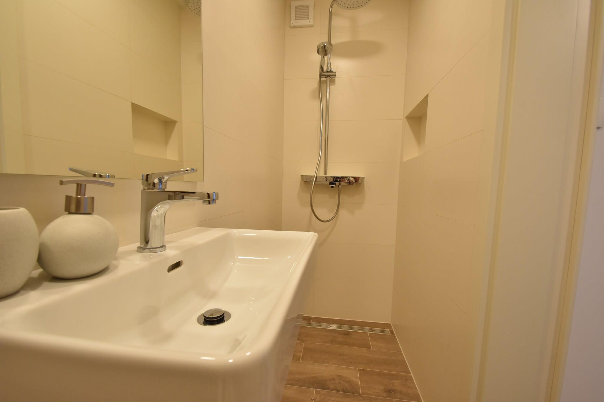 Stueetage: (Soveværelse med badeværelse(dobbeltseng(dobbelt dynebetræk), Fjernsyn(fladskærm, parabol, Hollandske TV-kanaler, Internationale TV-kanaler), bruser, håndvask, toilet), terrasse(privat, indhegnet), havemøbler) Kælderetage: (Stue(dobbeltsovesofa, Fjernsyn(fladskærm, parabol, Hollandske TV-kanaler, Internationale TV-kanaler), spisebord(10 personer), pejs, sofahjørne, klimaanlæg), åbent køkken(elkedel, komfur(Komfur med fire kogeplader, glaskeramisk), emhætte, kaffemaskine(kaffepude), ovn, mikrobølgeovn, opvaskemaskine , køle-fryseskab), badeværelse(bruser, håndvask, toilet, vaskemaskine)) garage, varme(elektrisk), klimaanlæg, parkering