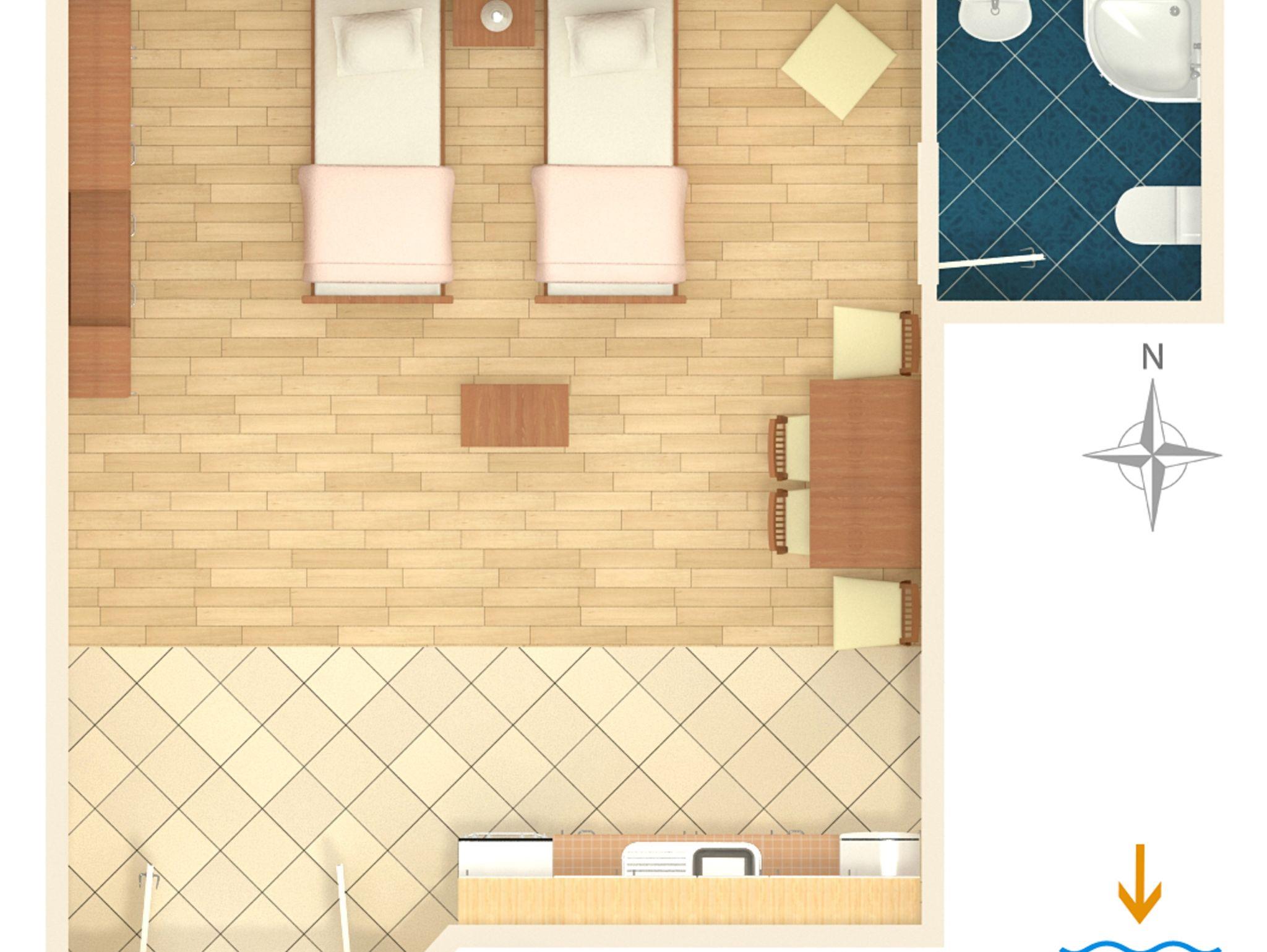 Studio bietet Platz für 2 Gäste. Die Betten sind in Schlafzimmern, die es 1 gibt, innerhalb einer Gesamtfläche von 27m2, angeordnet. Die reservierte Unterkunftseinheit hat keinen Balkon und keine Terrasse. IM PREIS INBEGRIFFEN: Kurtaxe, Endreinigung, Klimatisierung, Internet, Bügeleisen, Bügelbrett, Föhn. VERBINDLICHE ZUSÄTZLICHE KOSTEN: Aufzahlung für Kurzaufenthalte (prozentualer Zuschlag pro Nächtigungsanzahl: 30% - 1, 20% - 2, 10% - 3). Die Verfügbarkeit zusätzlicher Dienstleistungen in Ihrem reservierten Termin und die Preise derselben (falls nicht aufgeführt) müssen im Voraus überprüft werden. Zusätzliche Dienstleistungen die in der Zahlungsaufforderung nicht aufgeführt sind werden direkt beim Vermieter bezahlt, angenommen der Gast nutzt auch diese.